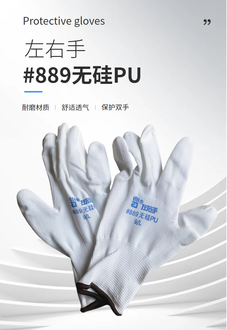 왼손 889 얇은 pu 코팅 장갑 전자 작업 내마모성 정전기 방지 노동 보호 장갑