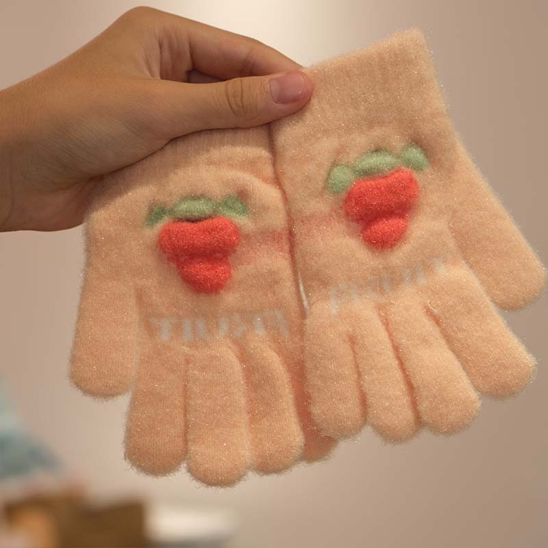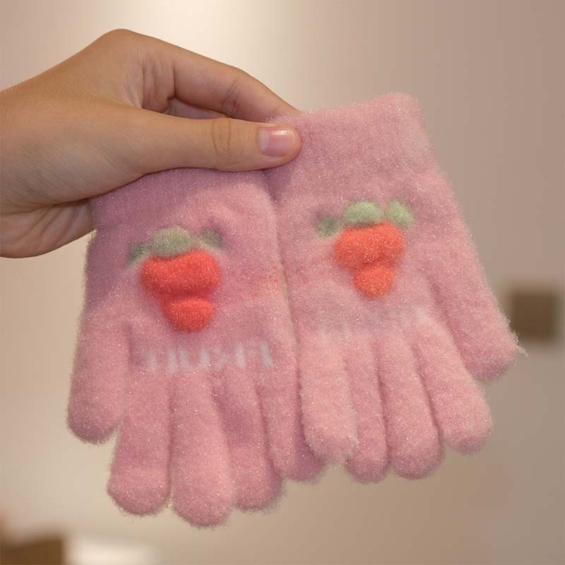 한국 스타일 귀여운 만화 어린이 장갑 방첩 두꺼운 따뜻한 장갑 창조적 인 간단한 딸기 니트 장갑