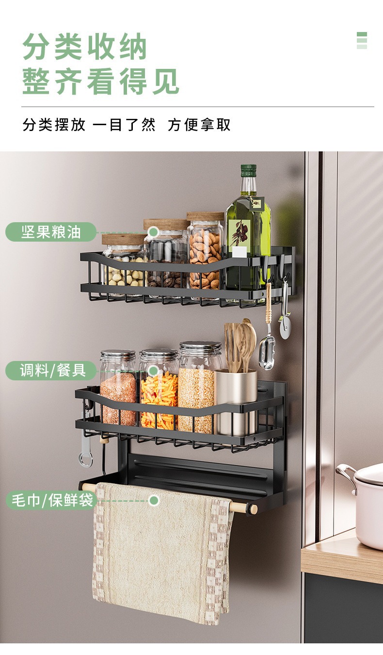 주방 자기 흡입 냉장고 걸이 접이식 사이드 스토리지 랙 펀치 프리 스토리지 랙 다기능 조미료 랙스토어 가기
