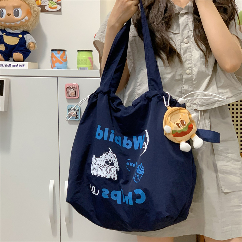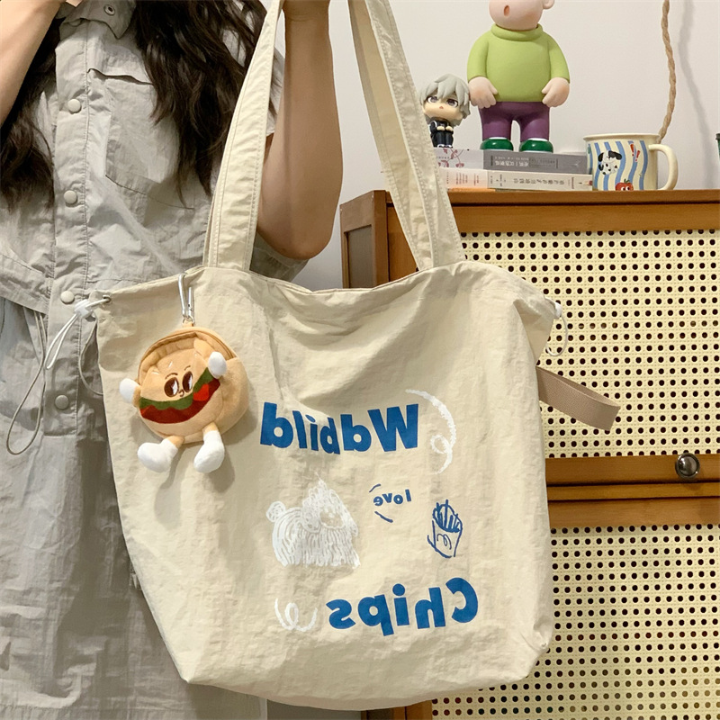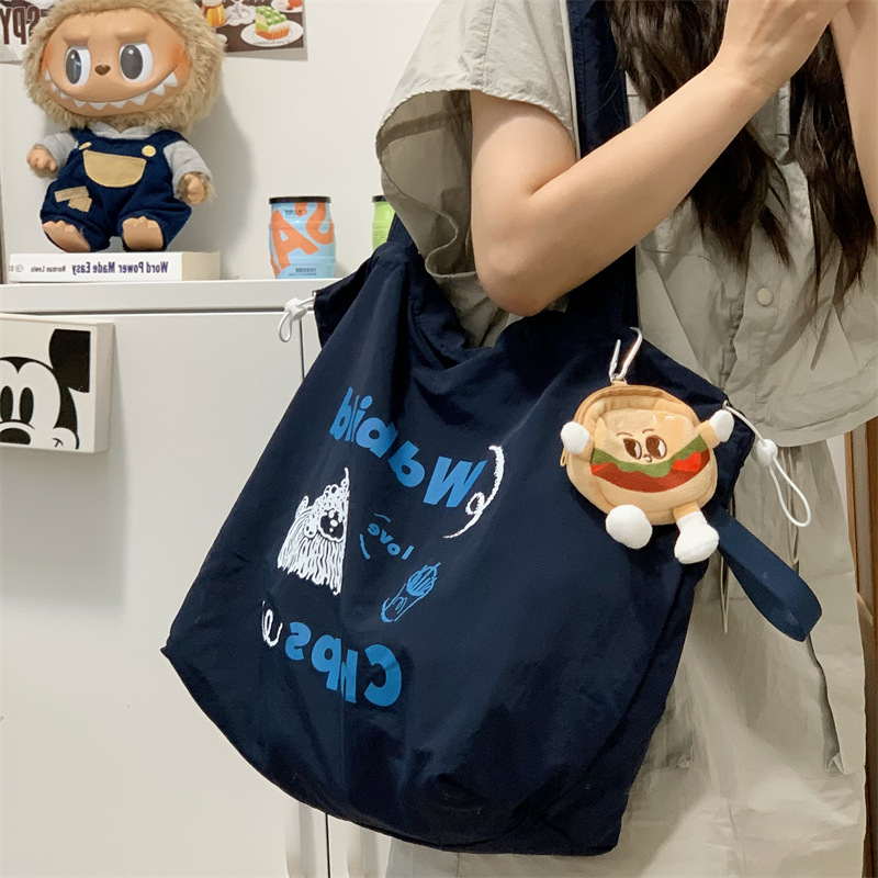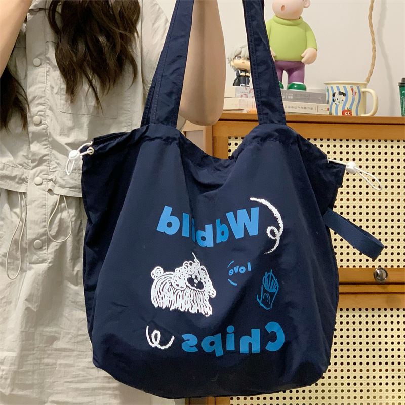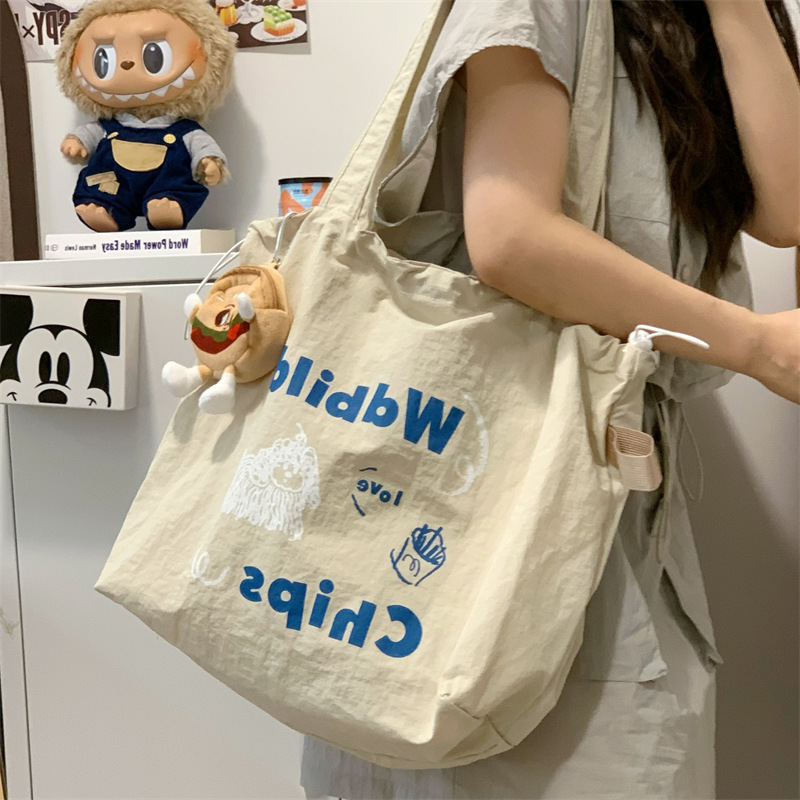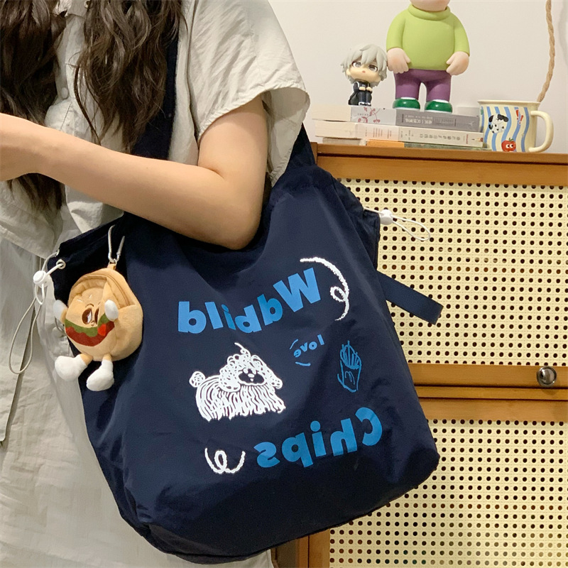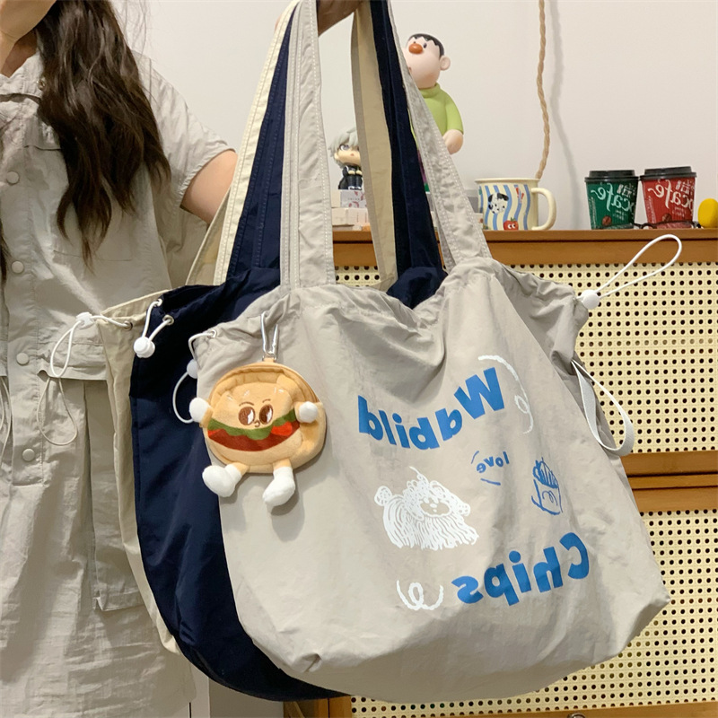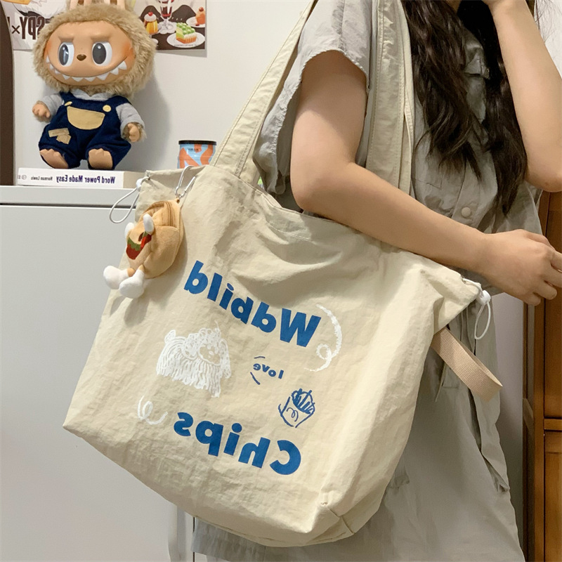 게으른 스타일 자수 캔버스 가방 여성의 2024 새로운 유행 한국 스타일 토트 백 학생 클래스 대용량 쇼핑백