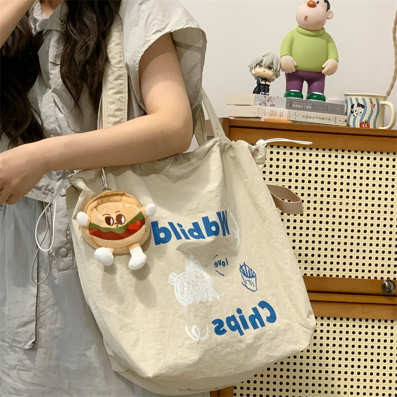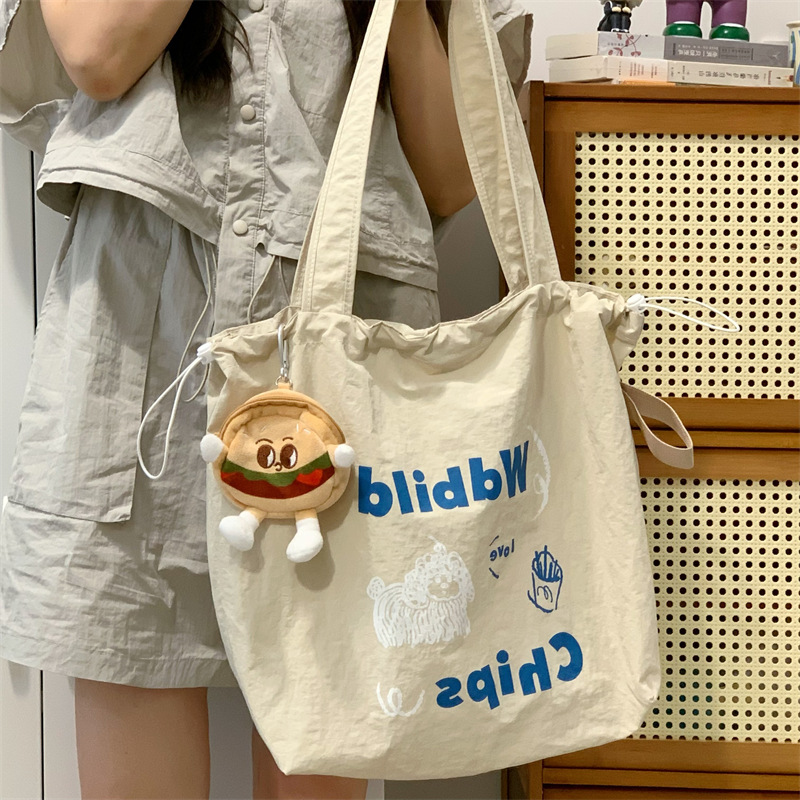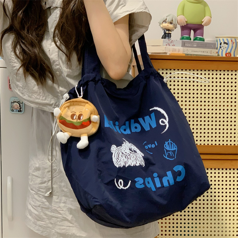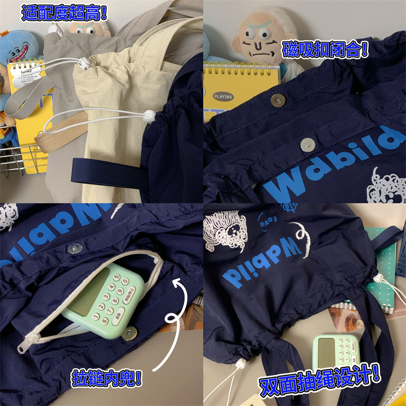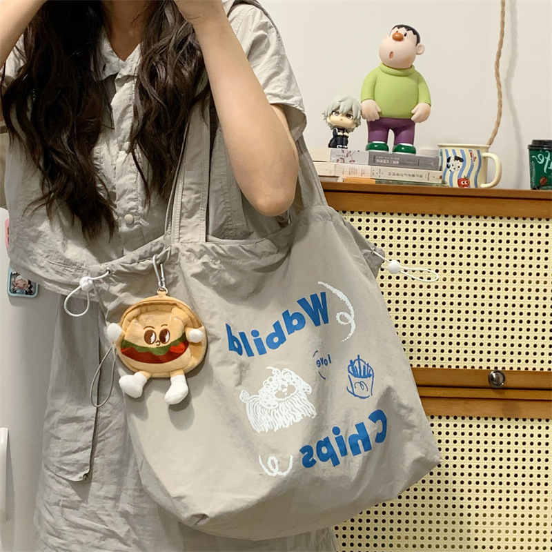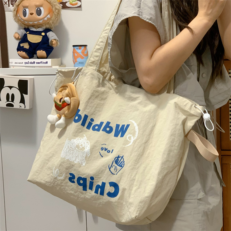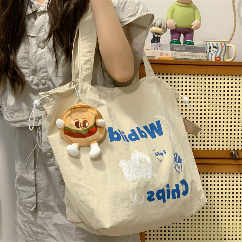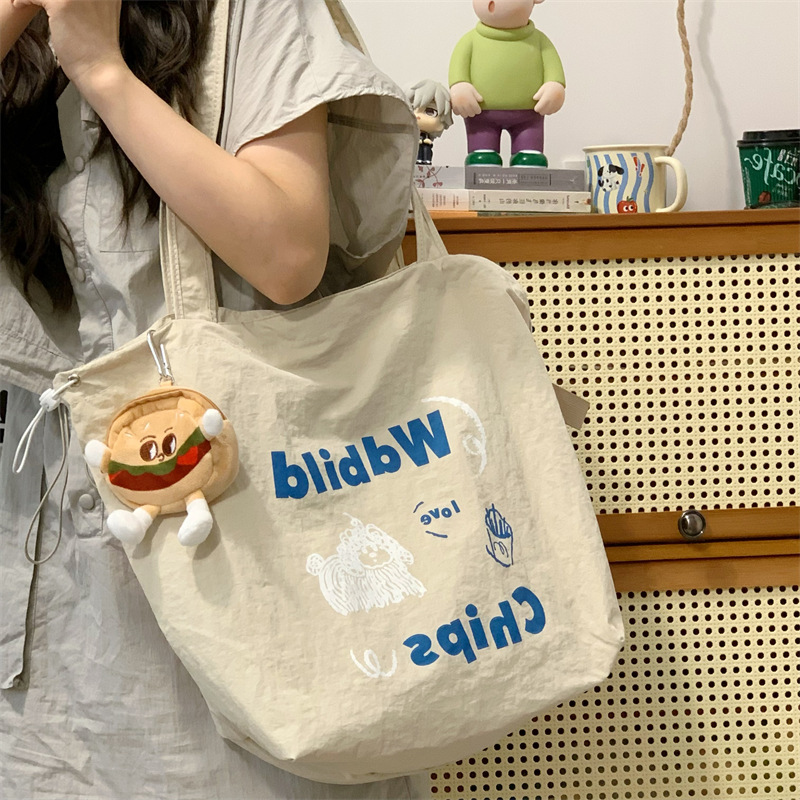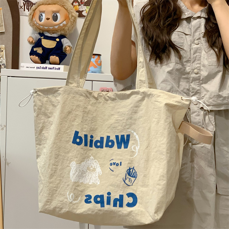 게으른 스타일 자수 캔버스 가방 여성의 2024 새로운 유행 한국 스타일 토트 백 학생 클래스 대용량 쇼핑백