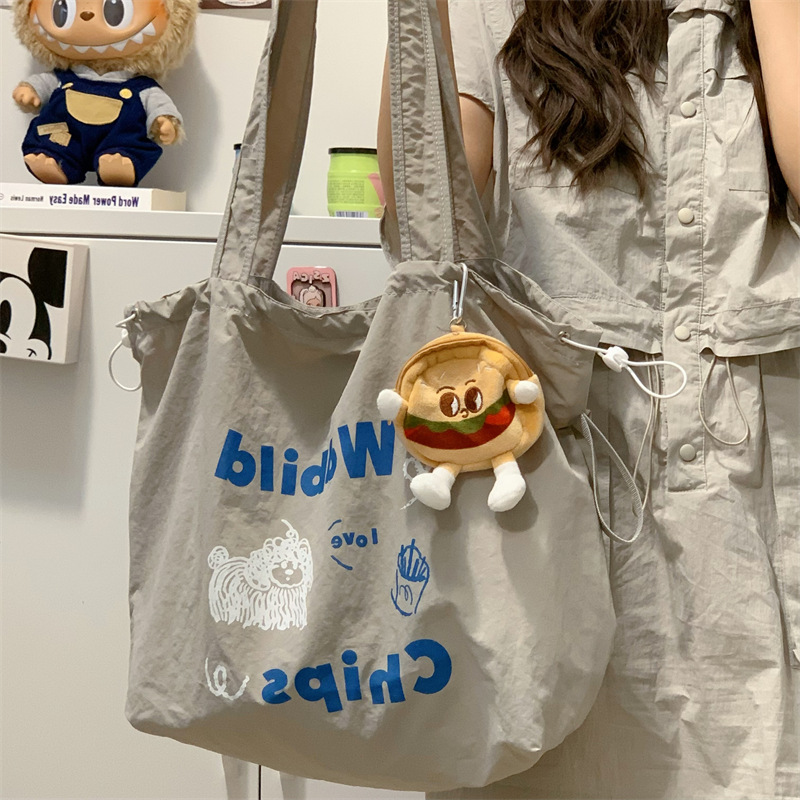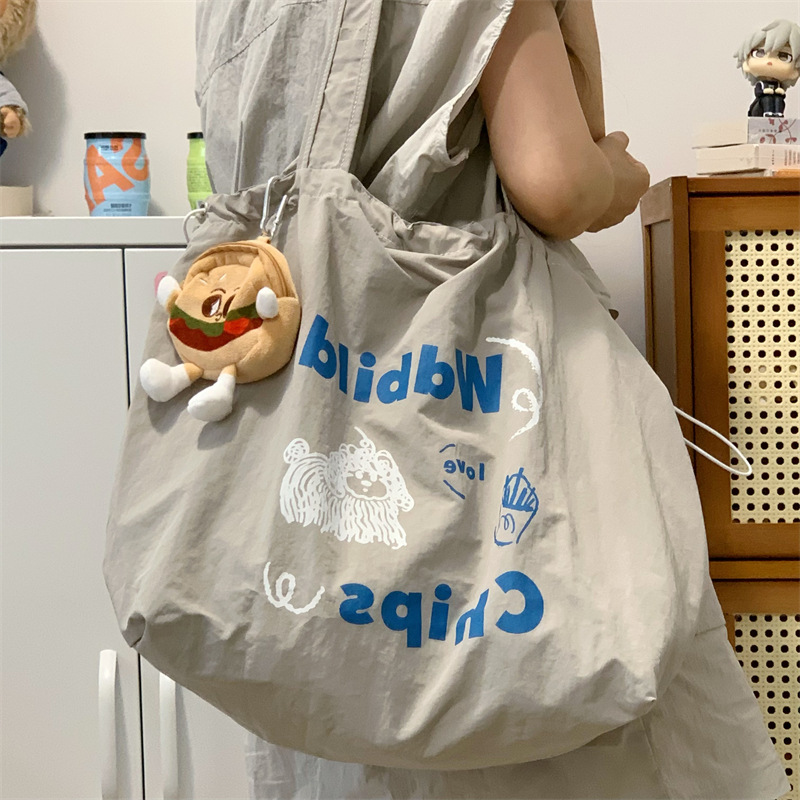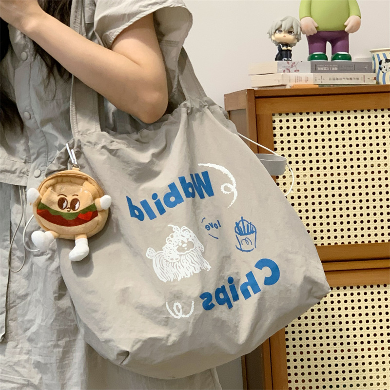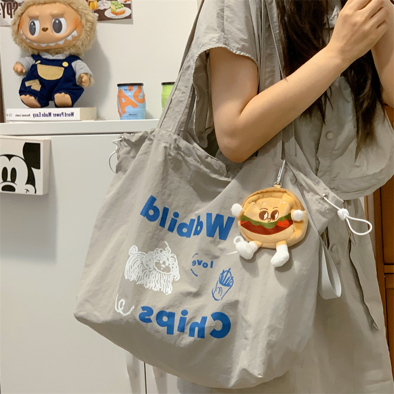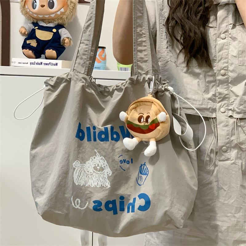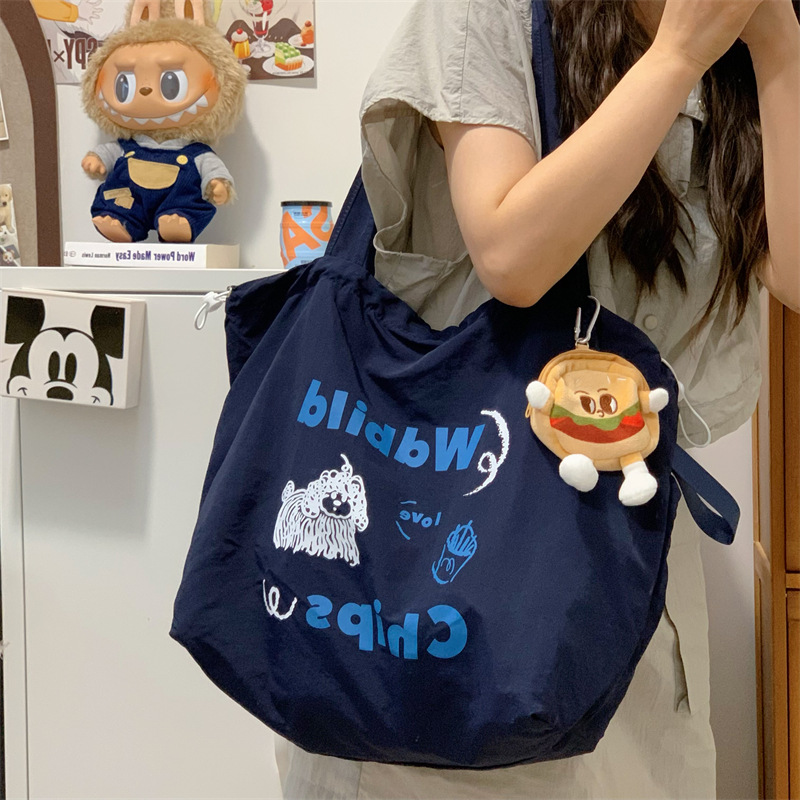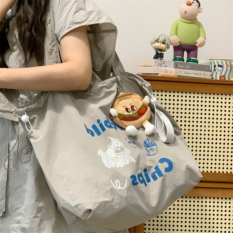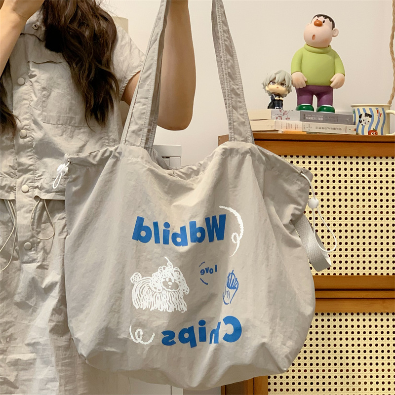 게으른 스타일 자수 캔버스 가방 여성의 2024 새로운 유행 한국 스타일 토트 백 학생 클래스 대용량 쇼핑백