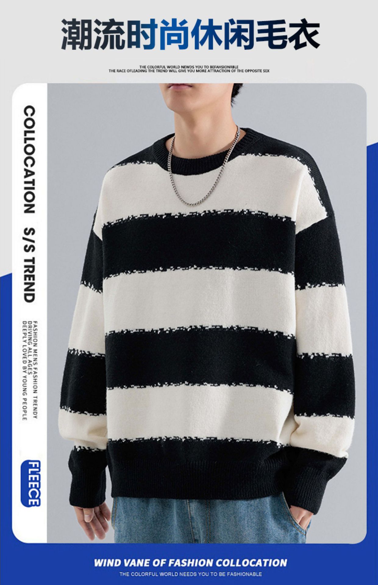 NASA 대조 컬러 스웨터 남자의 가을과 겨울 2024 패션 브랜드 느슨한 따뜻한 스웨터 일본 스타일 레이아웃 백 승무원