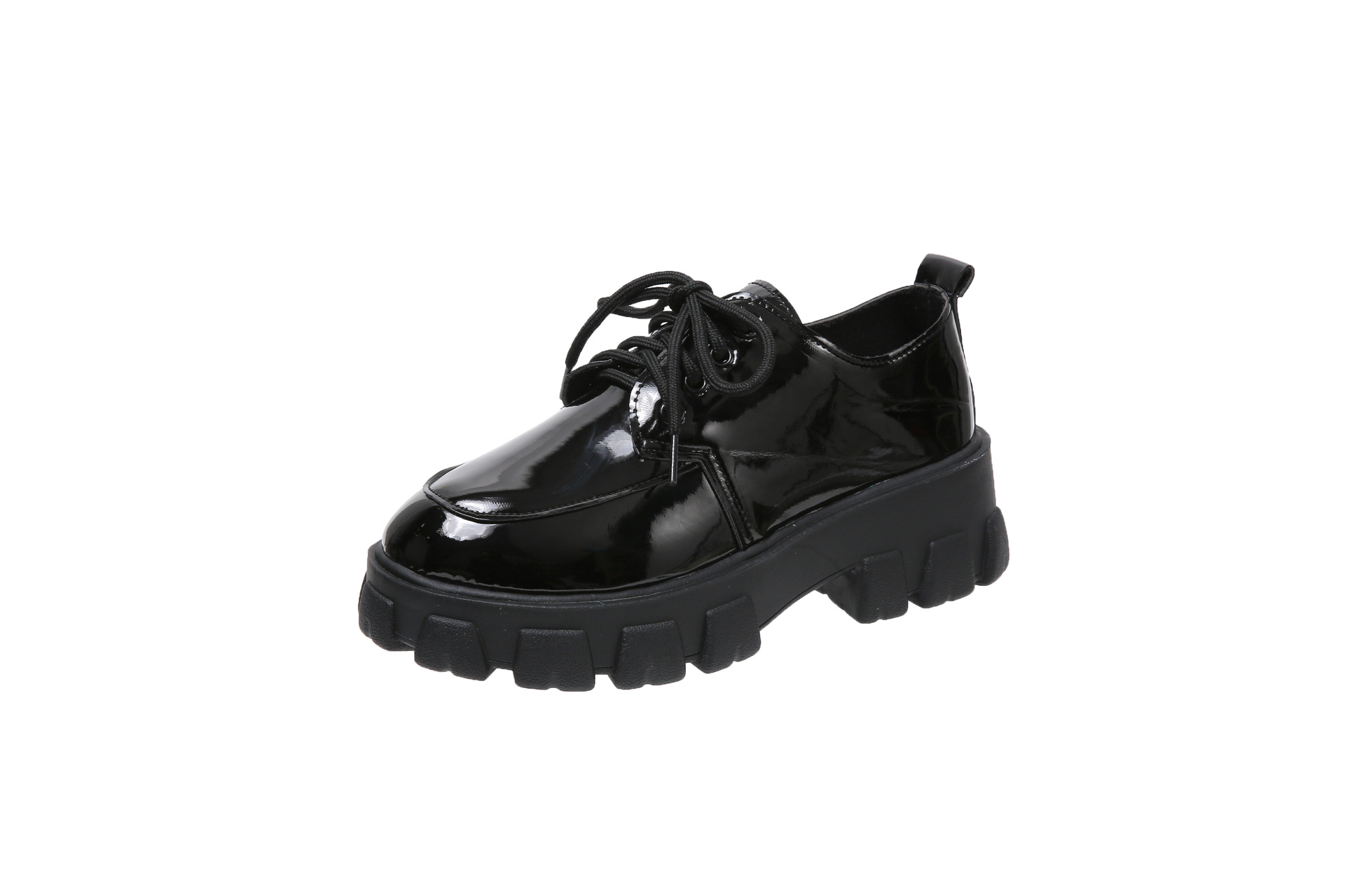 두꺼운 밑창 머핀 싱글 레이어 신발 영국 스타일 2024 봄, 여름, 가을 대학 올 매치가 여성용 특허 가죽 학생 둥근 발가락 작은 가죽 신발스토어 가기