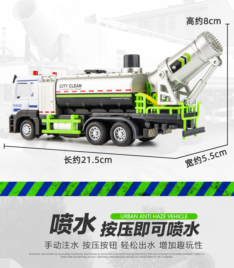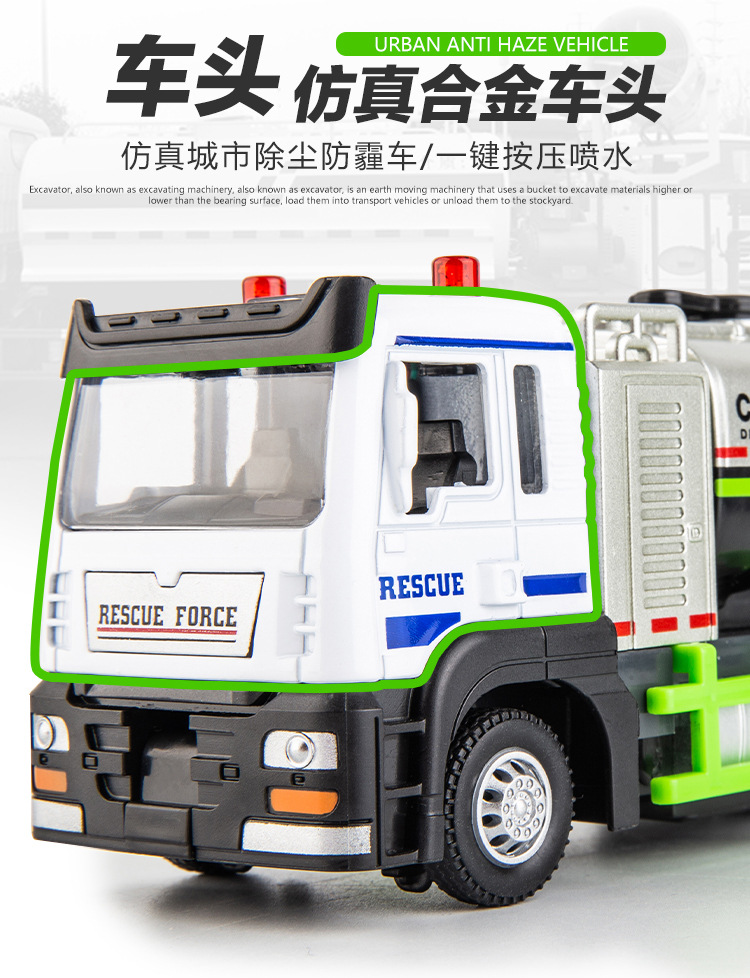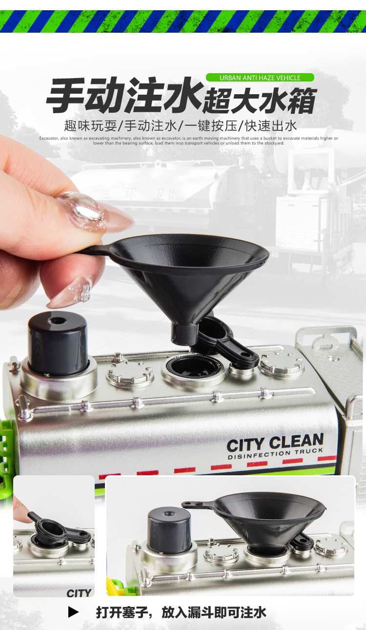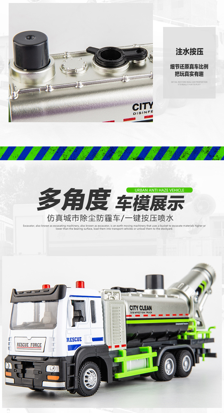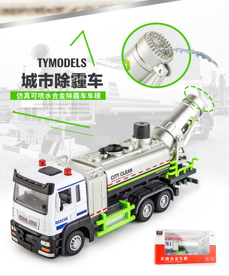 Tianying 합금 물 스프레이 도시 먼지와 안개 방지 차량 모델 시뮬레이션 위생 스프링클러 소방 엔지니어링 차량 어린이 장난감