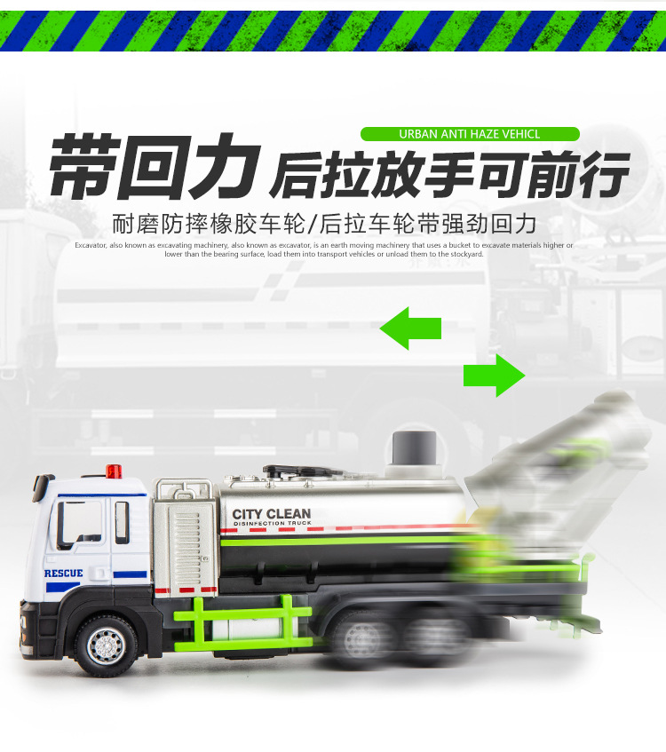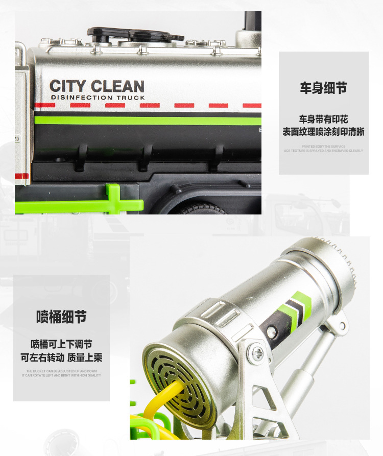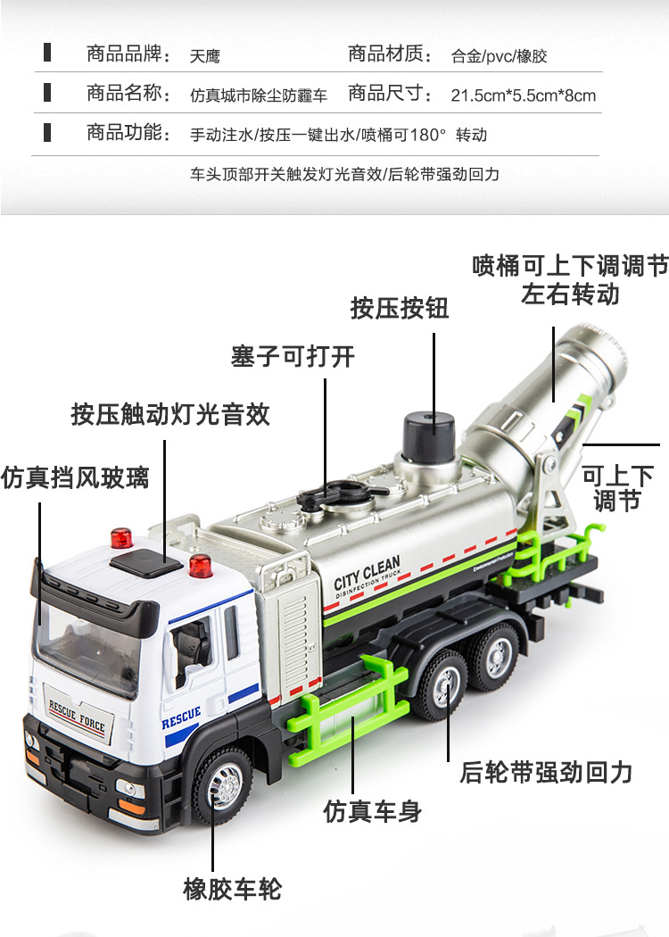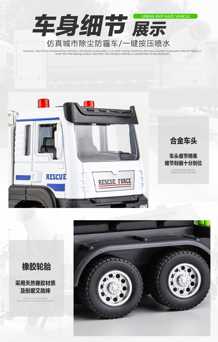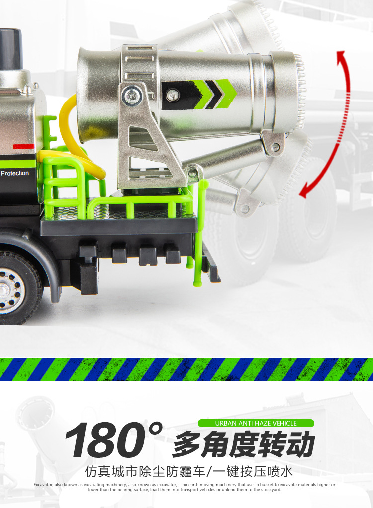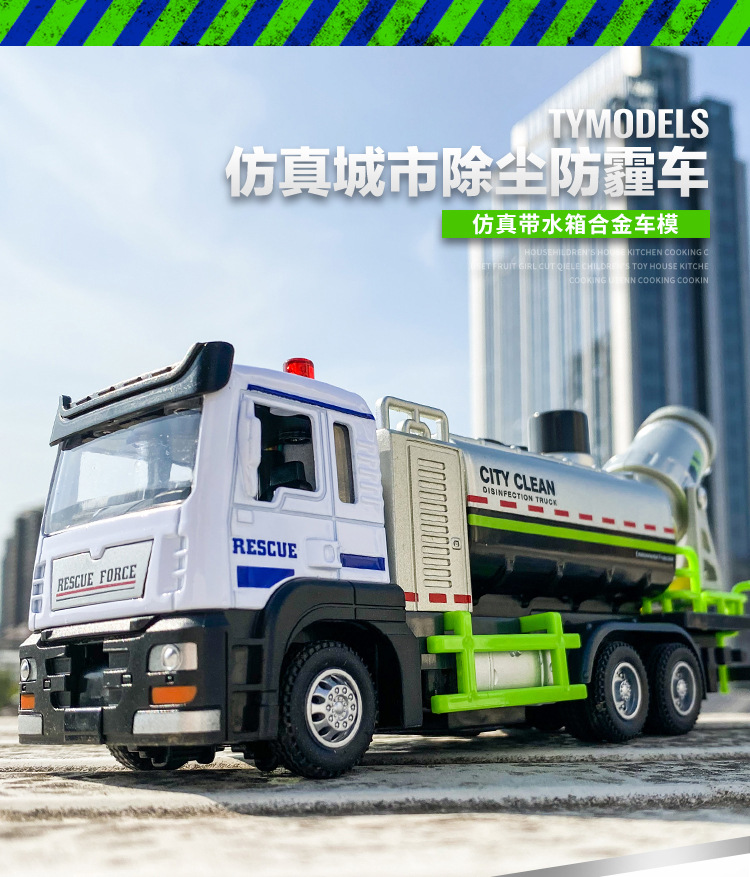 Tianying 합금 물 스프레이 도시 먼지와 안개 방지 차량 모델 시뮬레이션 위생 스프링클러 소방 엔지니어링 차량 어린이 장난감