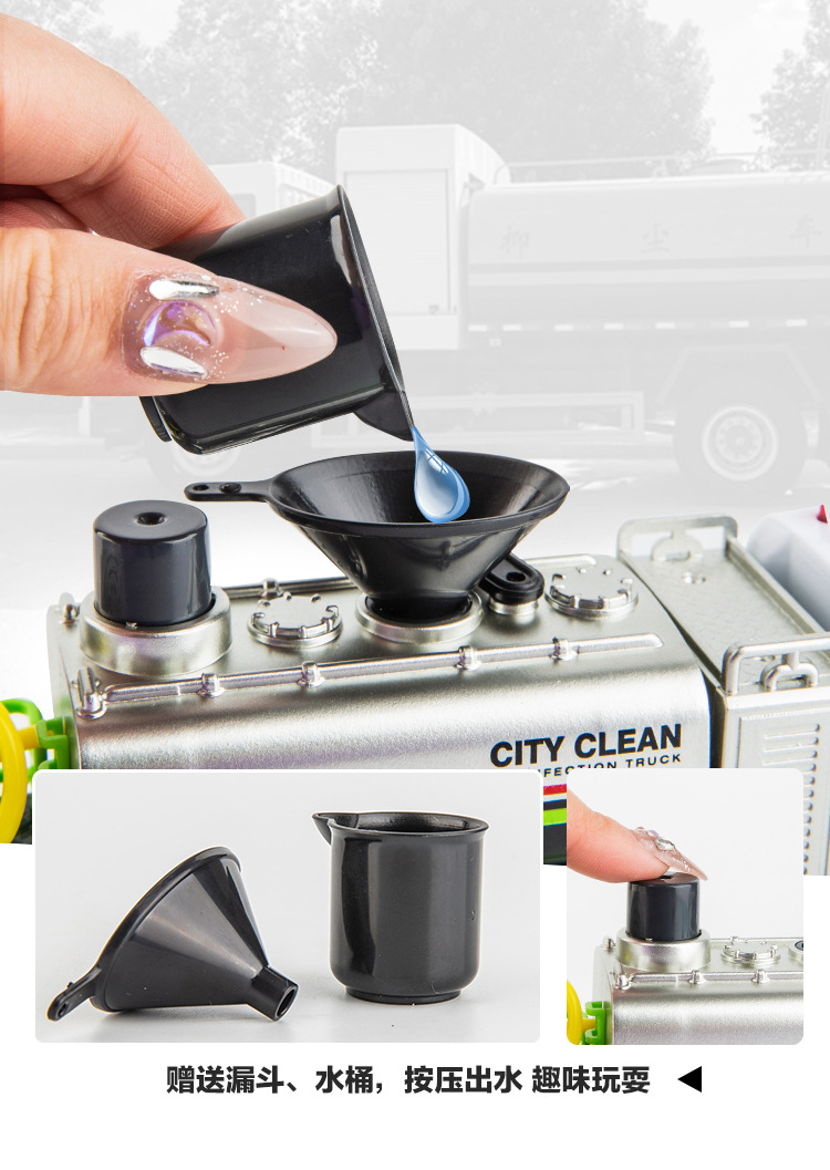 • 조명 및 음향 효과가 있는 합금 도시 물 탱크 트럭(합금 전면)은 물을 뿌릴 수 있습니다.
