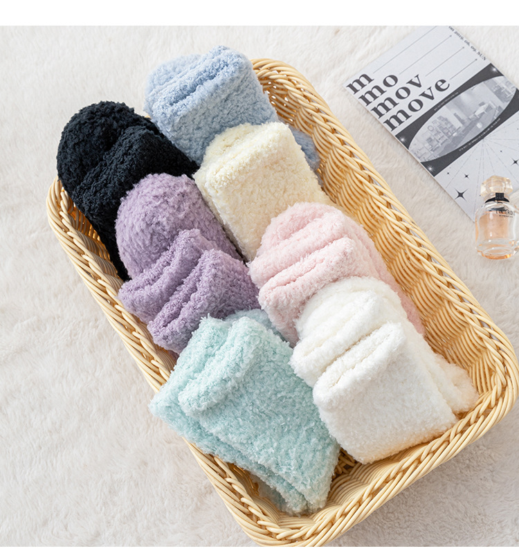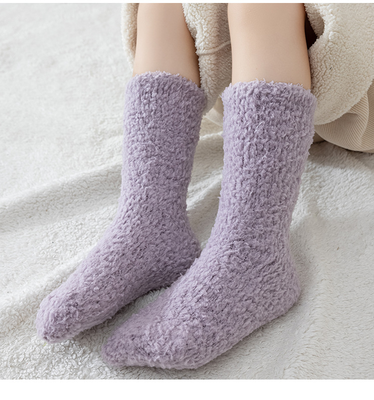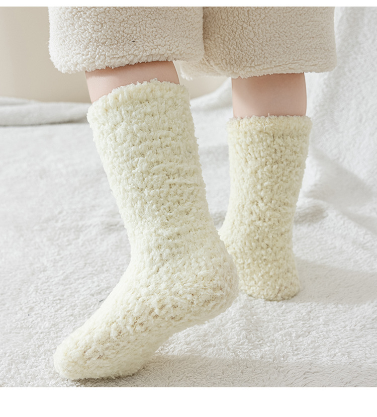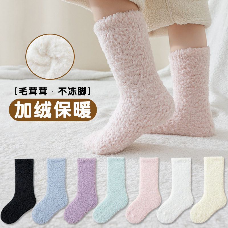산호 양털 아기 양말 가을과 겨울 두꺼운 기모 아기 홈 바닥 양말 겨울 어린이 수면 높은 양말스토어 가기