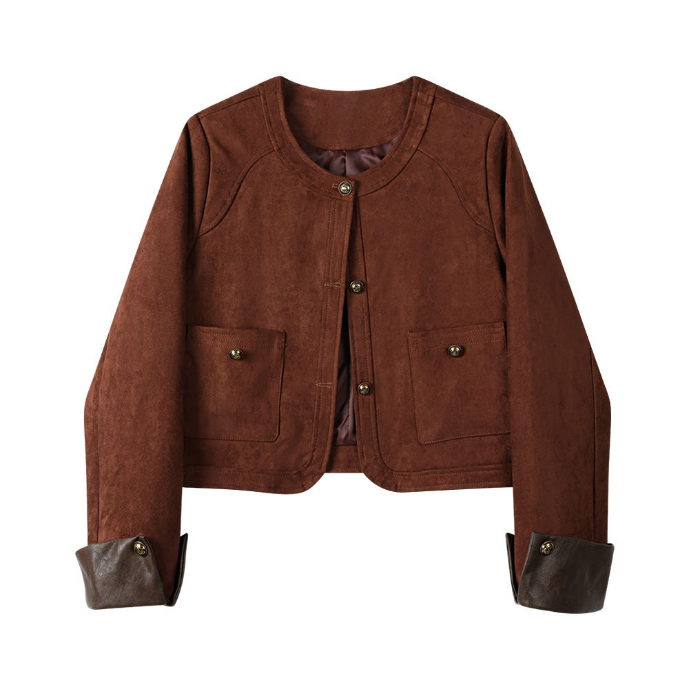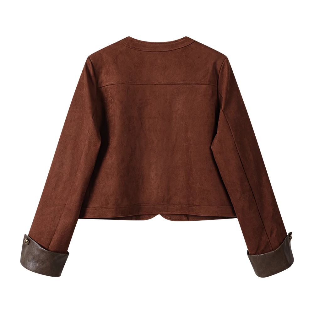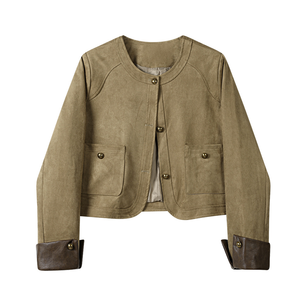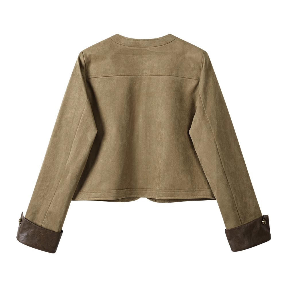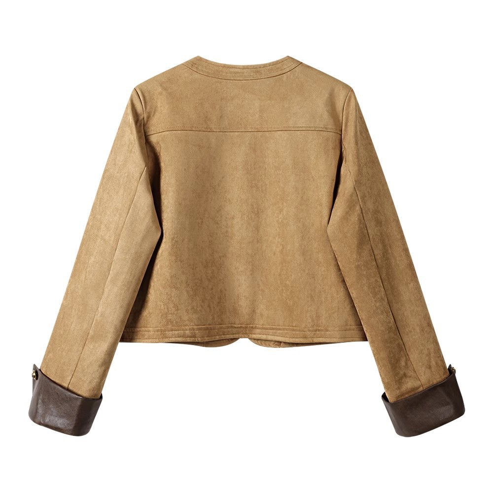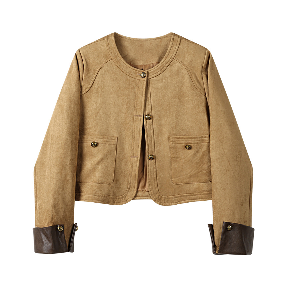 재고 디자인 짧은 스티칭 스웨이드 재킷 여성의 가을 미국 스타일 레트로 바이커 재킷스토어 가기