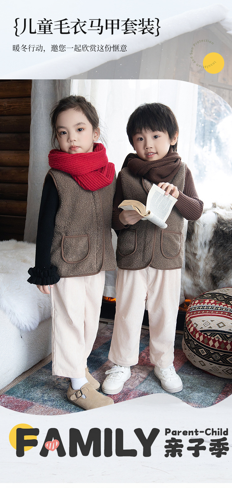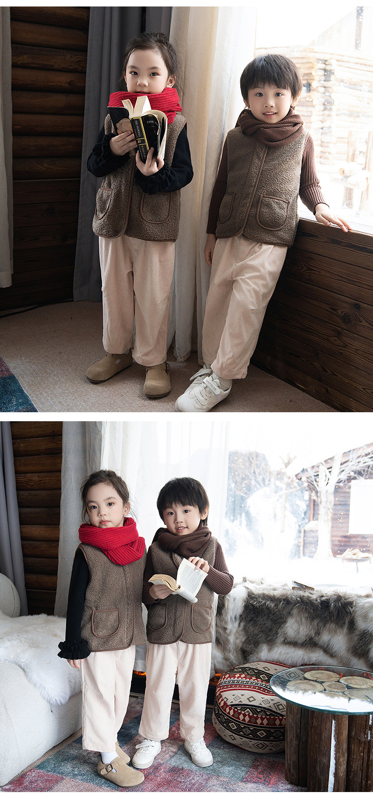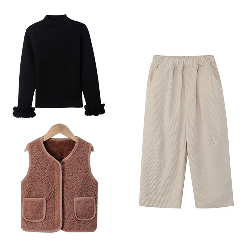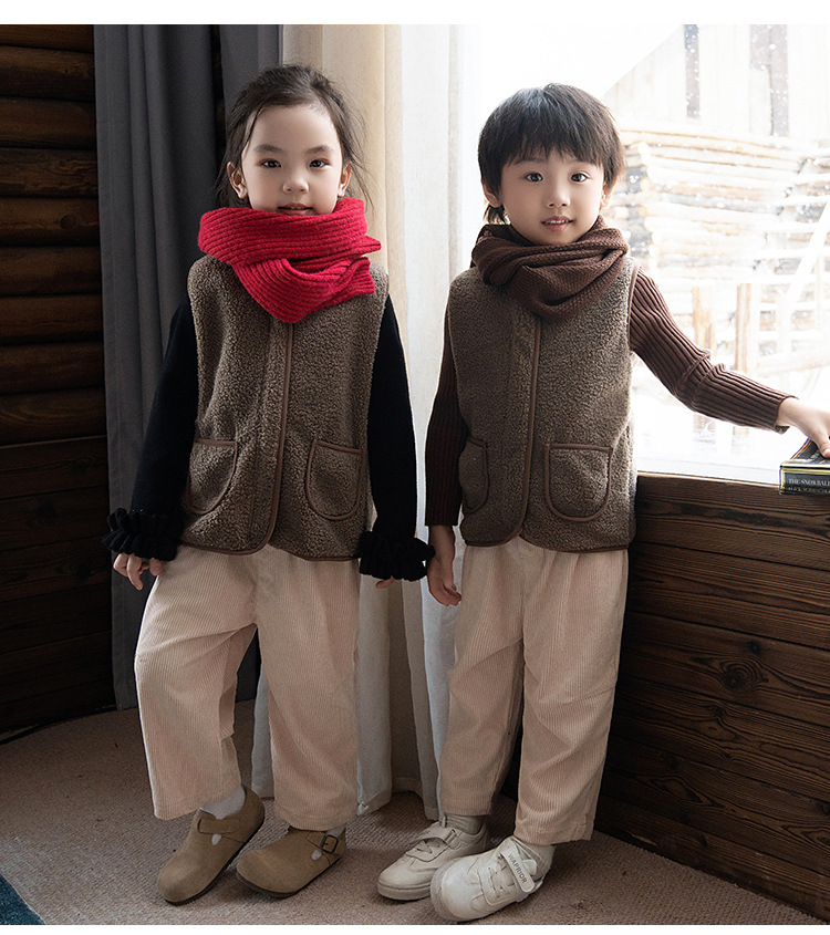 2024 가을과 겨울 새로운 소년 기모 아기 양복 조끼 어린이 양고기 벨벳 조끼 소녀 따뜻한면 조끼 착용스토어 가기