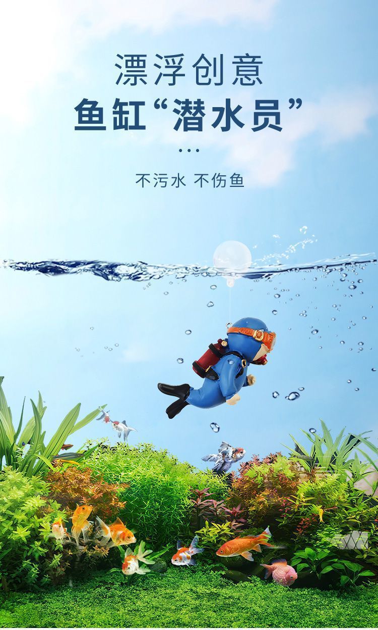 무료 배송 도매 가격 생선 탱크 풍경 장식품 블루 지방 다이버 작은 마녀 수중 세계 떠있는 장식스토어 가기