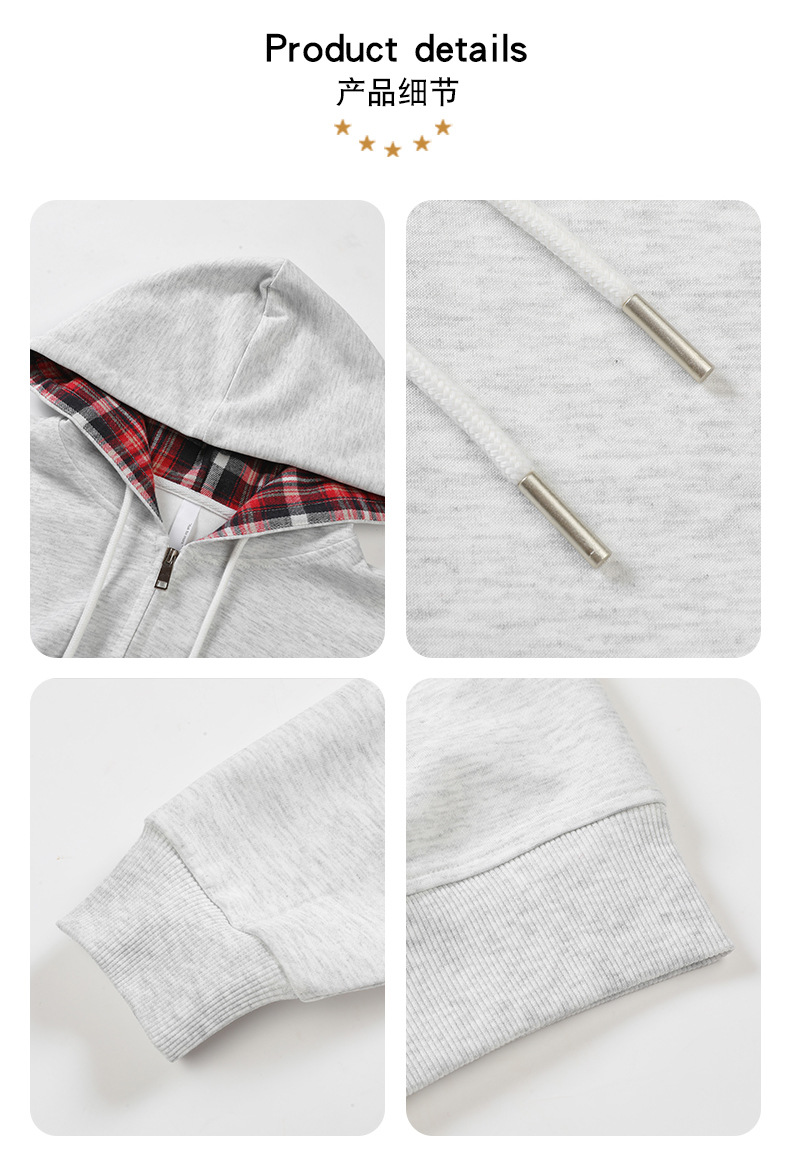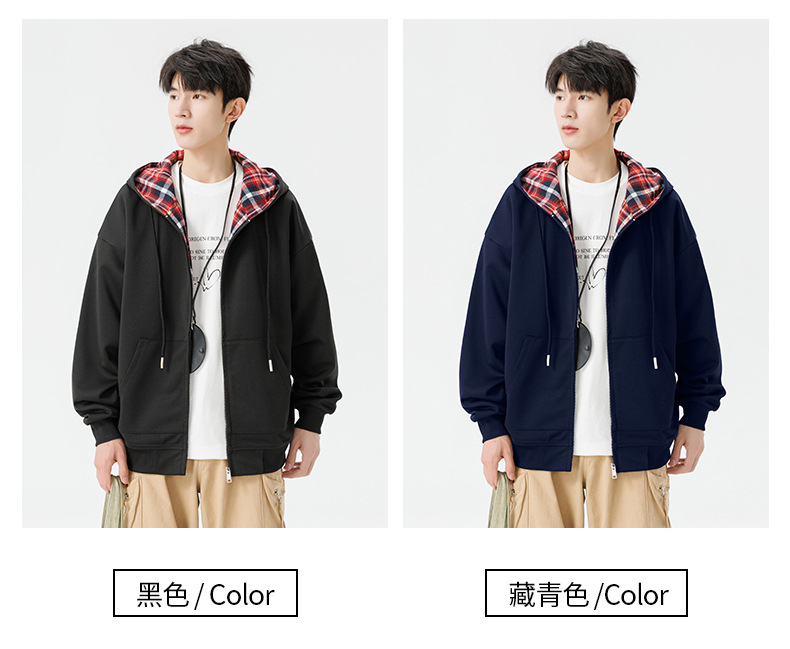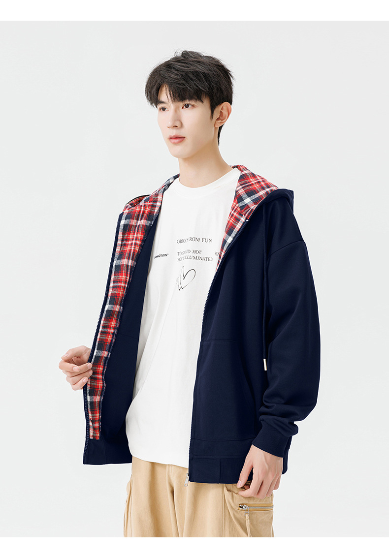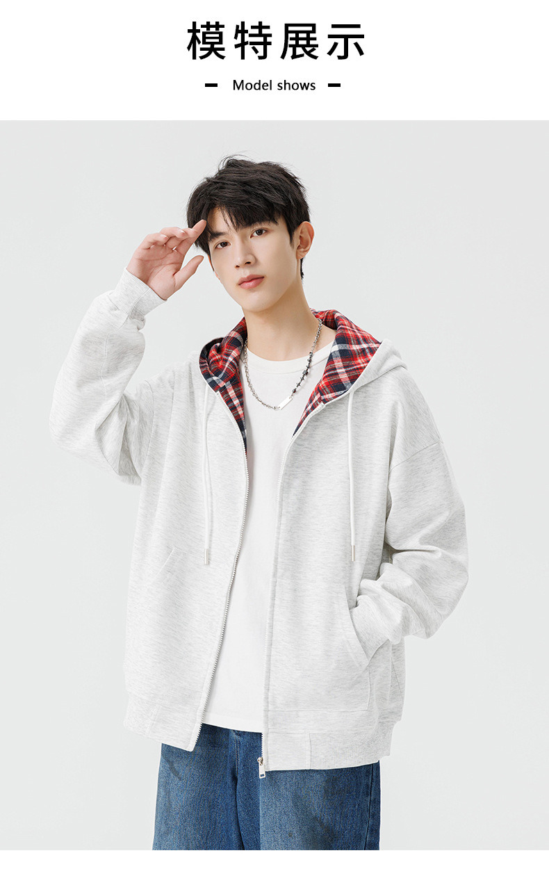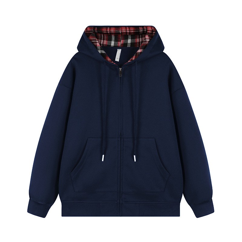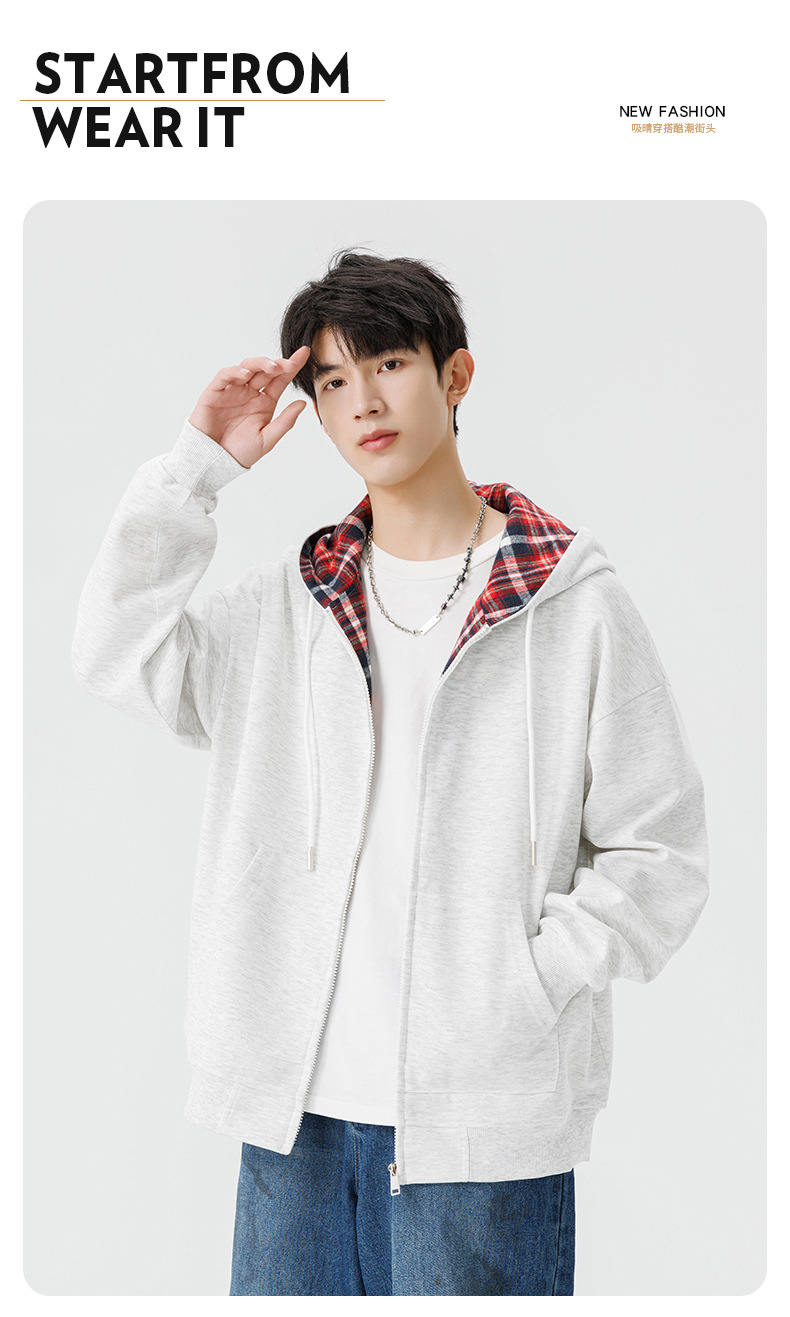 미국 격자 무늬 카디건 스웨터 남자의 봄과 가을 새로운 느슨한 후드 탑 커플의 유행 브랜드 지퍼 재킷