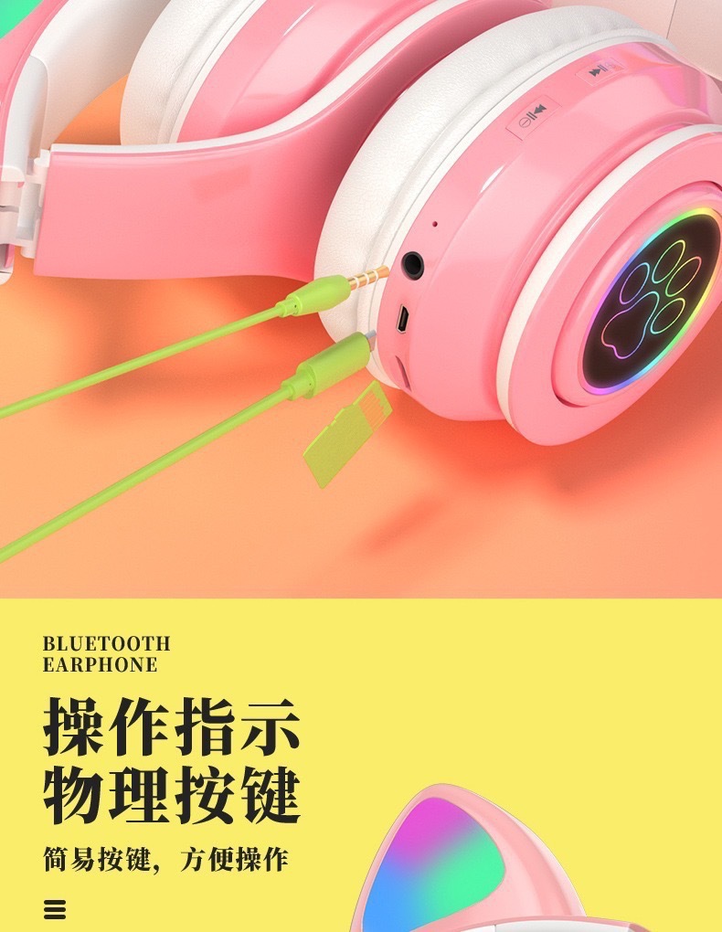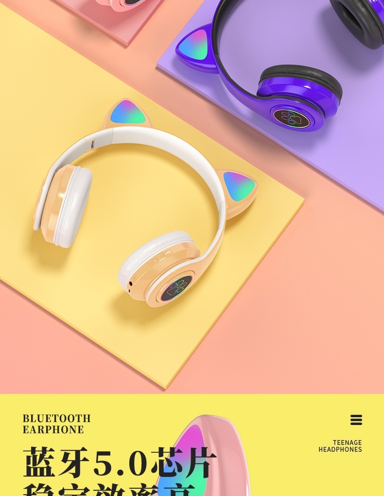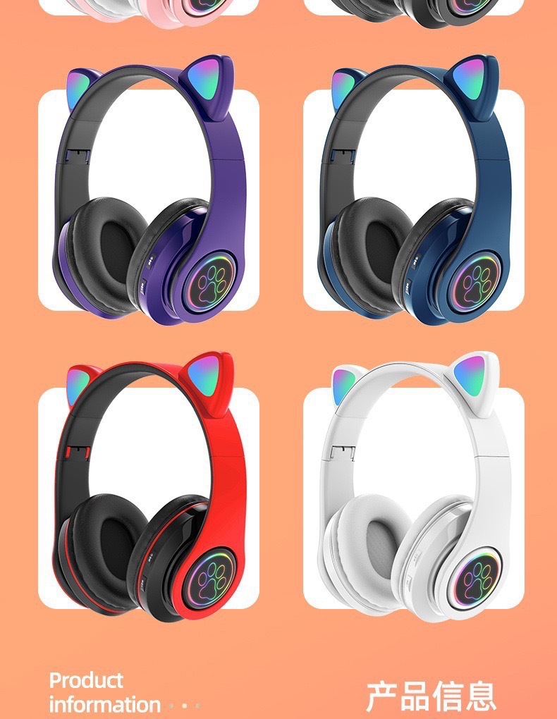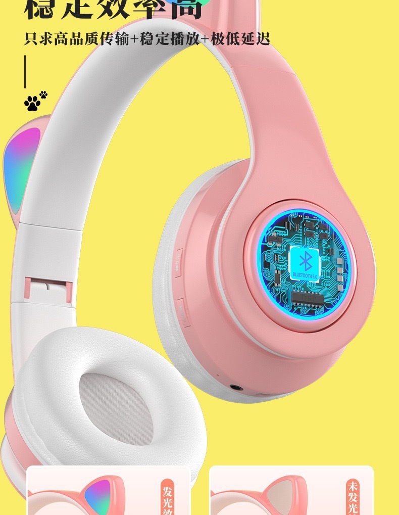 국경 간 고양이 귀 B39 블루투스 헤드셋 스테레오 사운드 귀여운 고양이 귀 LED 새로운 빛나는 무선 헤드셋