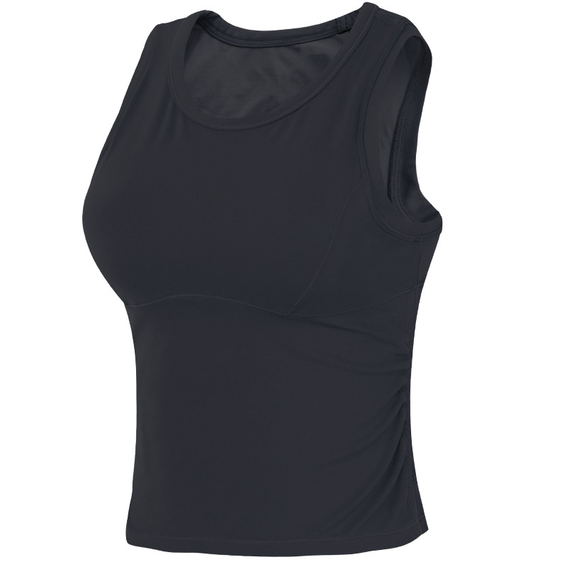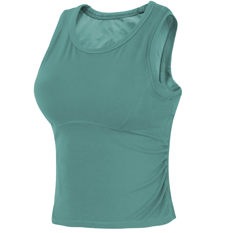 국경 간 스포츠 조끼 여자 원컵 2024 여름 뉴 아우터웨어 피트니스 쇼트 필라테스 탑