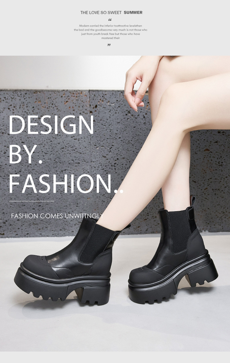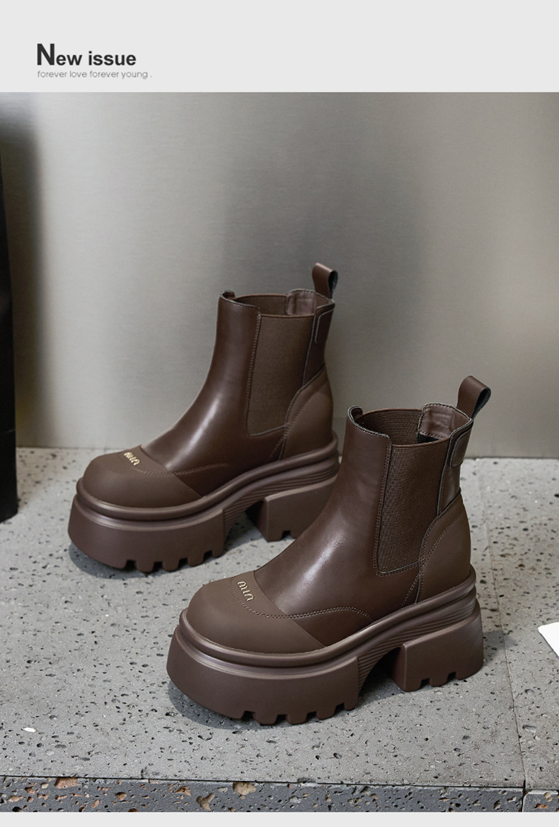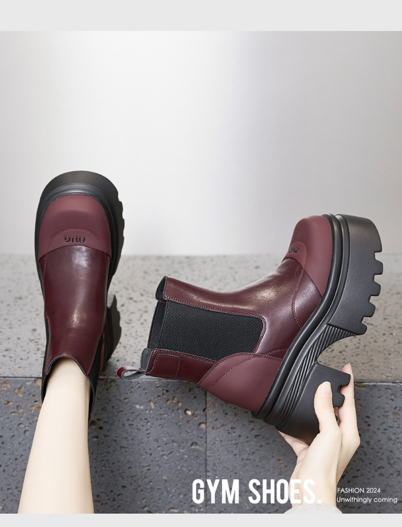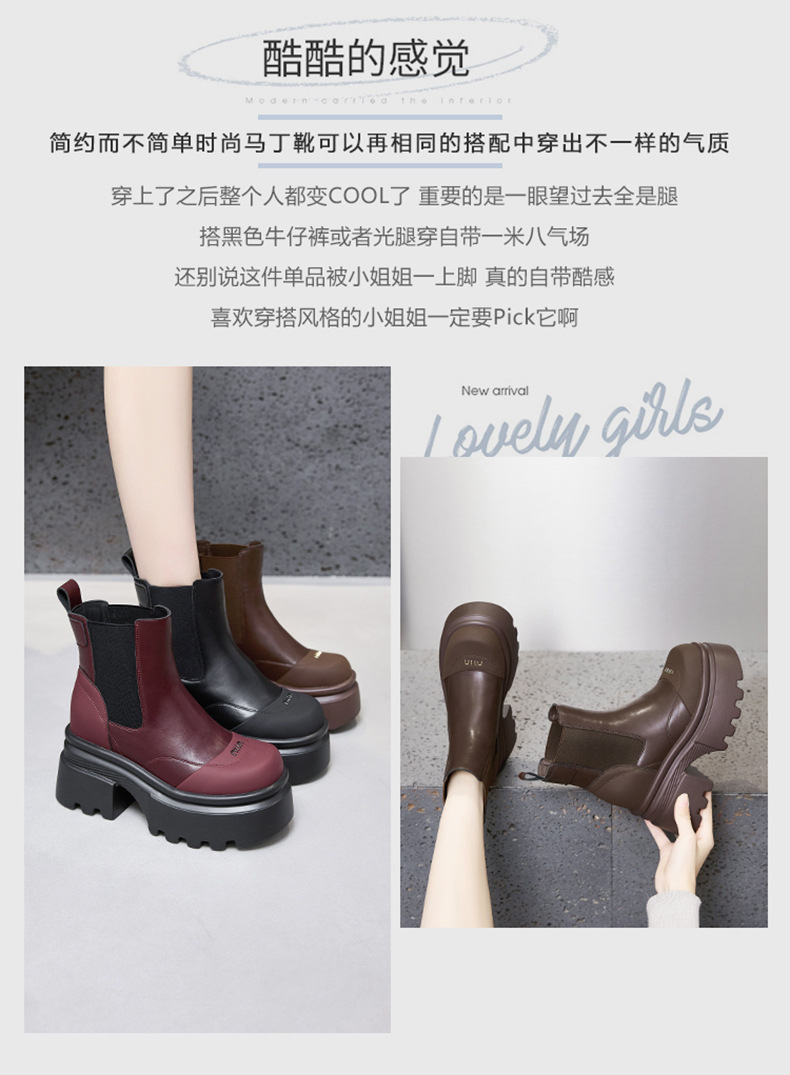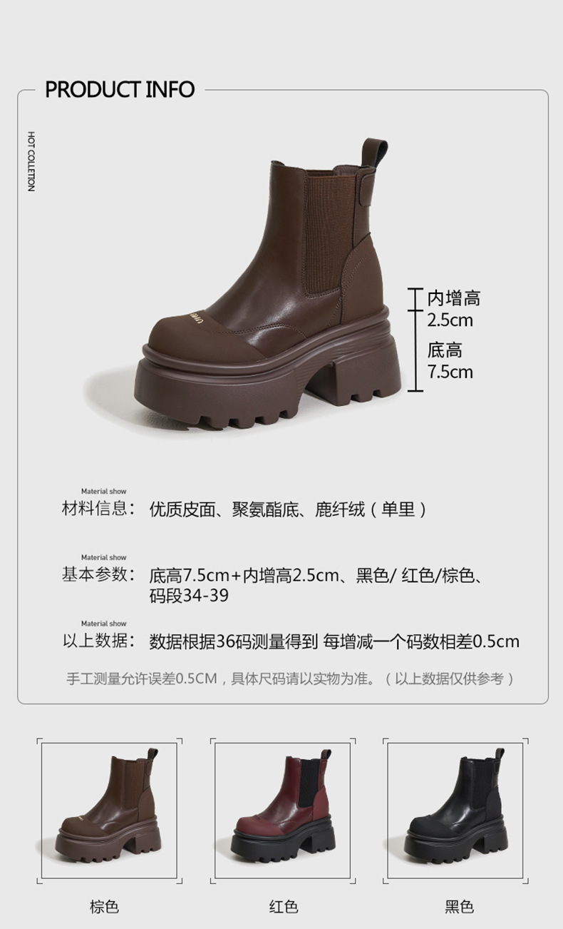 마틴 부츠 여성용 2025 가을 겨울 신상 다용도 키높이 부츠 두꺼운 밑창 중간 길이 슬림 부츠 숏부츠스토어 가기