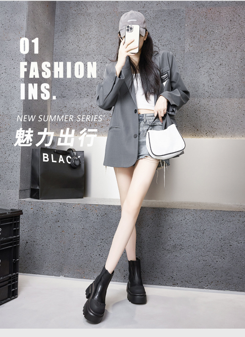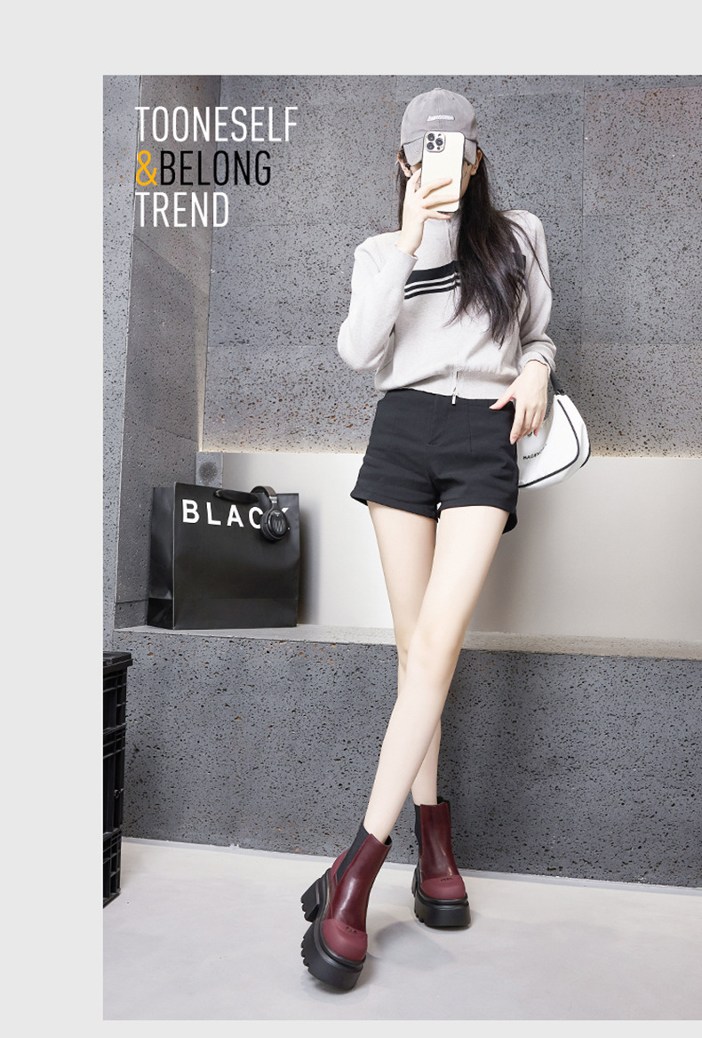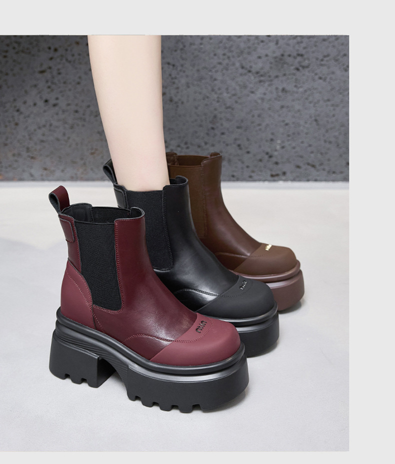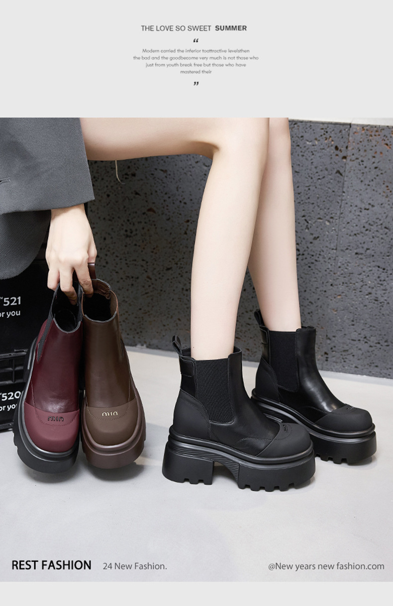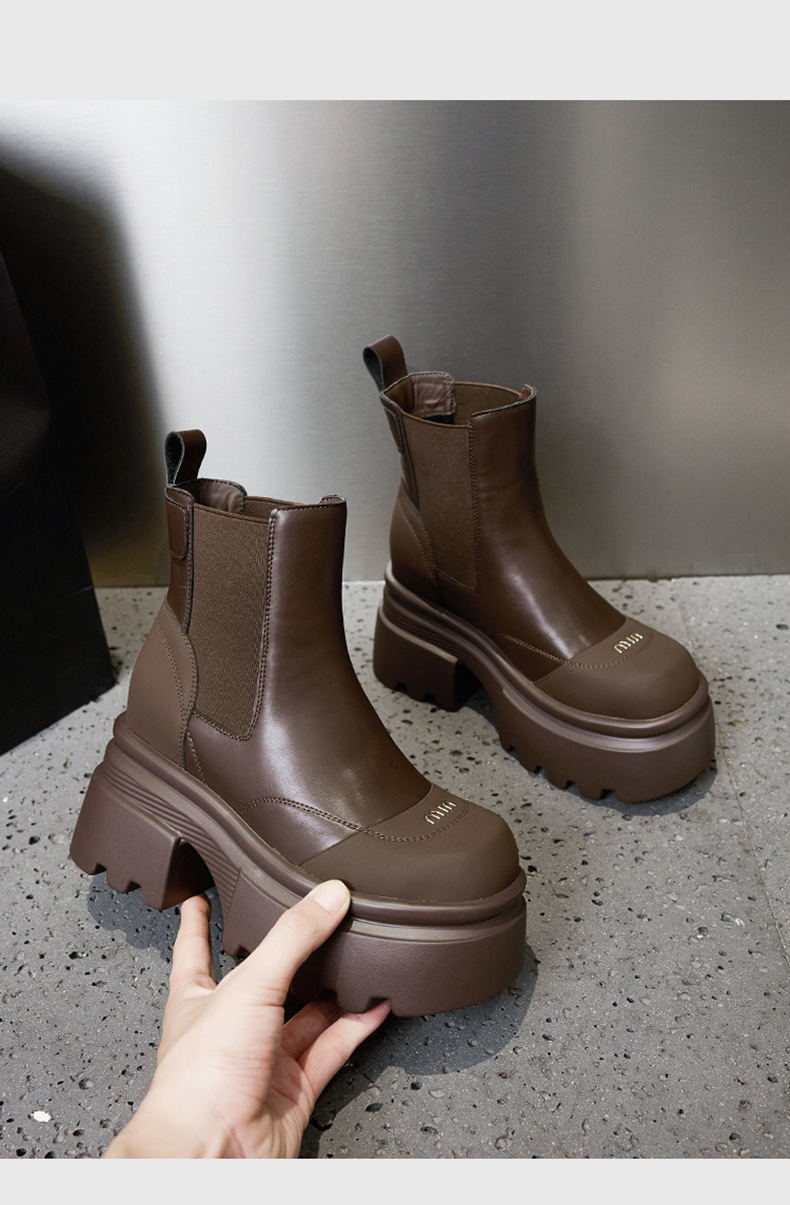 마틴 부츠 여성용 2025 가을 겨울 신상 다용도 키높이 부츠 두꺼운 밑창 중간 길이 슬림 부츠 숏부츠스토어 가기