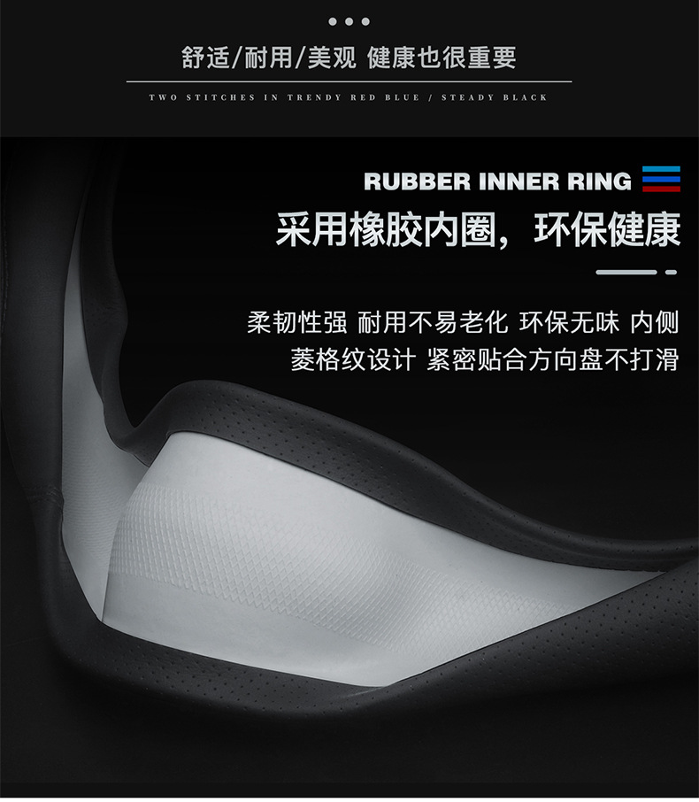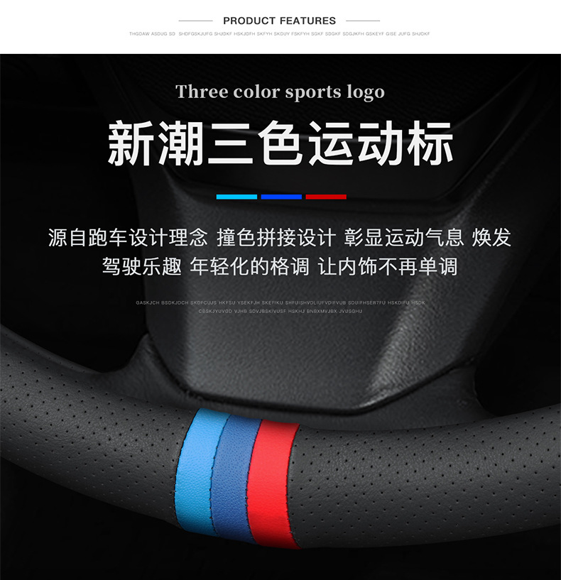 • 소가죽 전체 D자형 빨간색과 파란색 라인 3색 마크 + 자동차 로고
