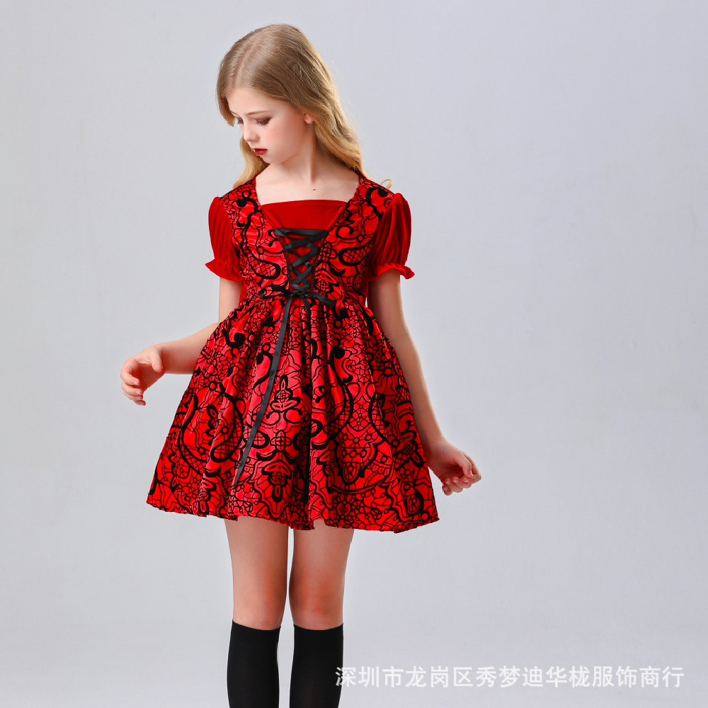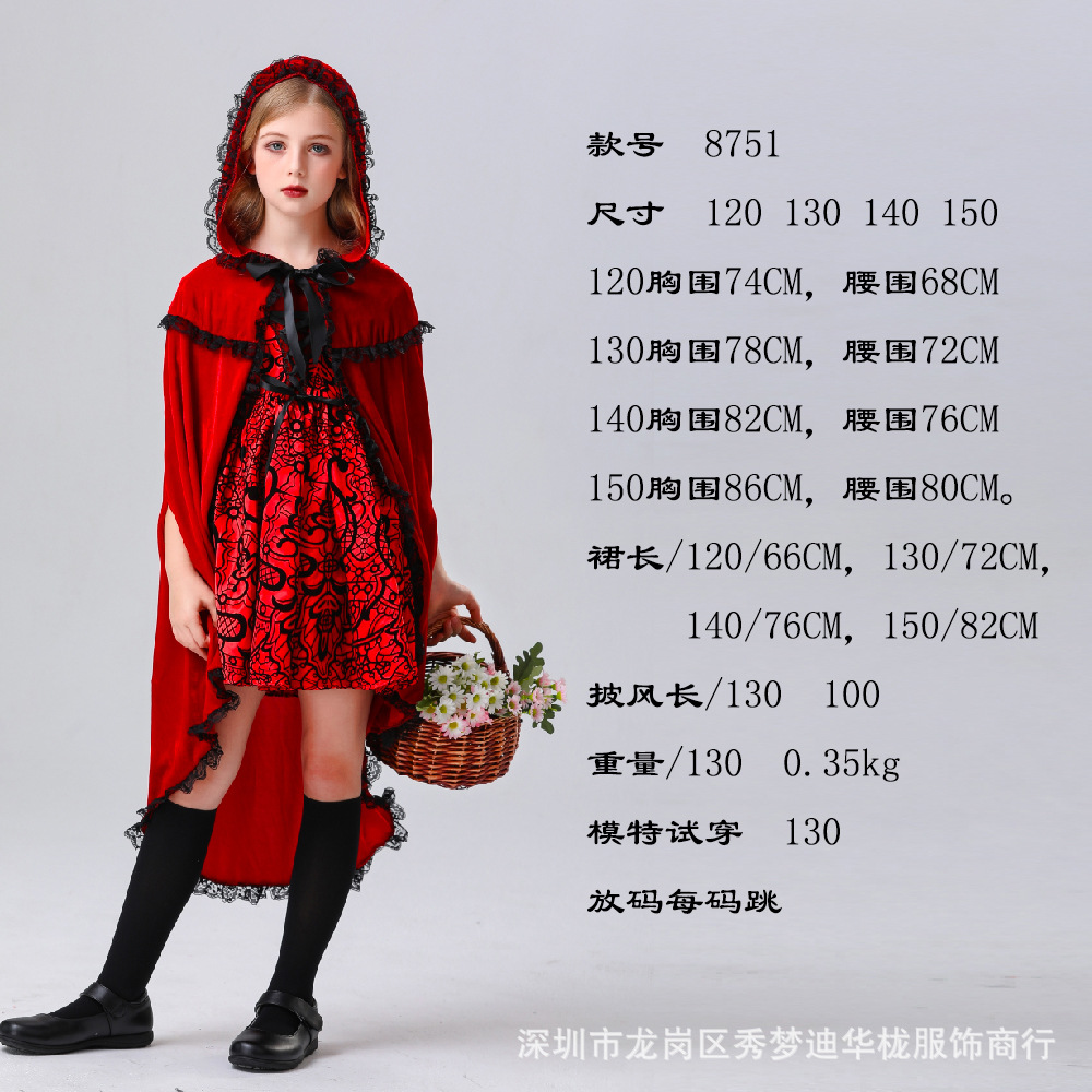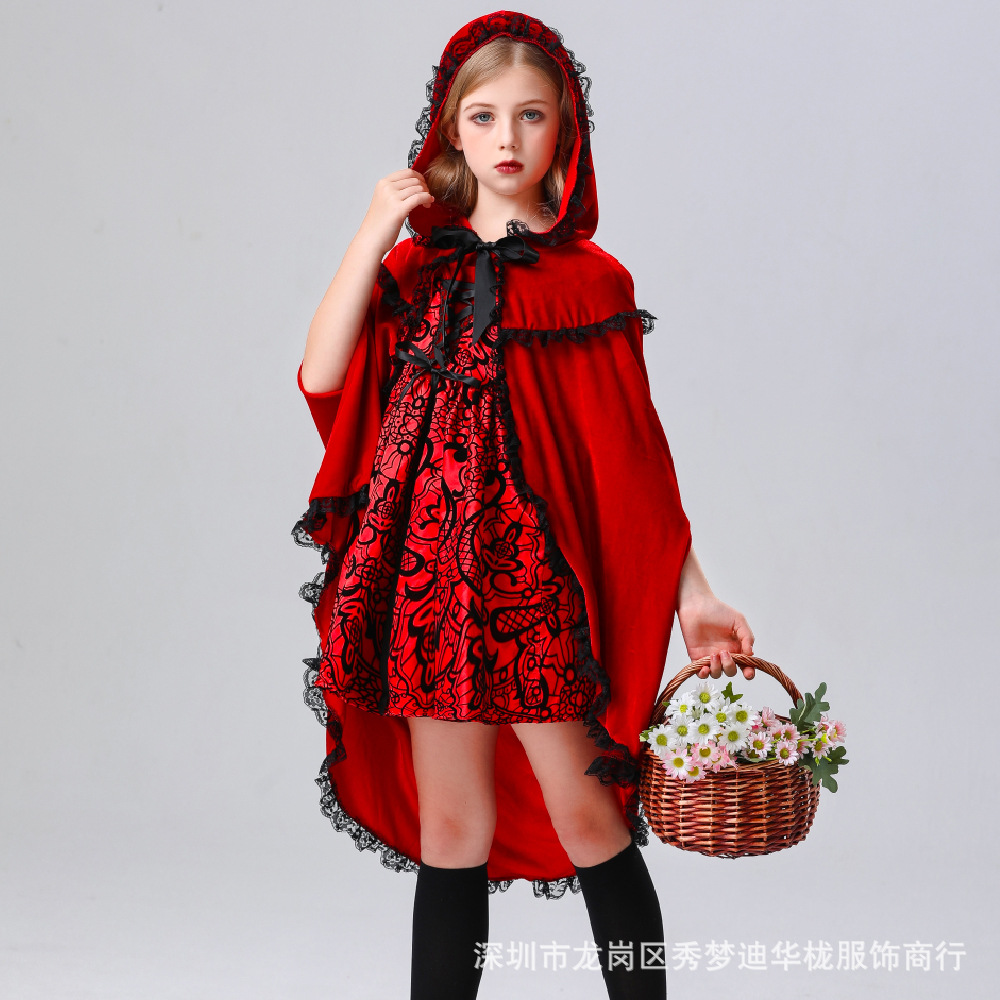 2024 새로운 할로윈 어린이 코스프레 작은 빨간 승마 후드 의상 6 월 1 일 어린이 날 무대 의상 리얼 샷스토어 가기