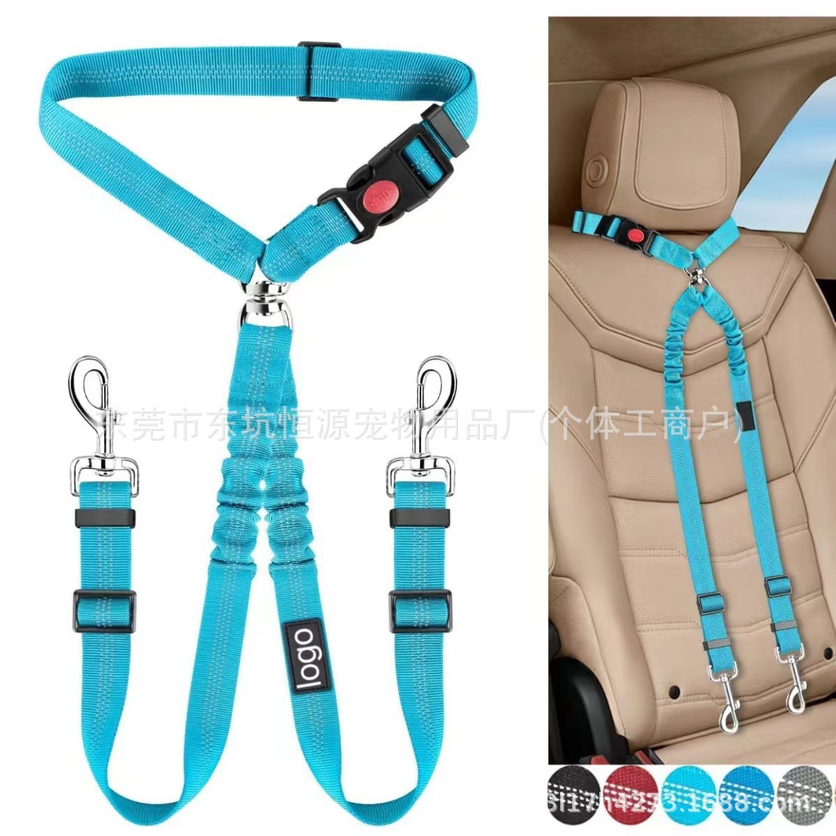 자동차용 1대2 이중 헤드 애완동물 목줄 소형 중형 대형견 테디 골든 리트리버 개줄 신축성 탄성줄