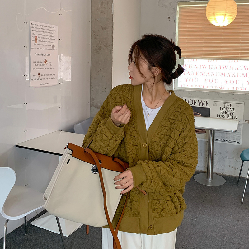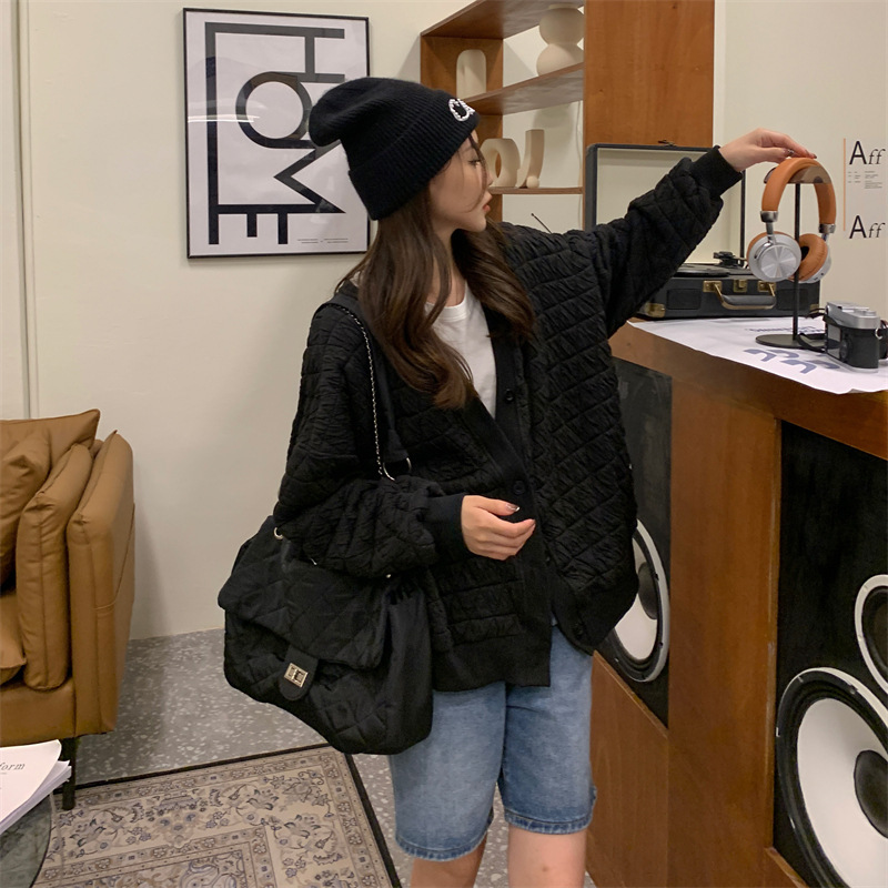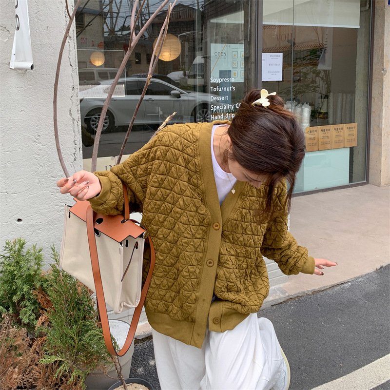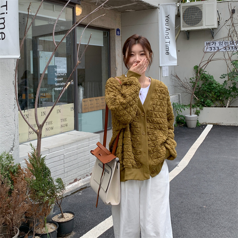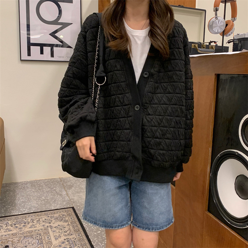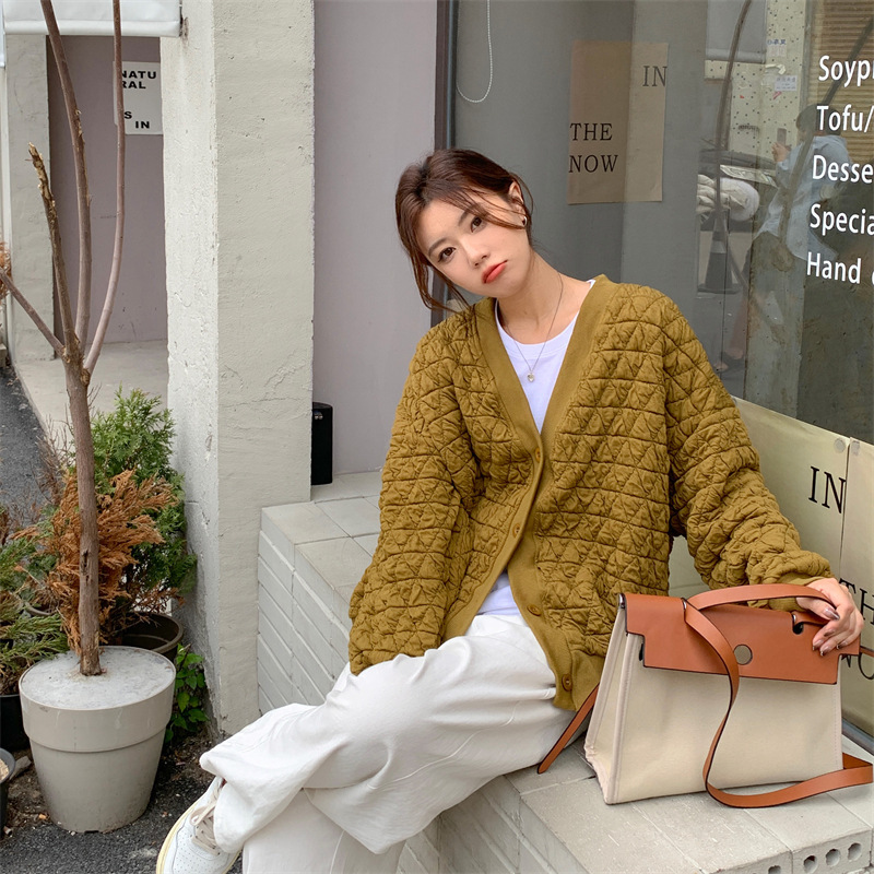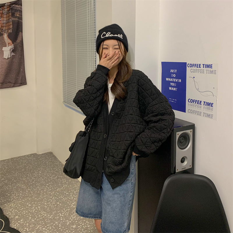 브이넥 카디건 야구 세트 코트 여자 가을 · 겨울 올매치 한국식 루즈에이지 줄인 게으른 자켓 탑인 트렌디스토어 가기