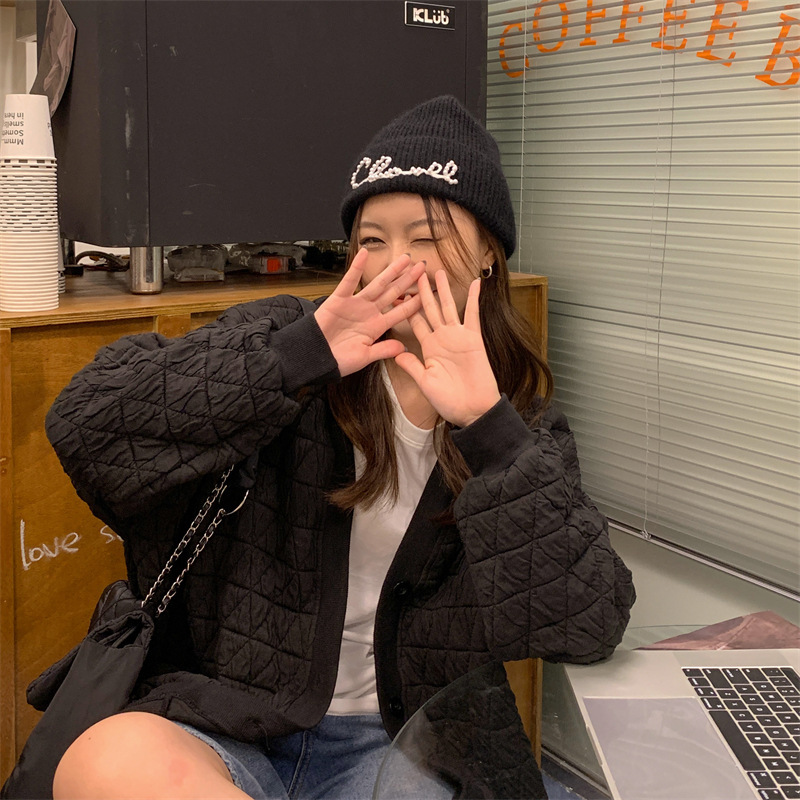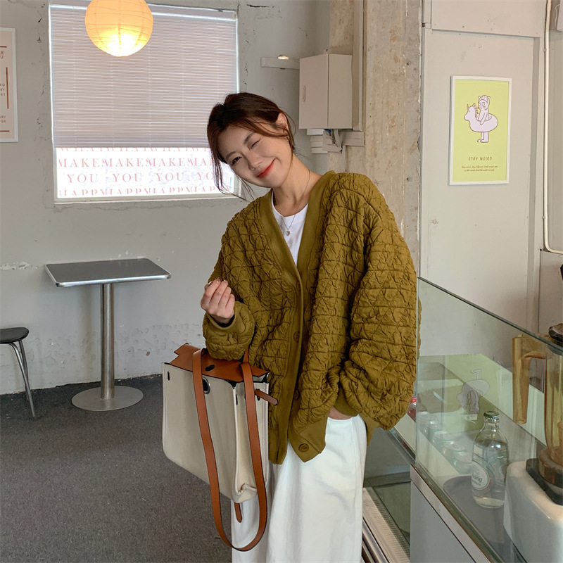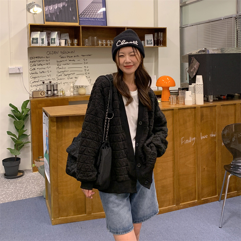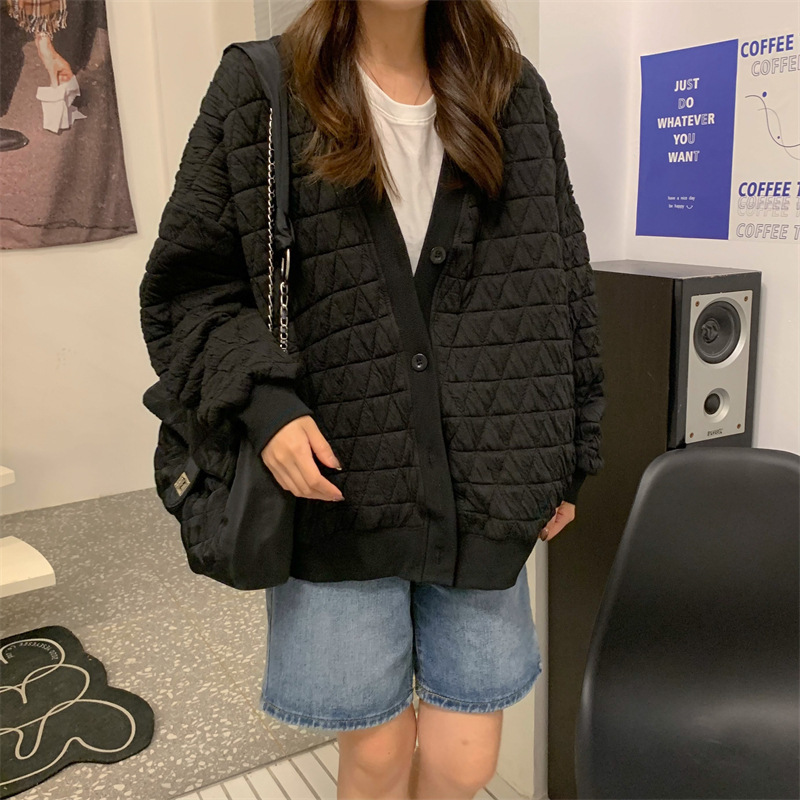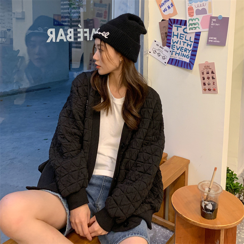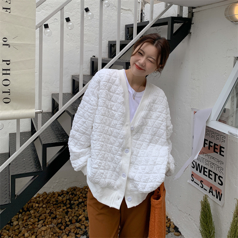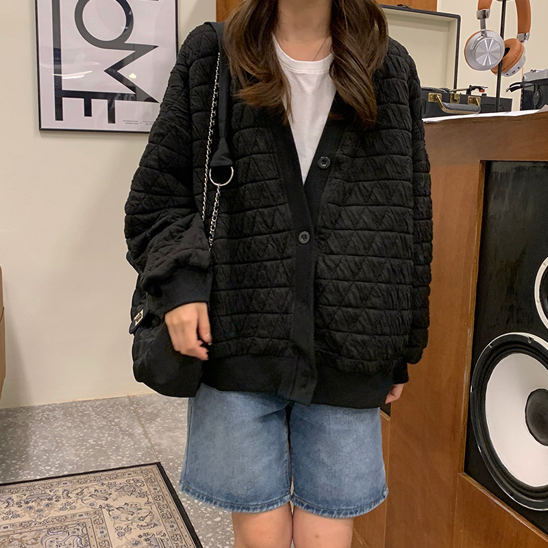 브이넥 카디건 야구 세트 코트 여자 가을 · 겨울 올매치 한국식 루즈에이지 줄인 게으른 자켓 탑인 트렌디스토어 가기