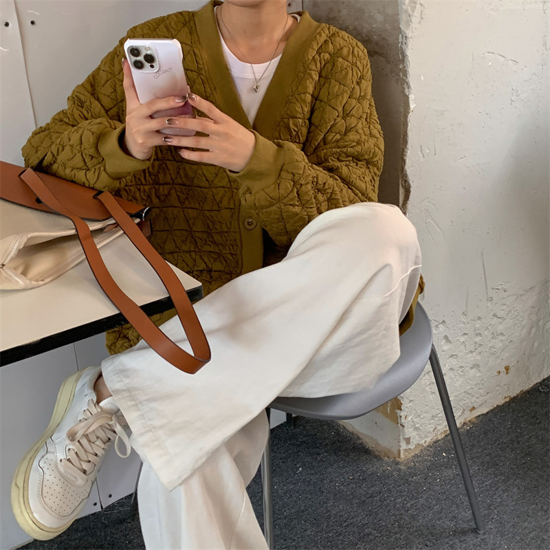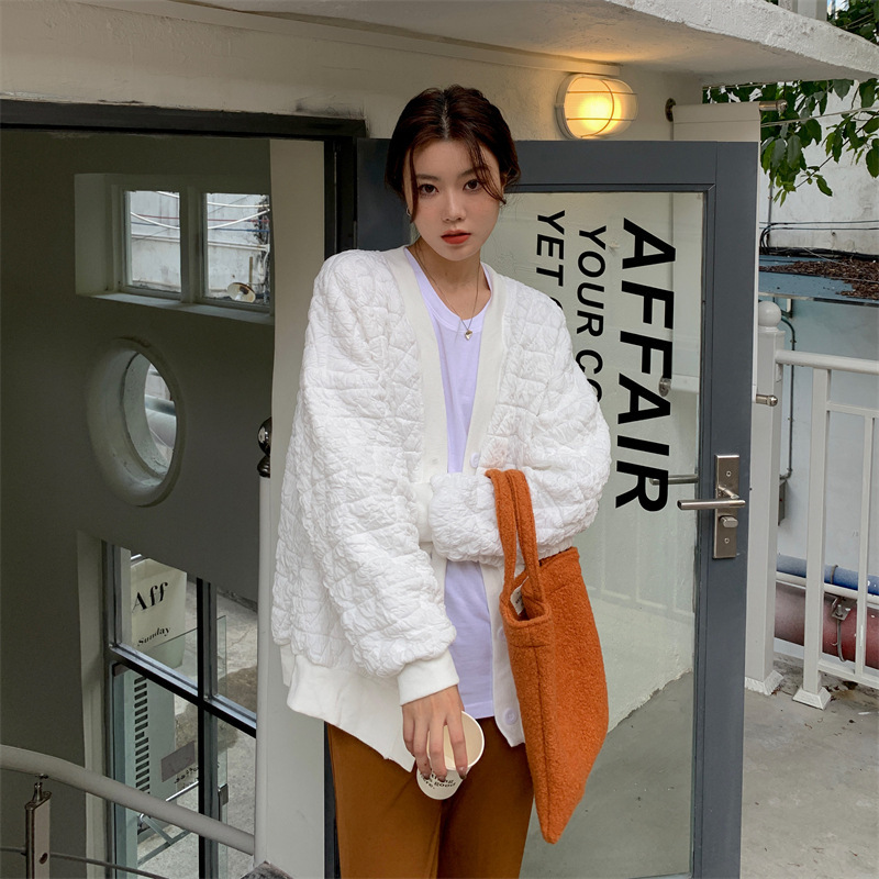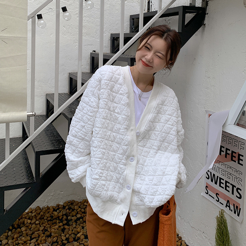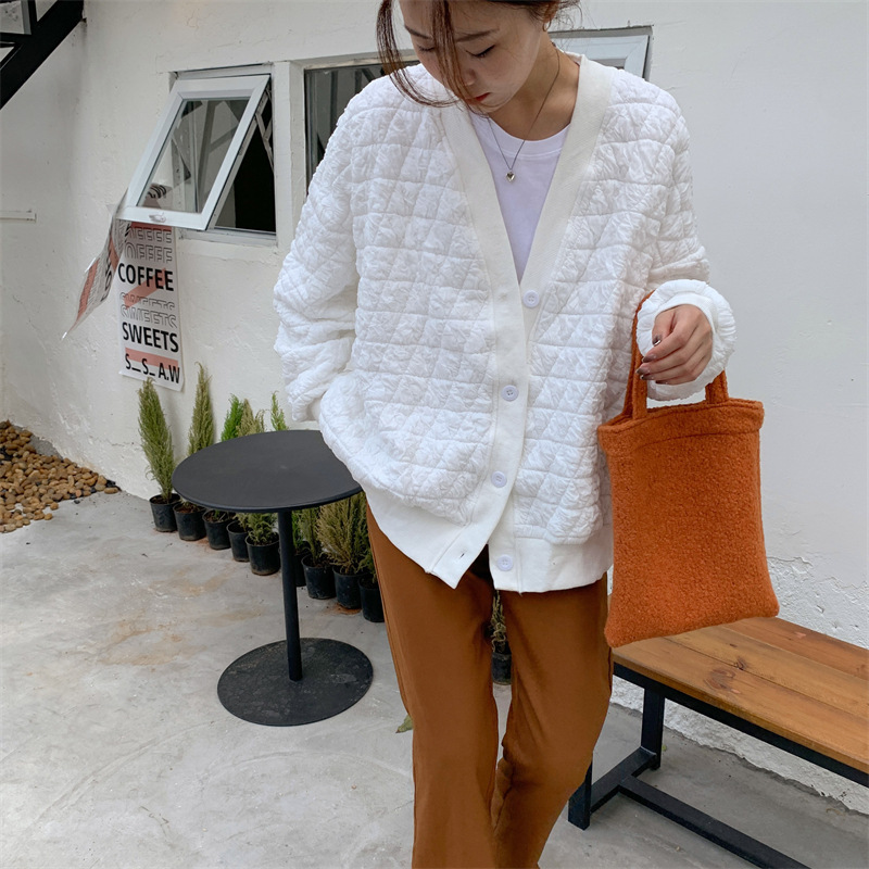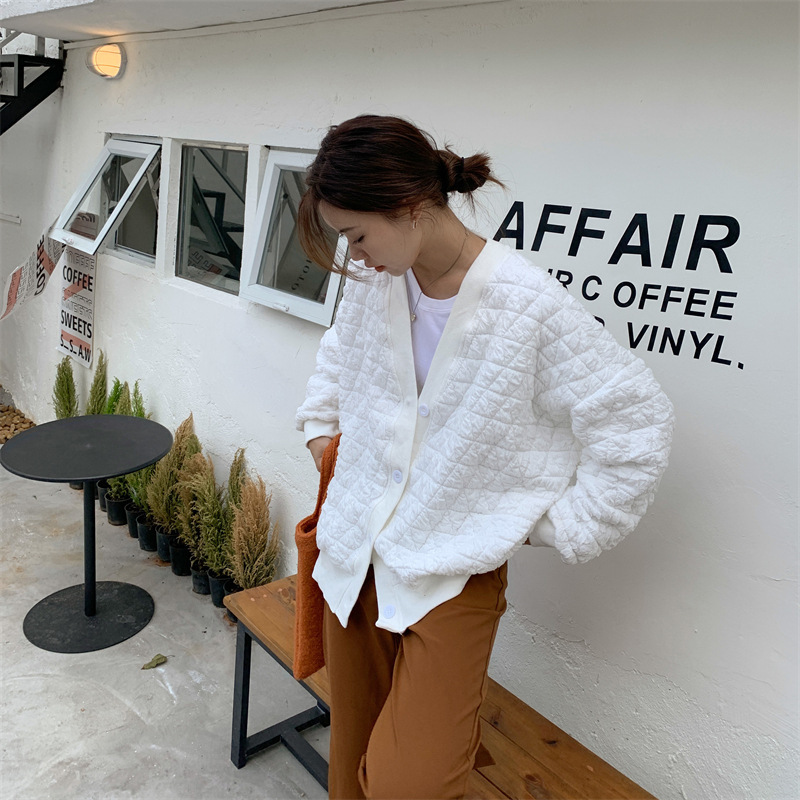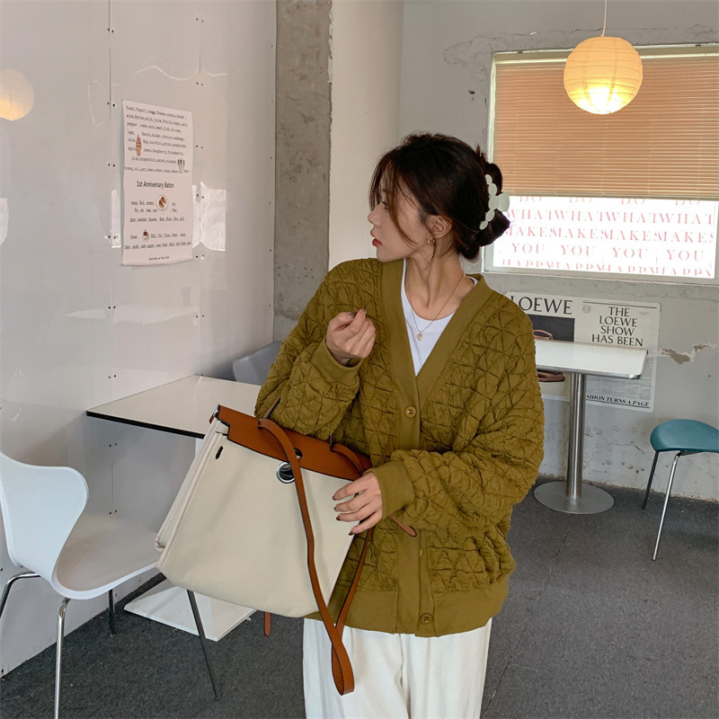 브이넥 카디건 야구 세트 코트 여자 가을 · 겨울 올매치 한국식 루즈에이지 줄인 게으른 자켓 탑인 트렌디