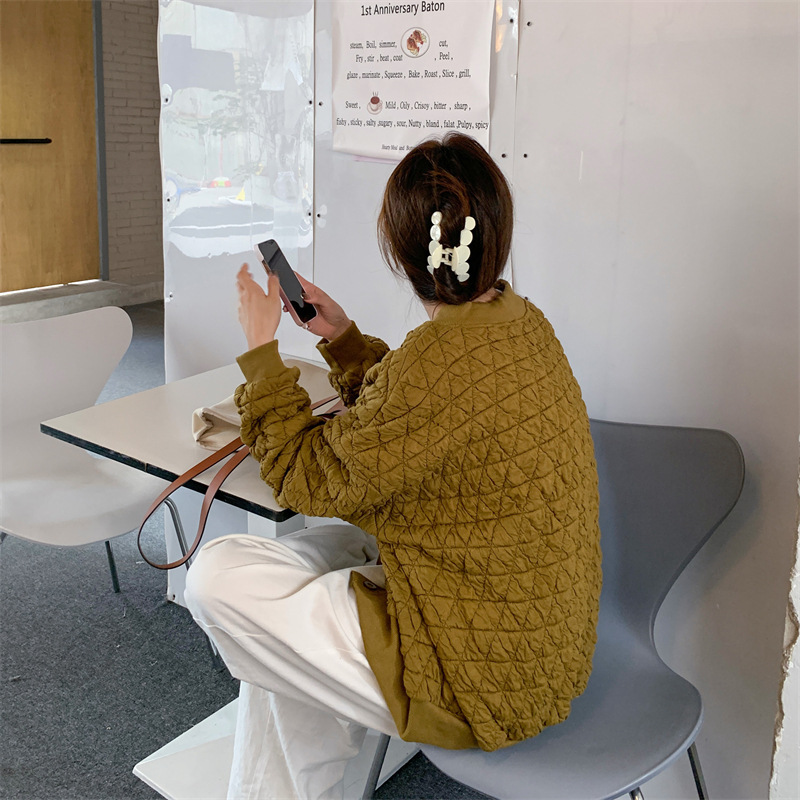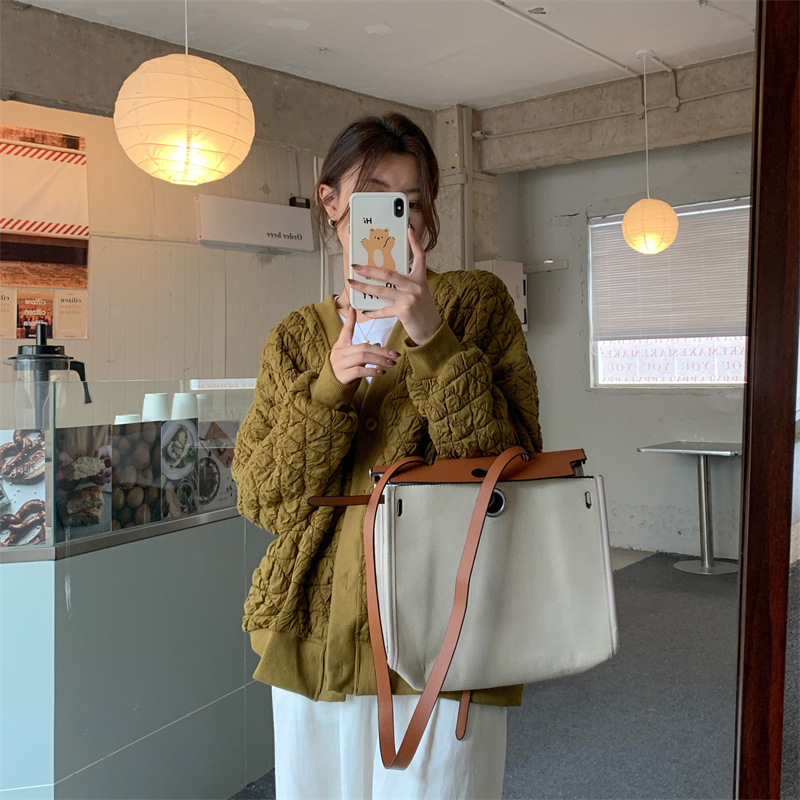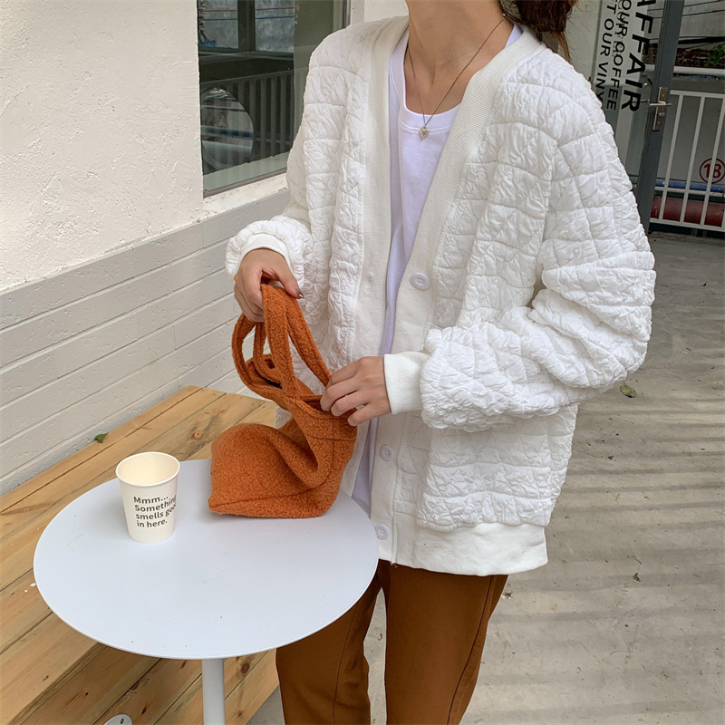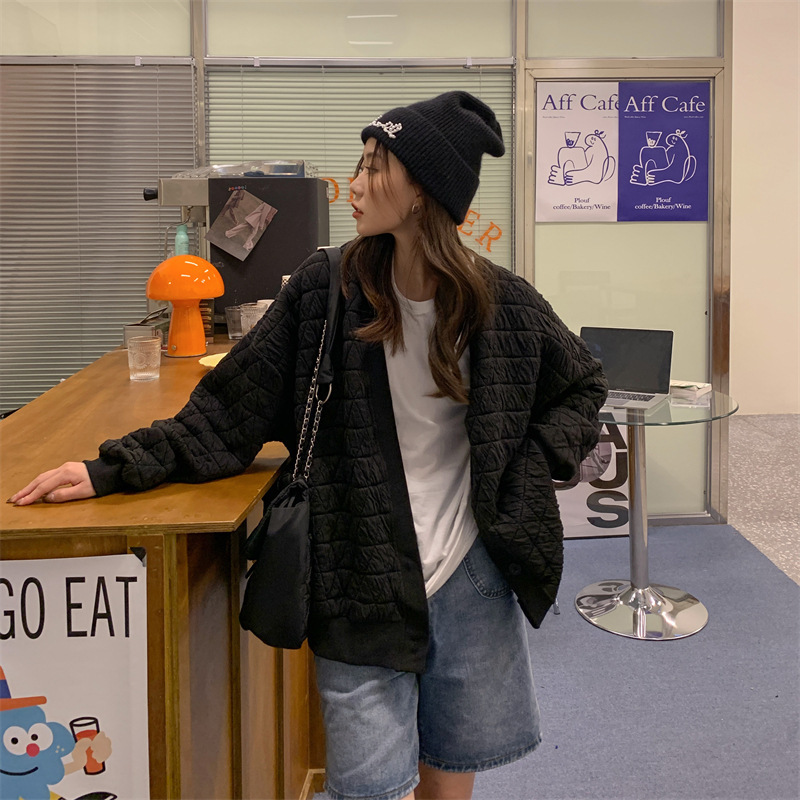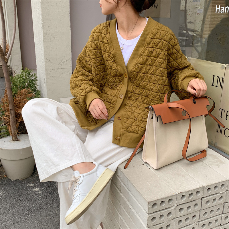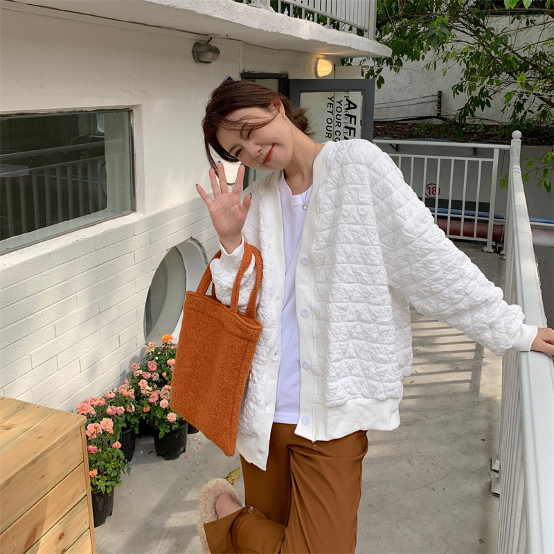 브이넥 카디건 야구 세트 코트 여자 가을 · 겨울 올매치 한국식 루즈에이지 줄인 게으른 자켓 탑인 트렌디