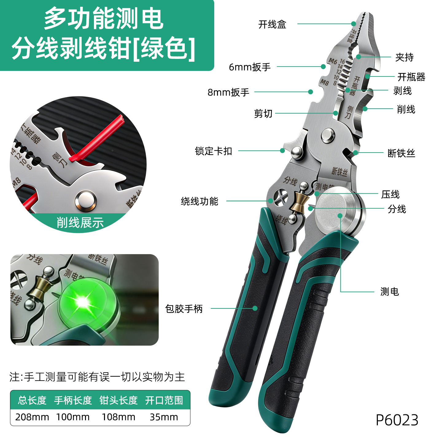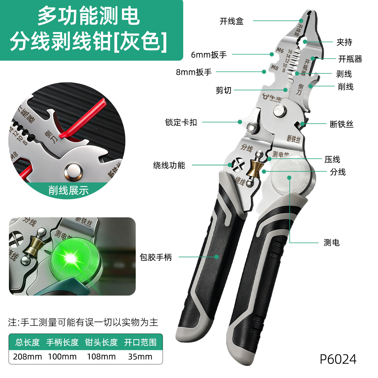 • 유도형 전기 테스트 및 스트리핑 플라이어 [녹색 28-in-1]