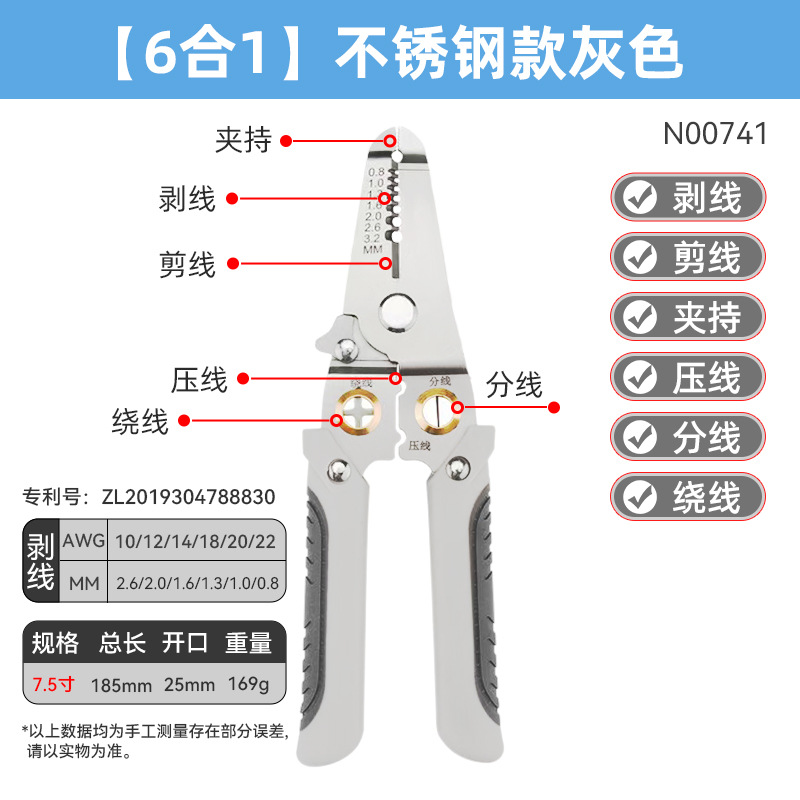 • 스테인레스 스틸 6-in-1 와이어 스트리퍼