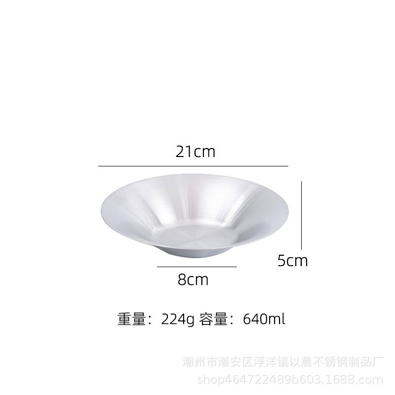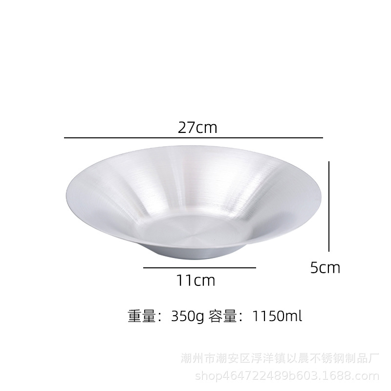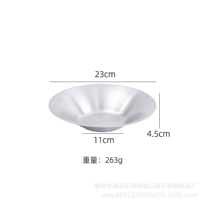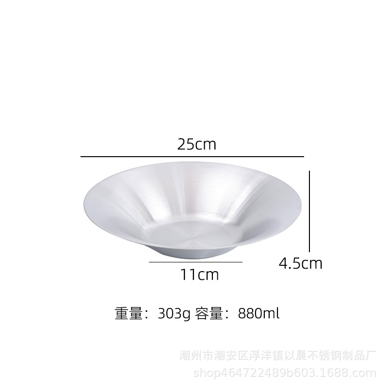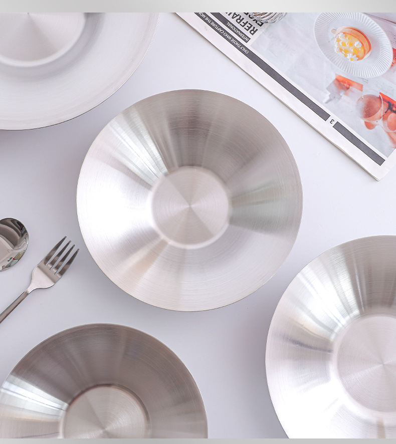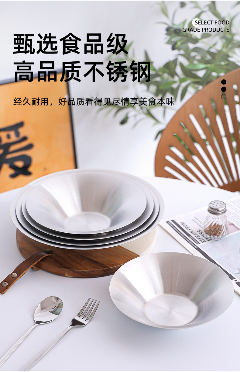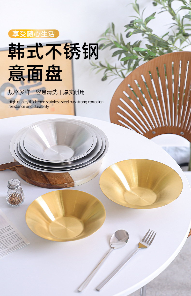 한국 플레이트 스테인레스 스틸 두꺼운 디너 플레이트 라운드 과일 샐러드 플레이트 Psta 플레이트 상업 창조적 인 국수 그릇