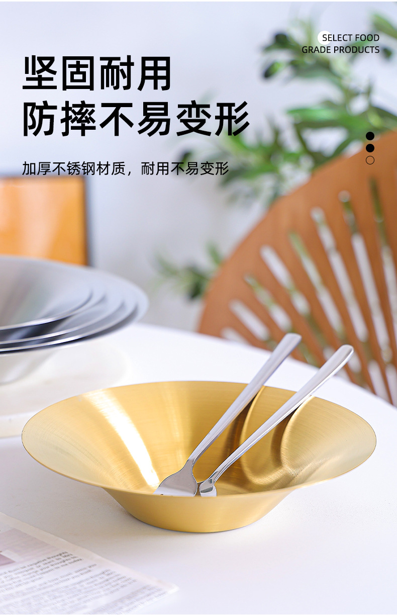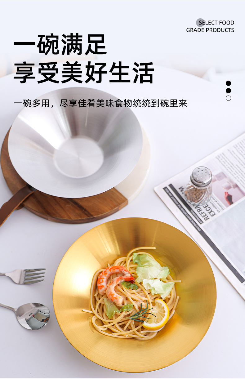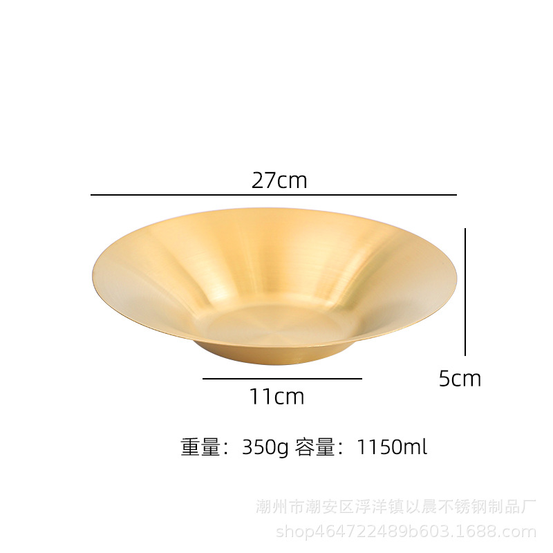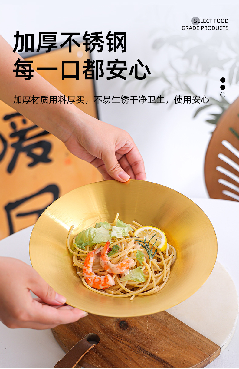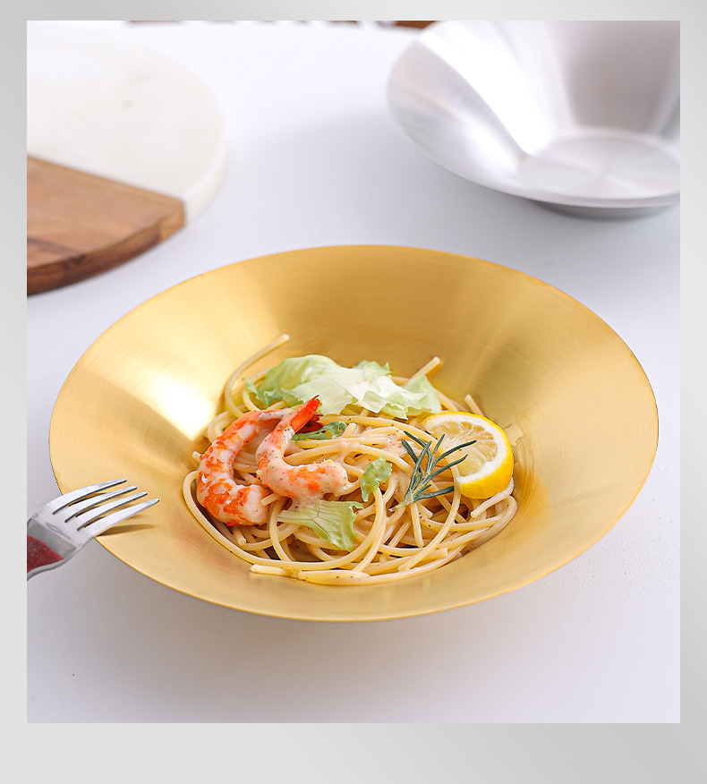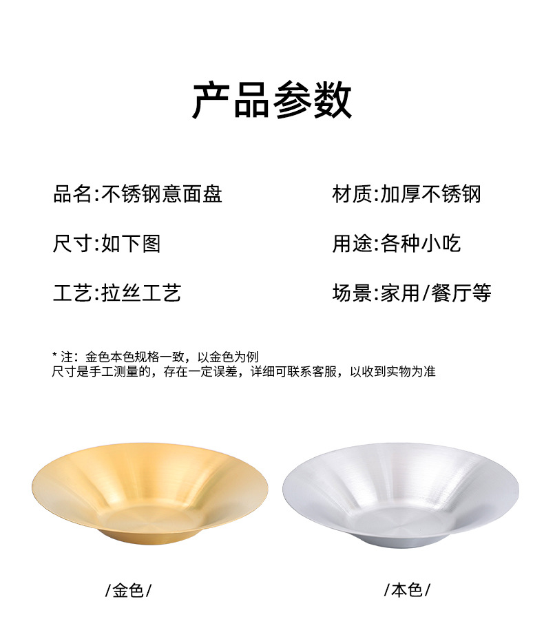 한국 플레이트 스테인레스 스틸 두꺼운 디너 플레이트 라운드 과일 샐러드 플레이트 Psta 플레이트 상업 창조적 인 국수 그릇