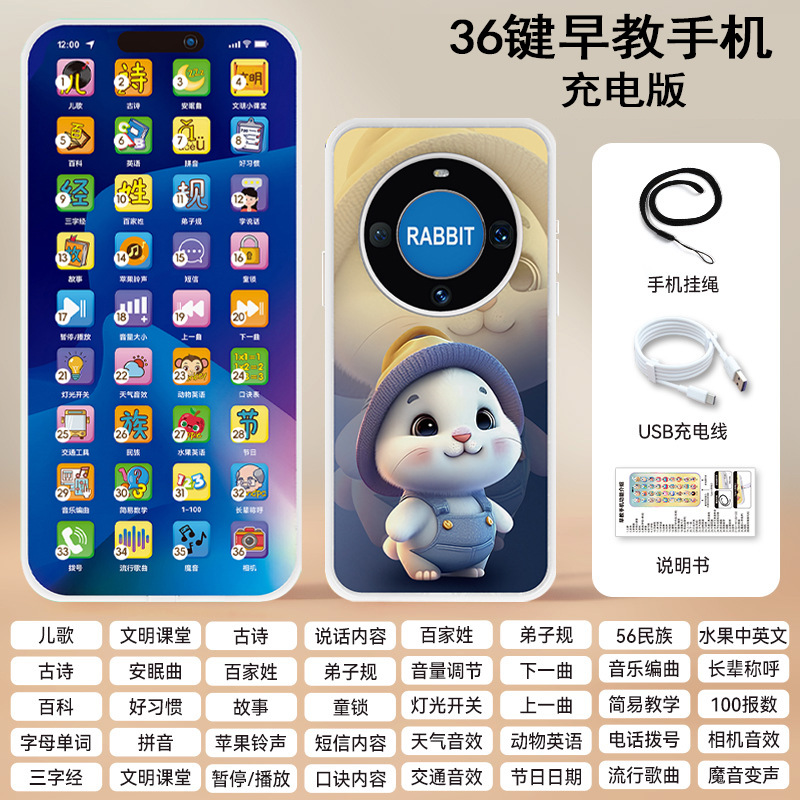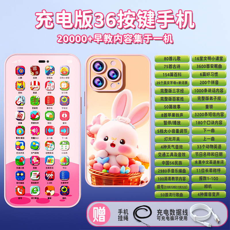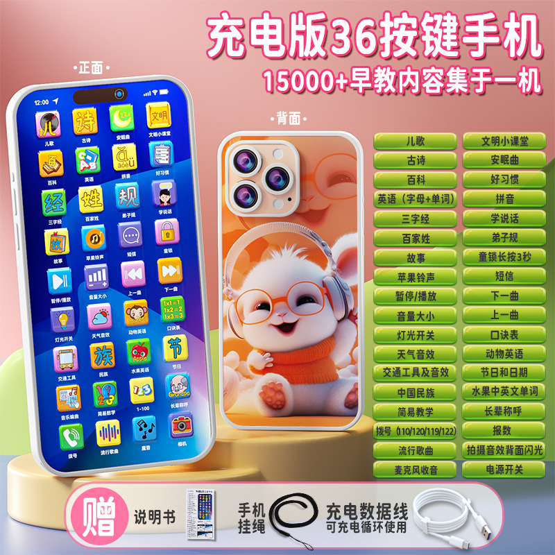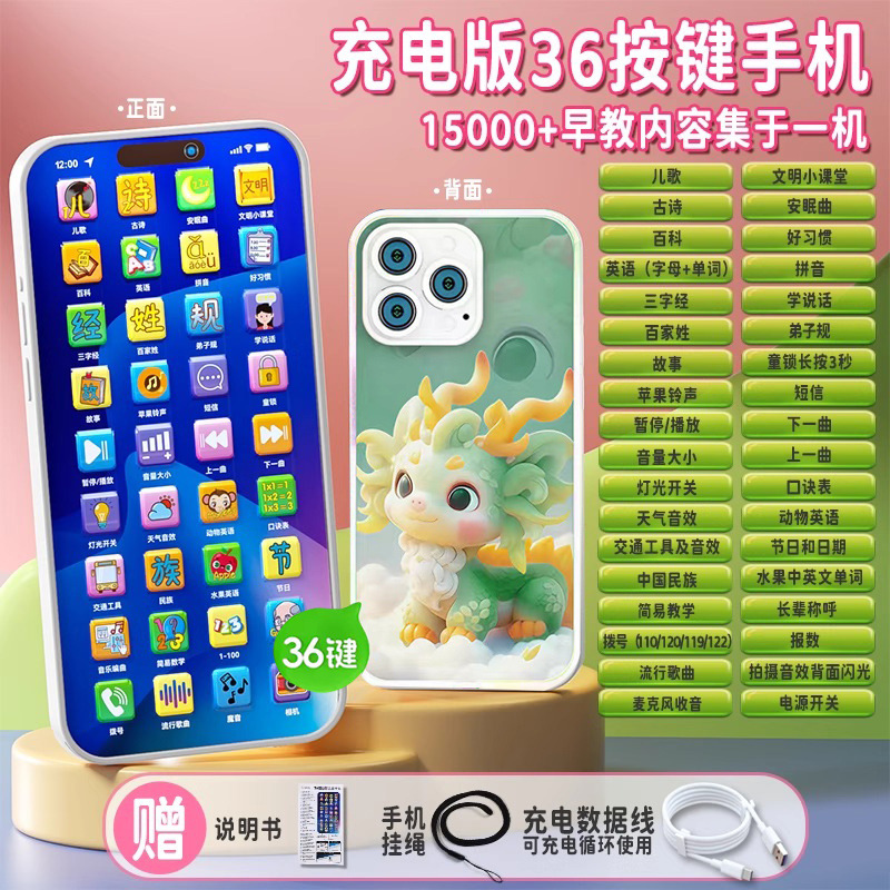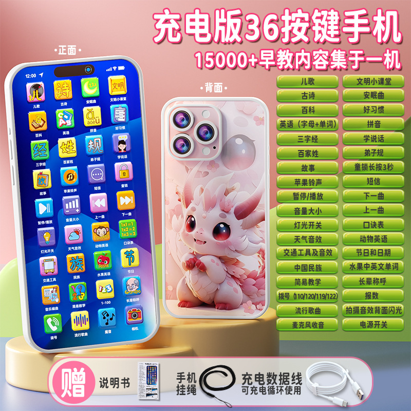 충전식 다기능 조기 교육 기계 시뮬레이션 장난감 아기 교육 어린이 음악 휴대 전화 아기 전화 이야기 기계스토어 가기
