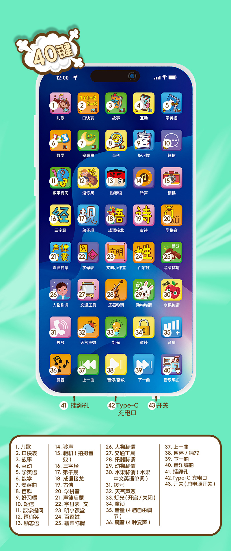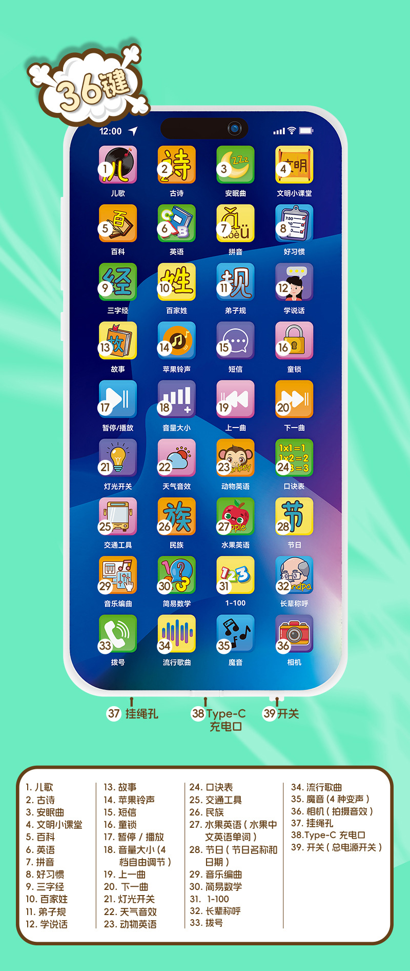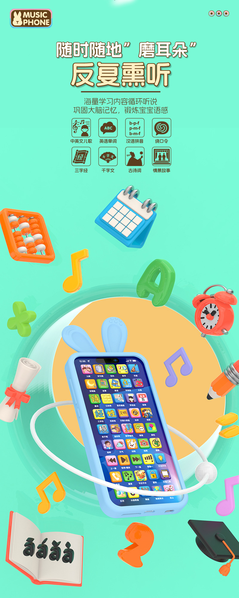 충전식 다기능 조기 교육 기계 시뮬레이션 장난감 아기 교육 어린이 음악 휴대 전화 아기 전화 이야기 기계스토어 가기