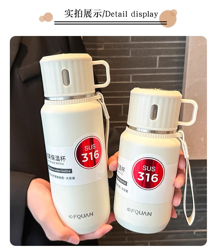 보온병 컵 대용량 남녀 316 스테인레스 스틸 티 컵 뚜껑 새로운 높은 색상 가치 휴대용 학생 컵