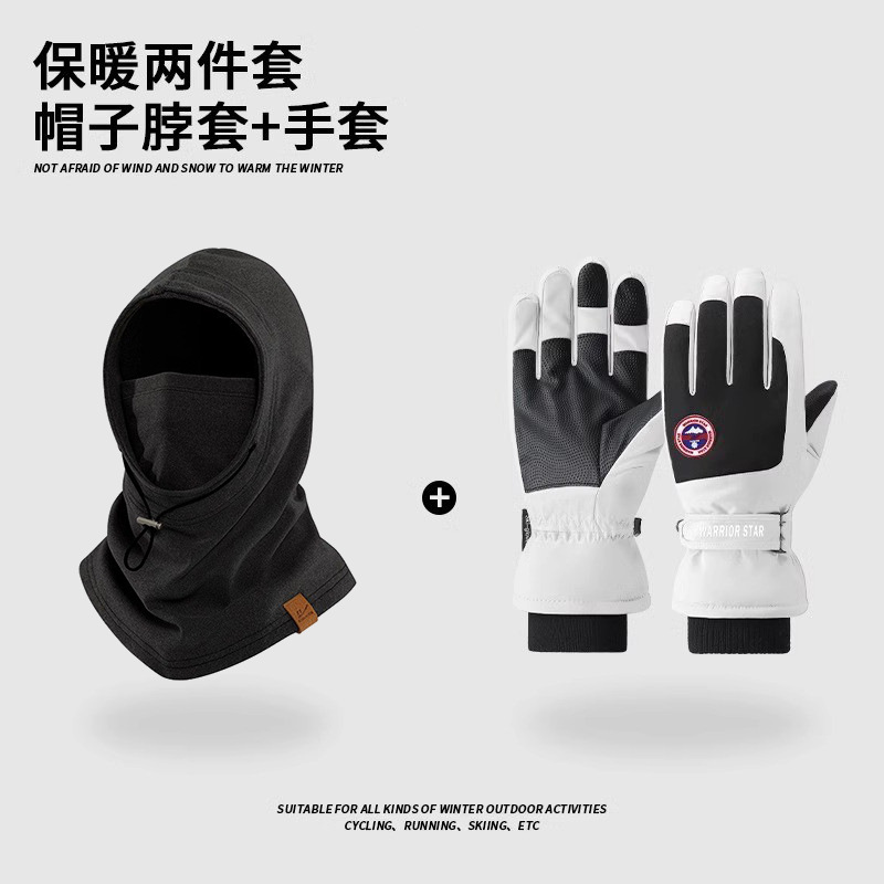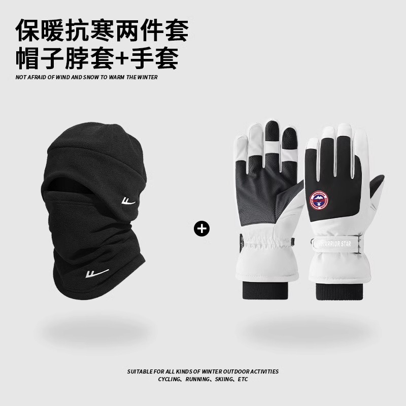 • 흑백 장갑 + 검은색 스카프 + 검은색 모자