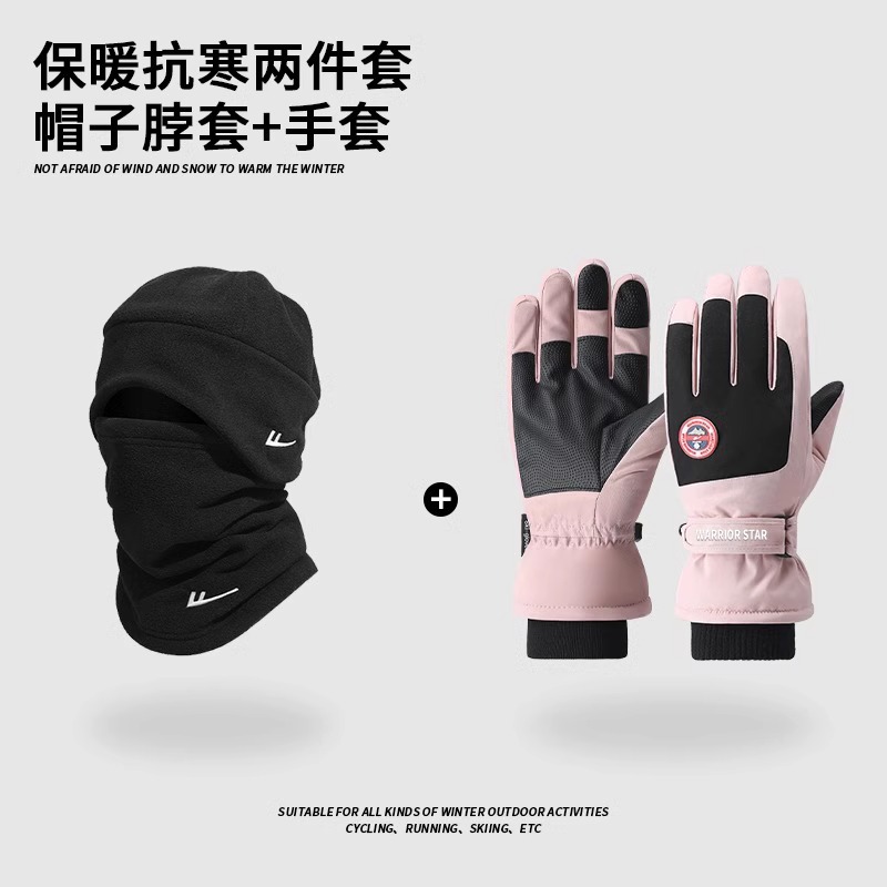 • 분홍색 장갑 + 검은색 스카프 + 검은색 모자