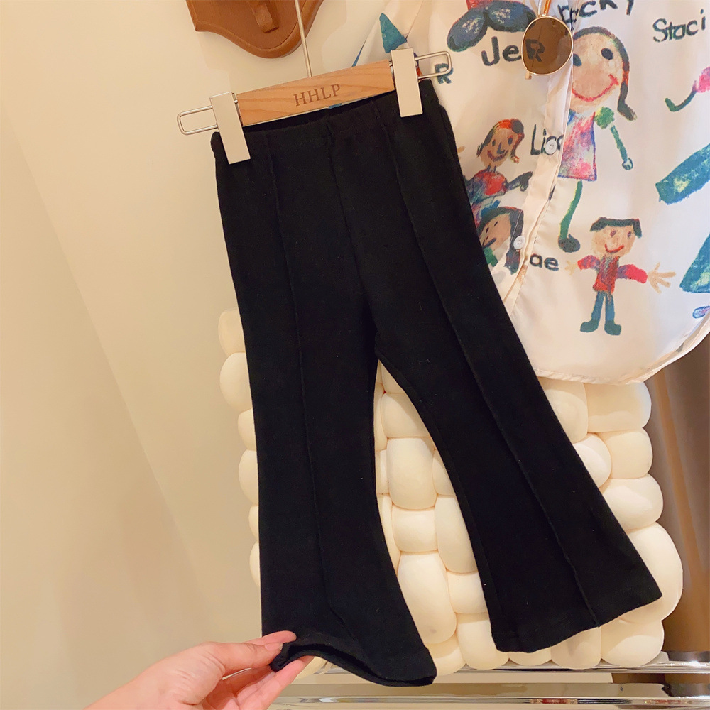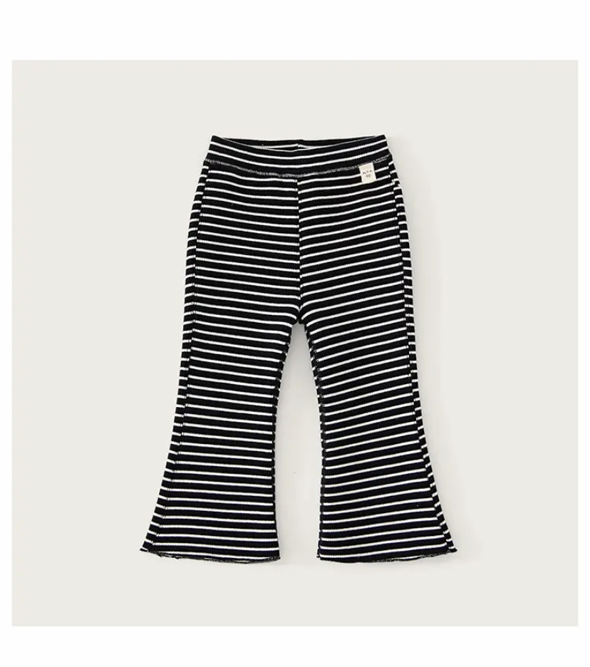 라임 가을과 겨울 새로운 소녀 아기 부드러운 스트레치 플레어 팬츠 스트라이프 바닥 트렌디 한 캐주얼 웨스턴 스타일