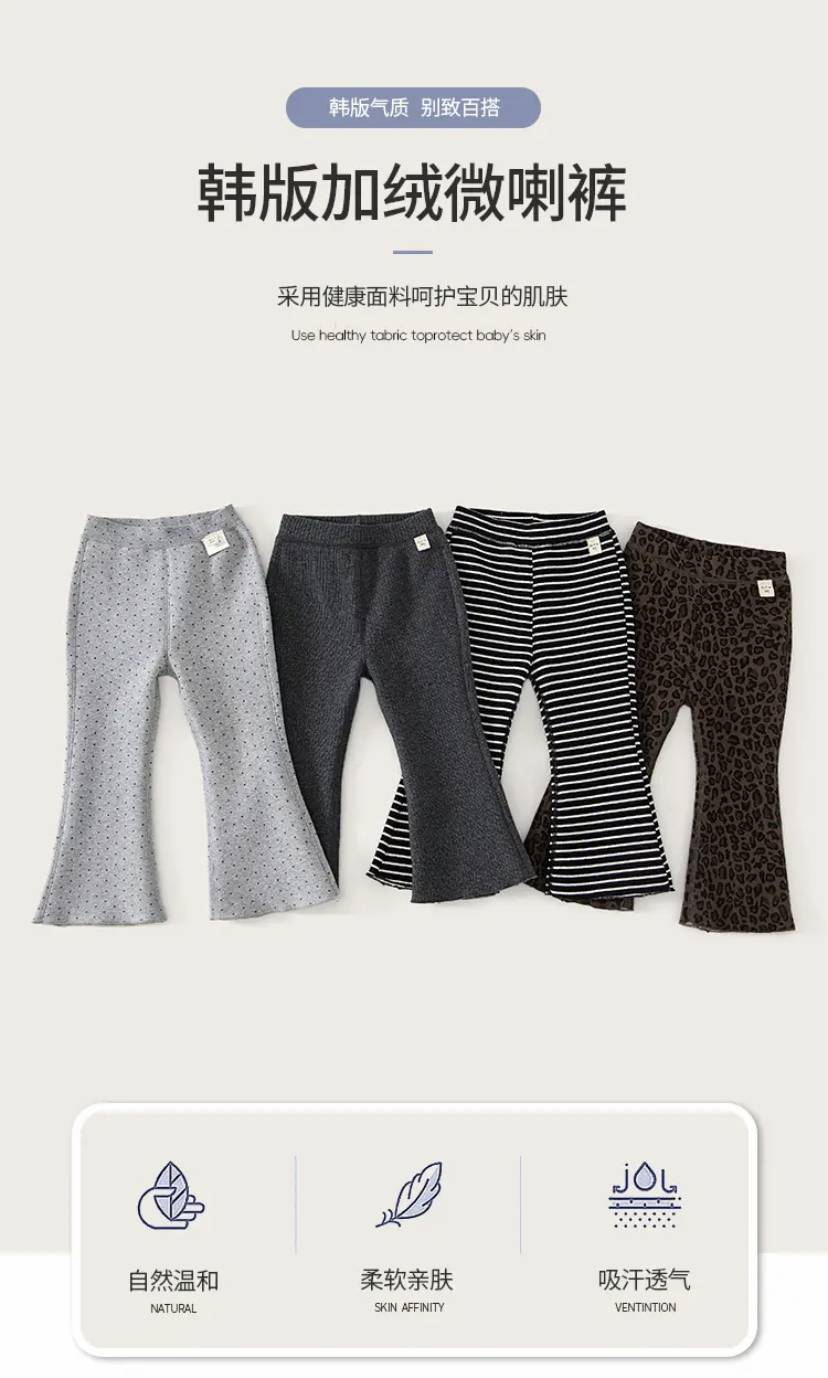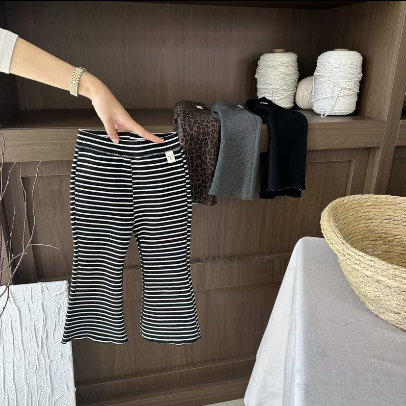 라임 가을과 겨울 새로운 소녀 아기 부드러운 스트레치 플레어 팬츠 스트라이프 바닥 트렌디 한 캐주얼 웨스턴 스타일스토어 가기
