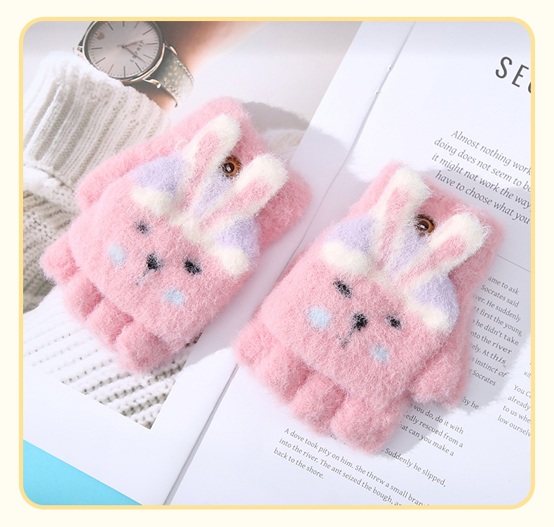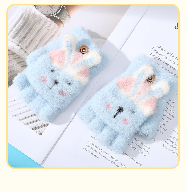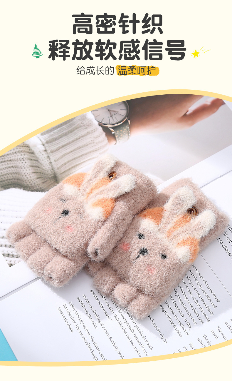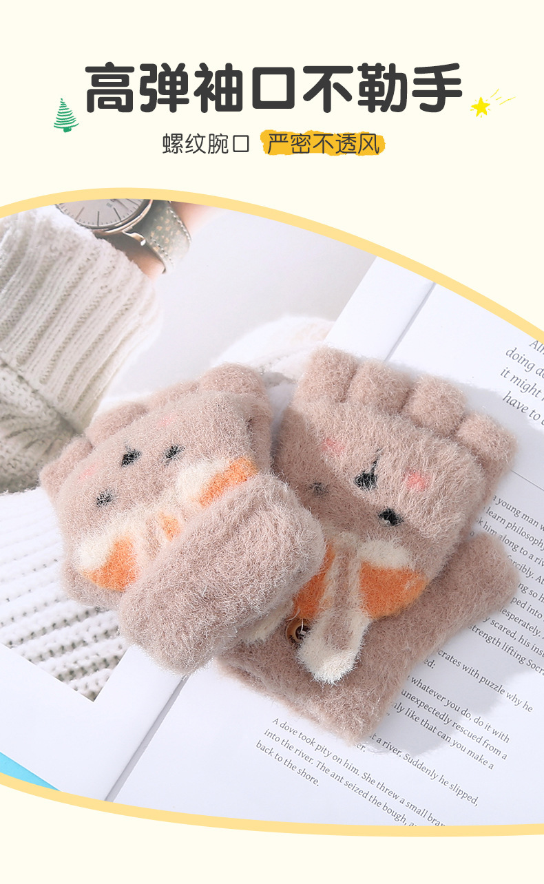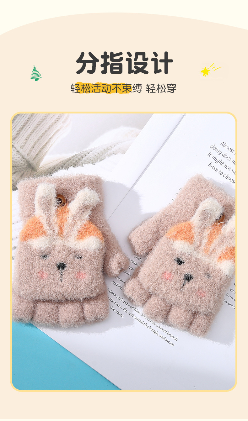 새로운 만화 귀여운 작은 소녀 겨울 따뜻한 장갑 야외 사이클링 감기 방지 아기 쓰기 반 손가락 플립 커버스토어 가기
