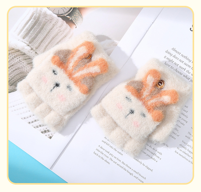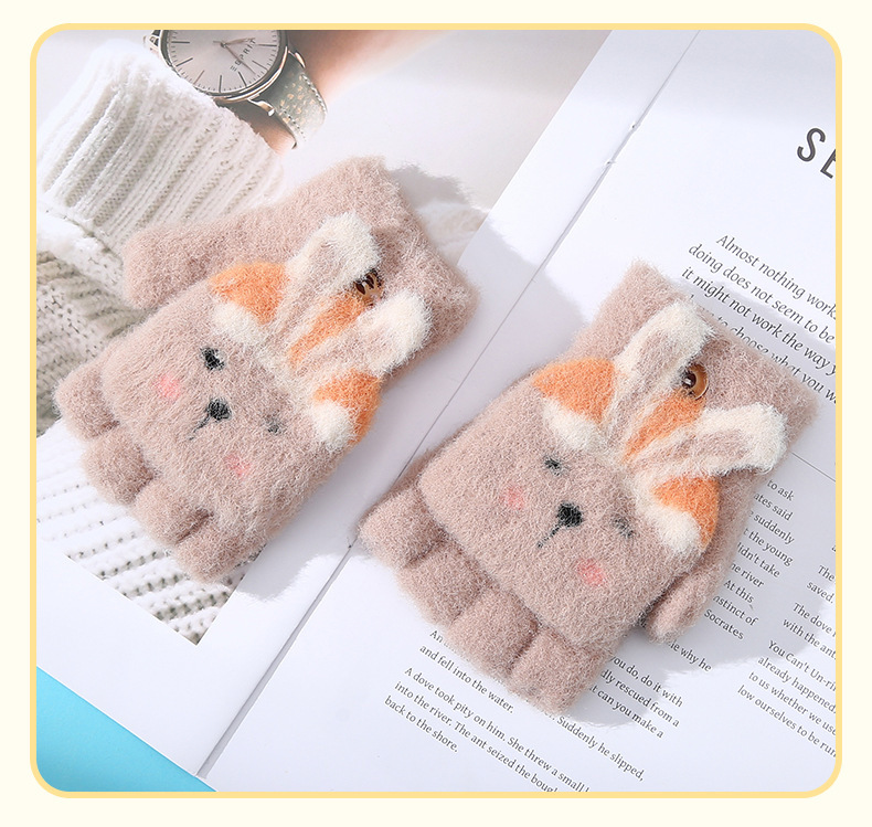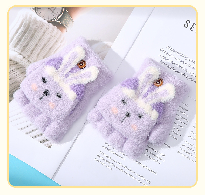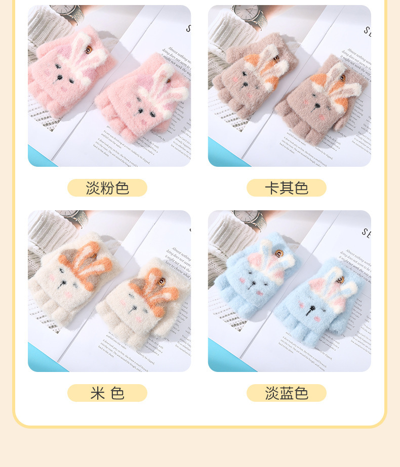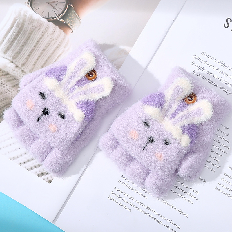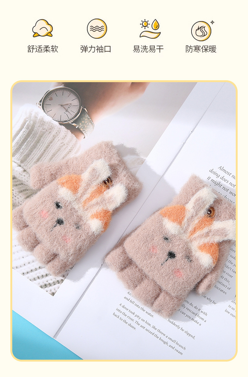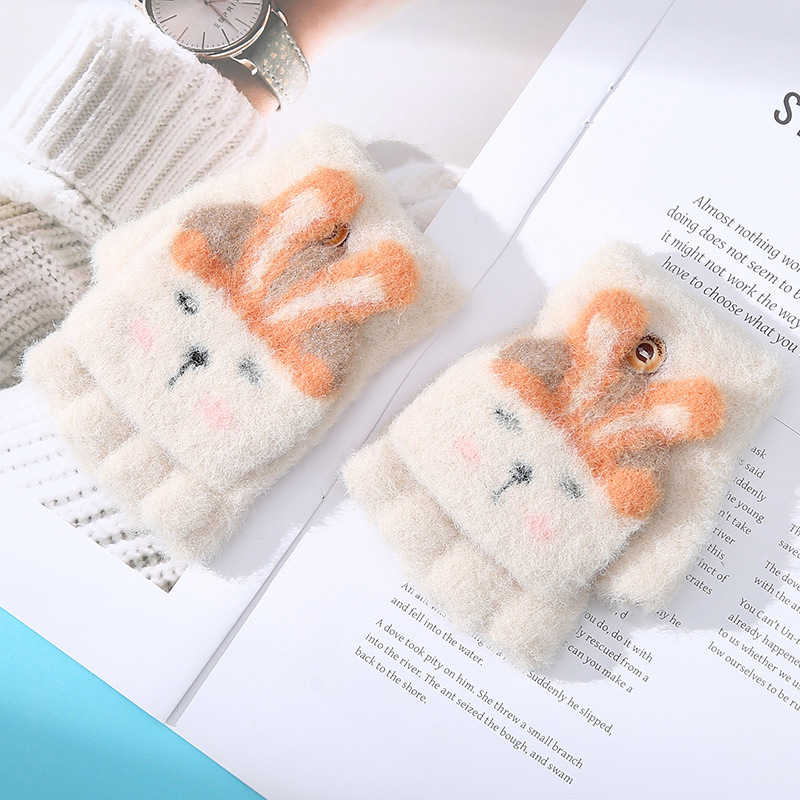 새로운 만화 귀여운 작은 소녀 겨울 따뜻한 장갑 야외 사이클링 감기 방지 아기 쓰기 반 손가락 플립 커버스토어 가기