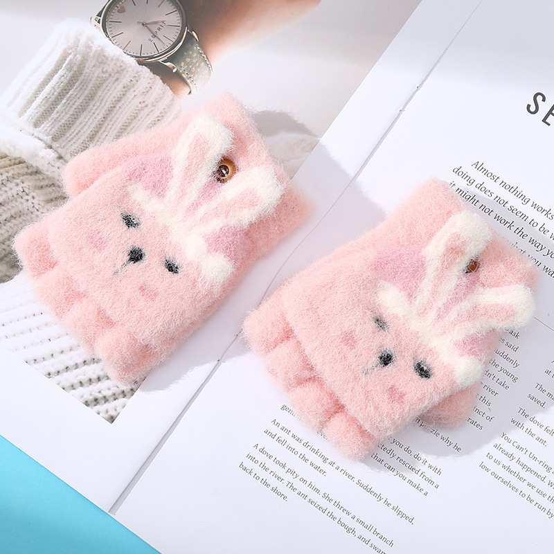 새로운 만화 귀여운 작은 소녀 겨울 따뜻한 장갑 야외 사이클링 감기 방지 아기 쓰기 반 손가락 플립 커버