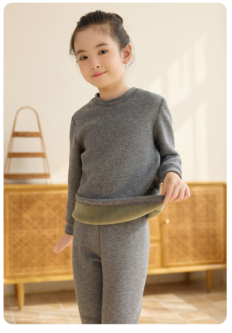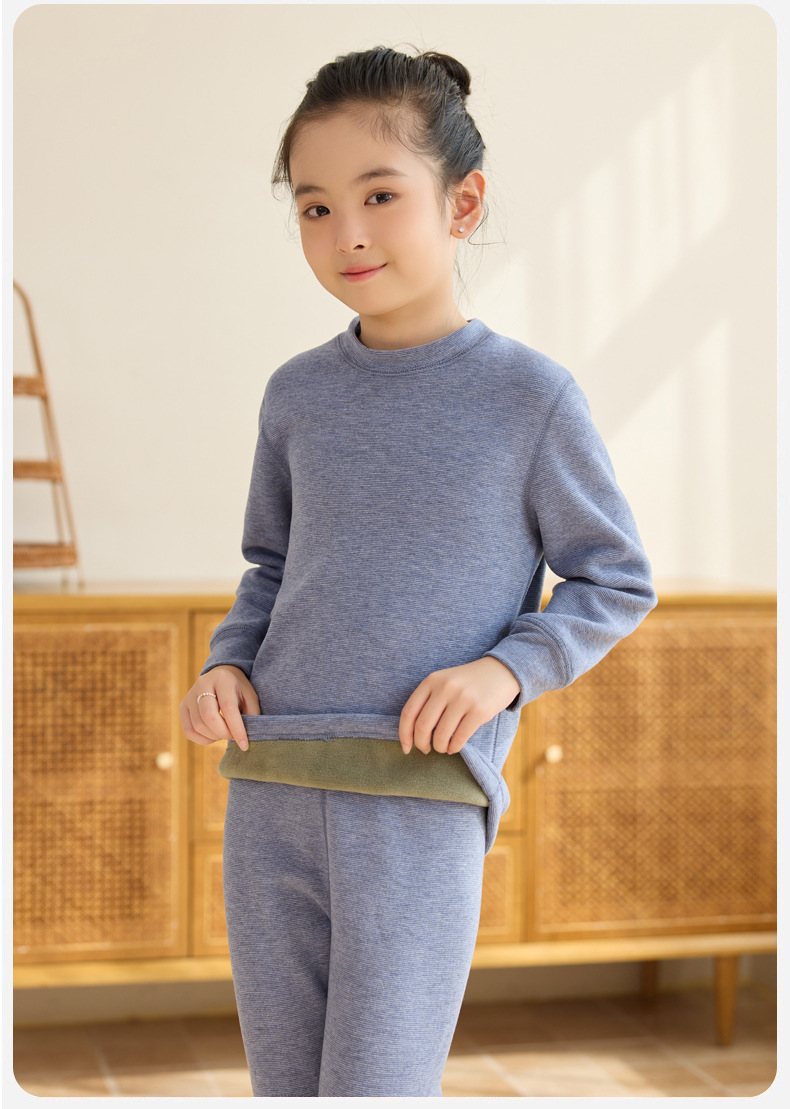 2024 년 새 여자 열 속옷 세트 가을 겨울 기모 두꺼운 아이들의 가을 옷과 바지 학교 유니폼 유물