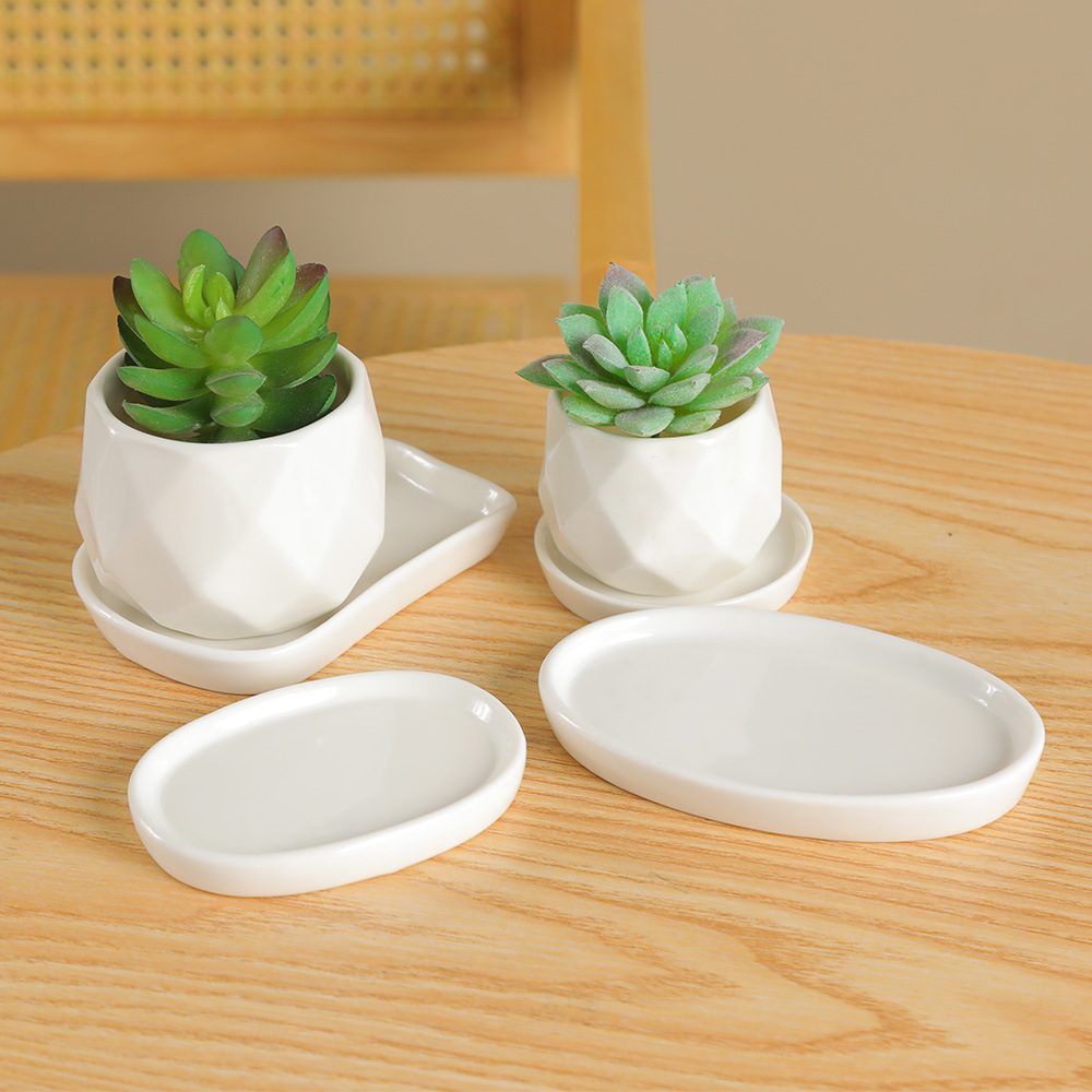 세라믹 트레이 화분 물 트레이 흰색 간단한 둥근 다육 화분 바닥 트레이 섀시 작은 트레이 보석 트레이