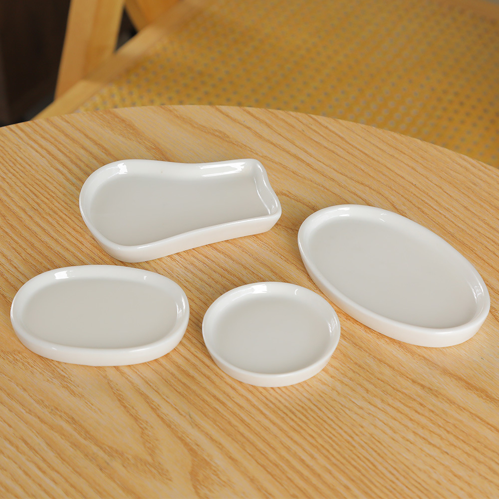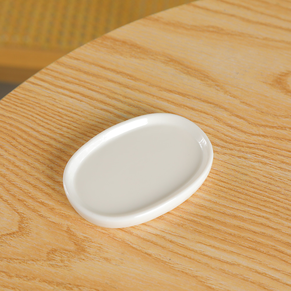 白瓷小号椭圆托盘(外9.5*6.9cm,内8*5.5cm,高1.3cm)