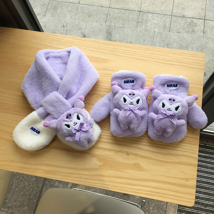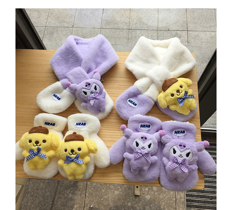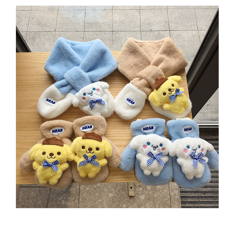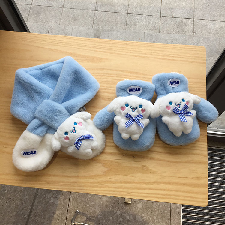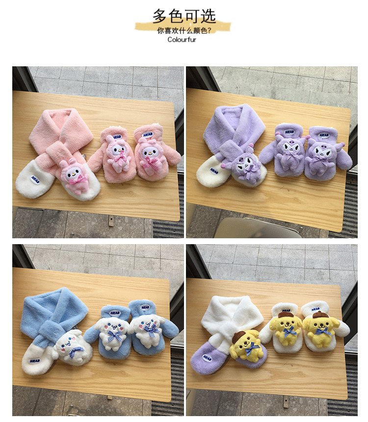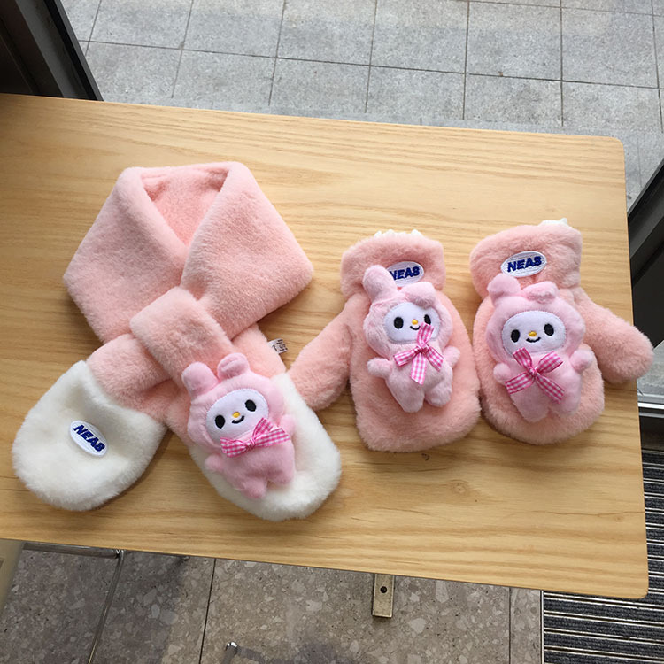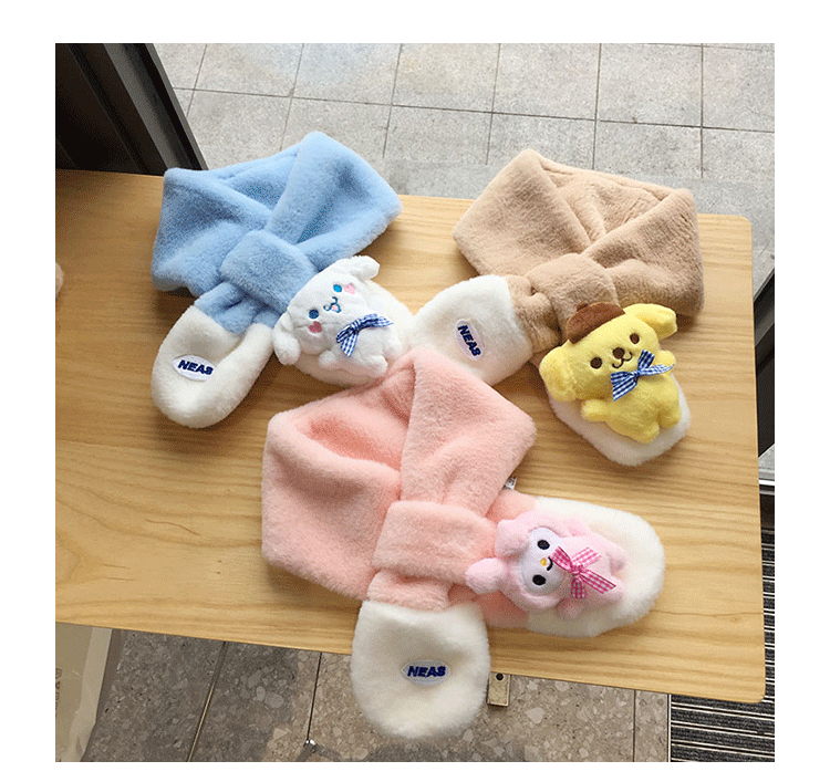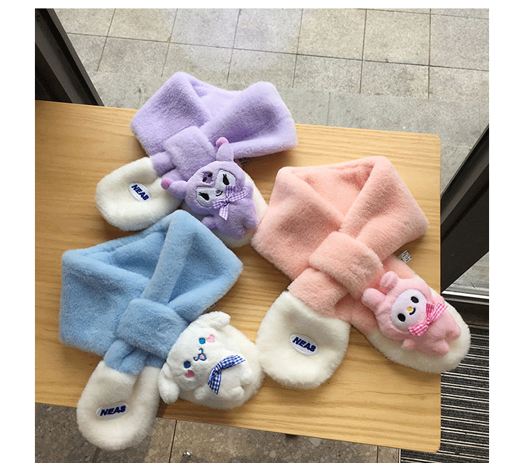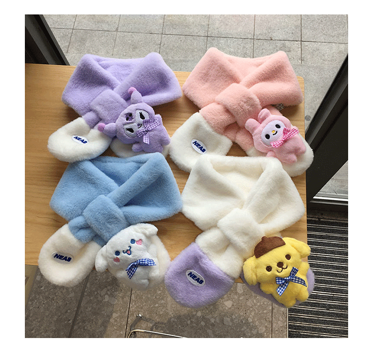 가을 겨울 두꺼운 스티칭 따뜻한 어린이 스카프 장갑 귀여운 만화 자수 아기 스카프 봉제 스카프 한국어 버전