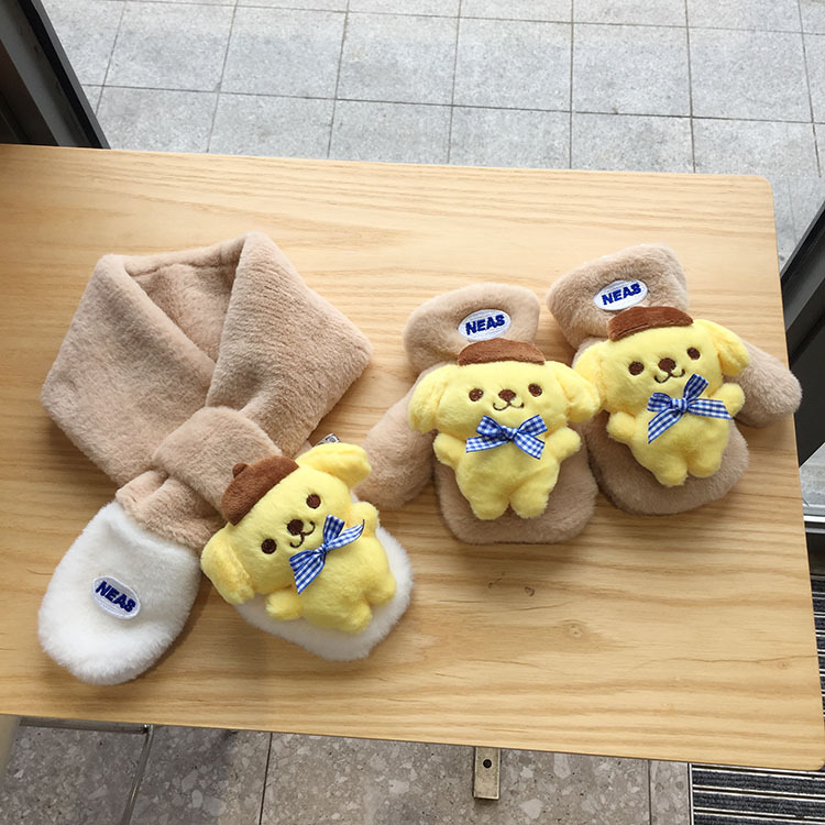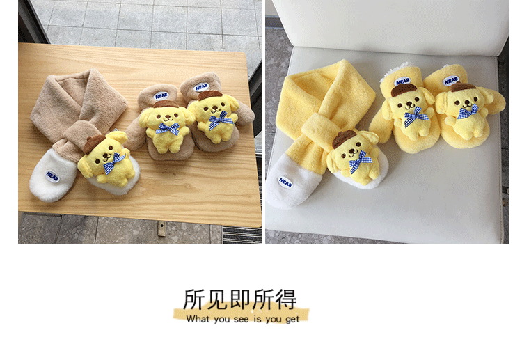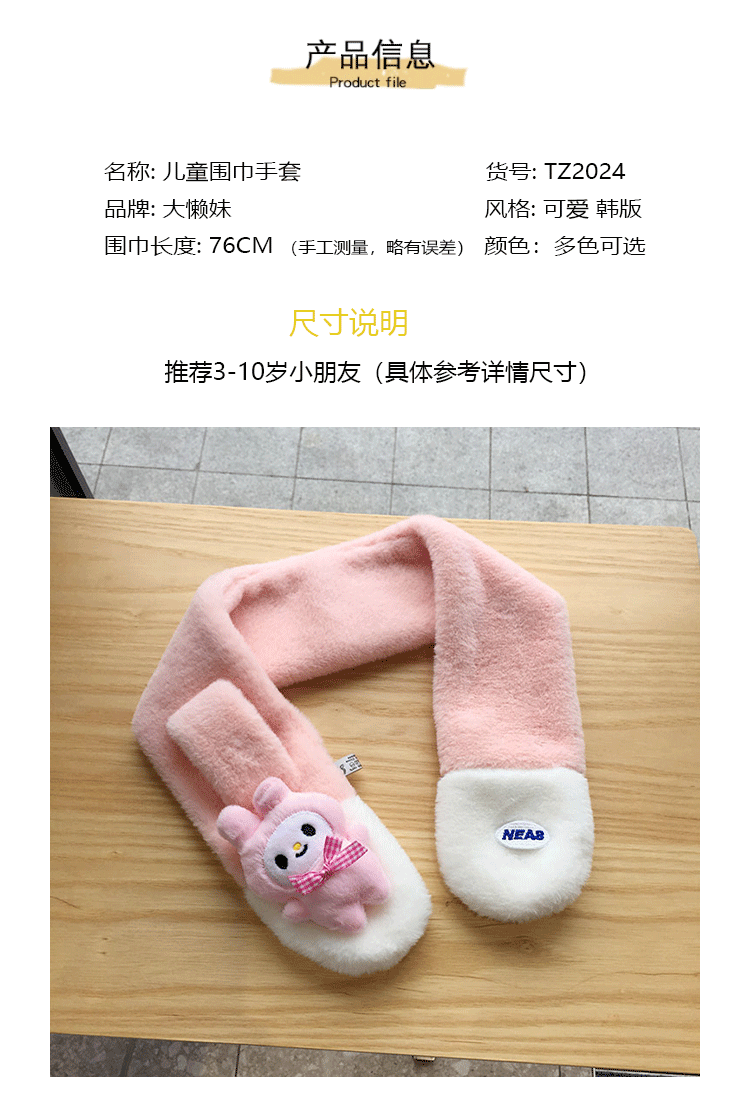 가을 겨울 두꺼운 스티칭 따뜻한 어린이 스카프 장갑 귀여운 만화 자수 아기 스카프 봉제 스카프 한국어 버전스토어 가기