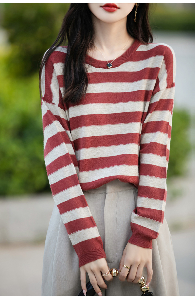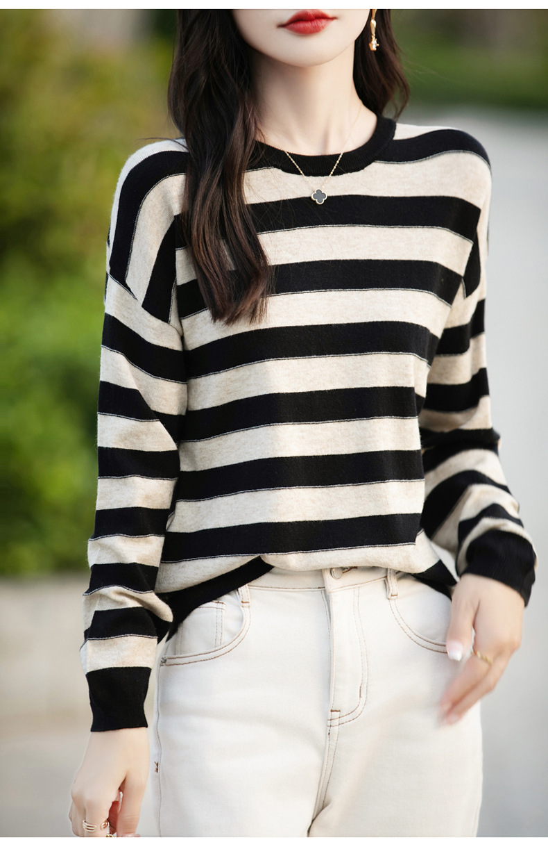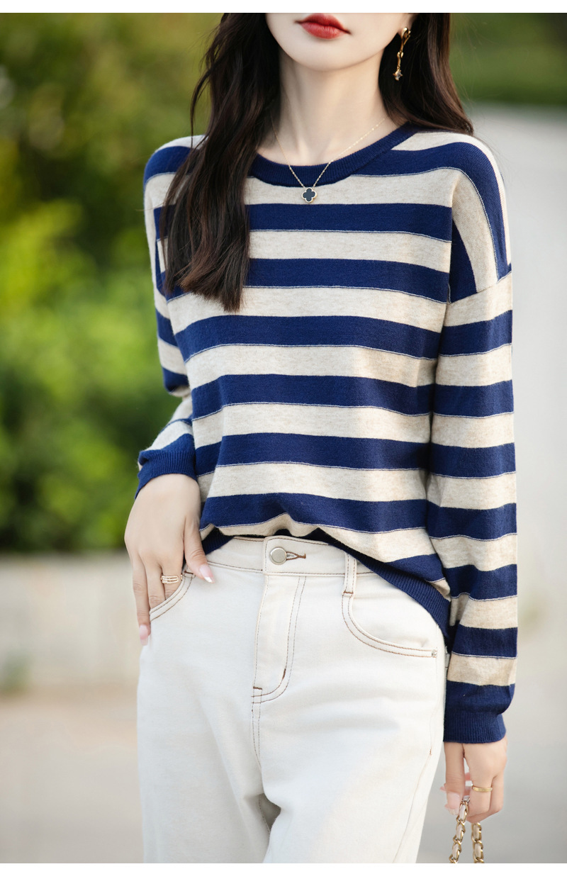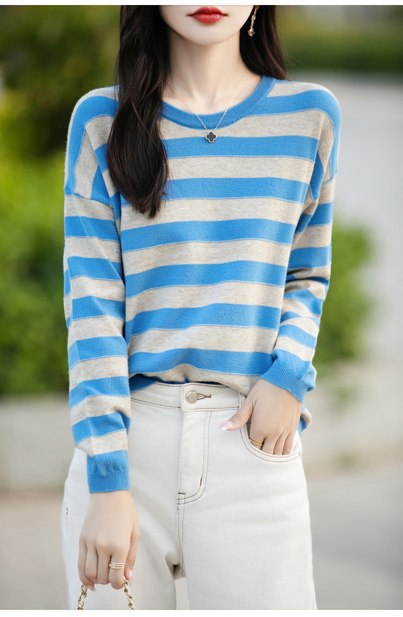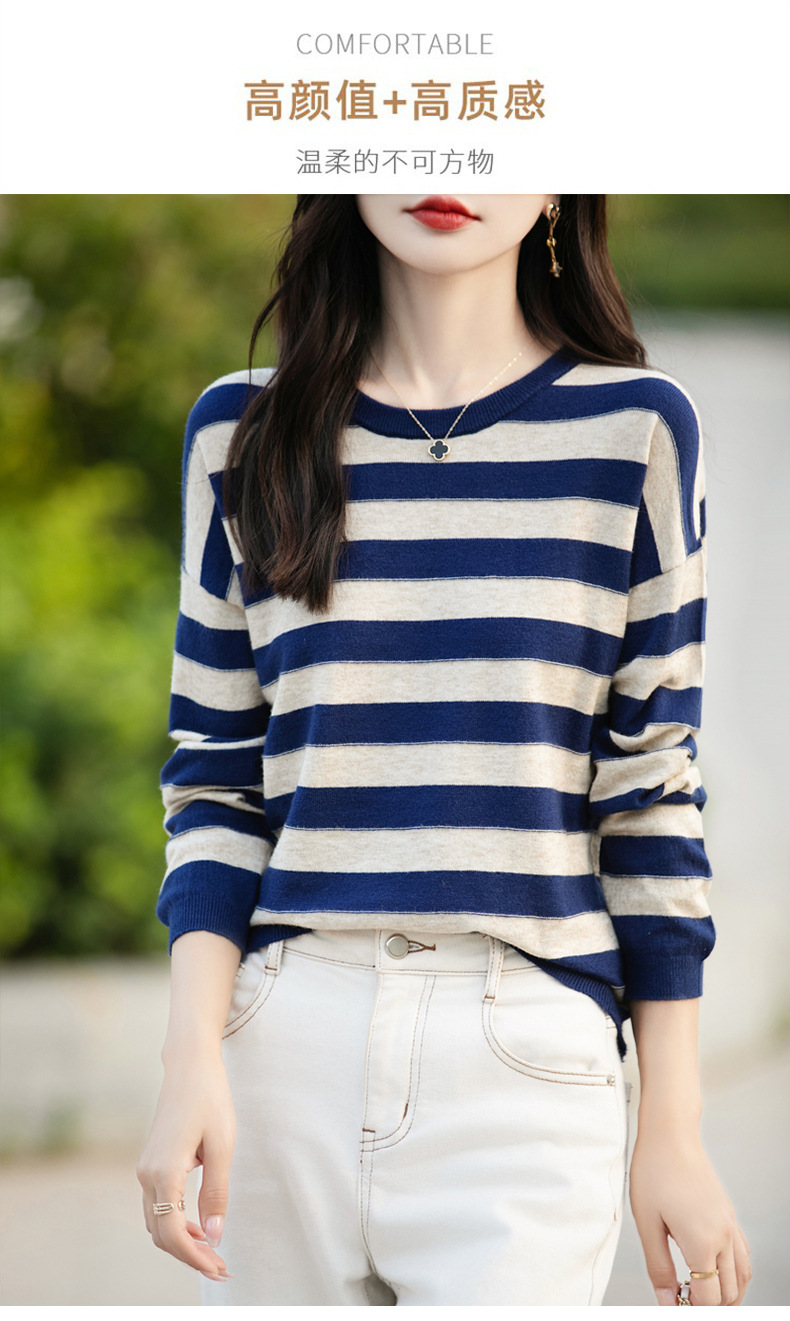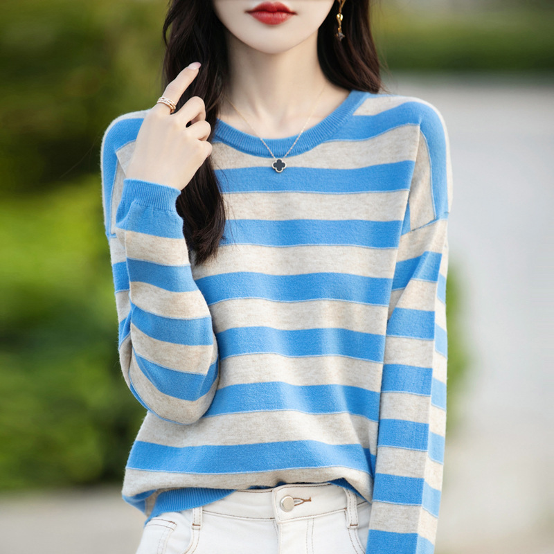 컬러 블록 스트라이프 긴팔 니트 여성 가을 겨울 신상 슬림핏 스웨터 라운드넥 이너웨어 탑 해외 여성복 도매스토어 가기