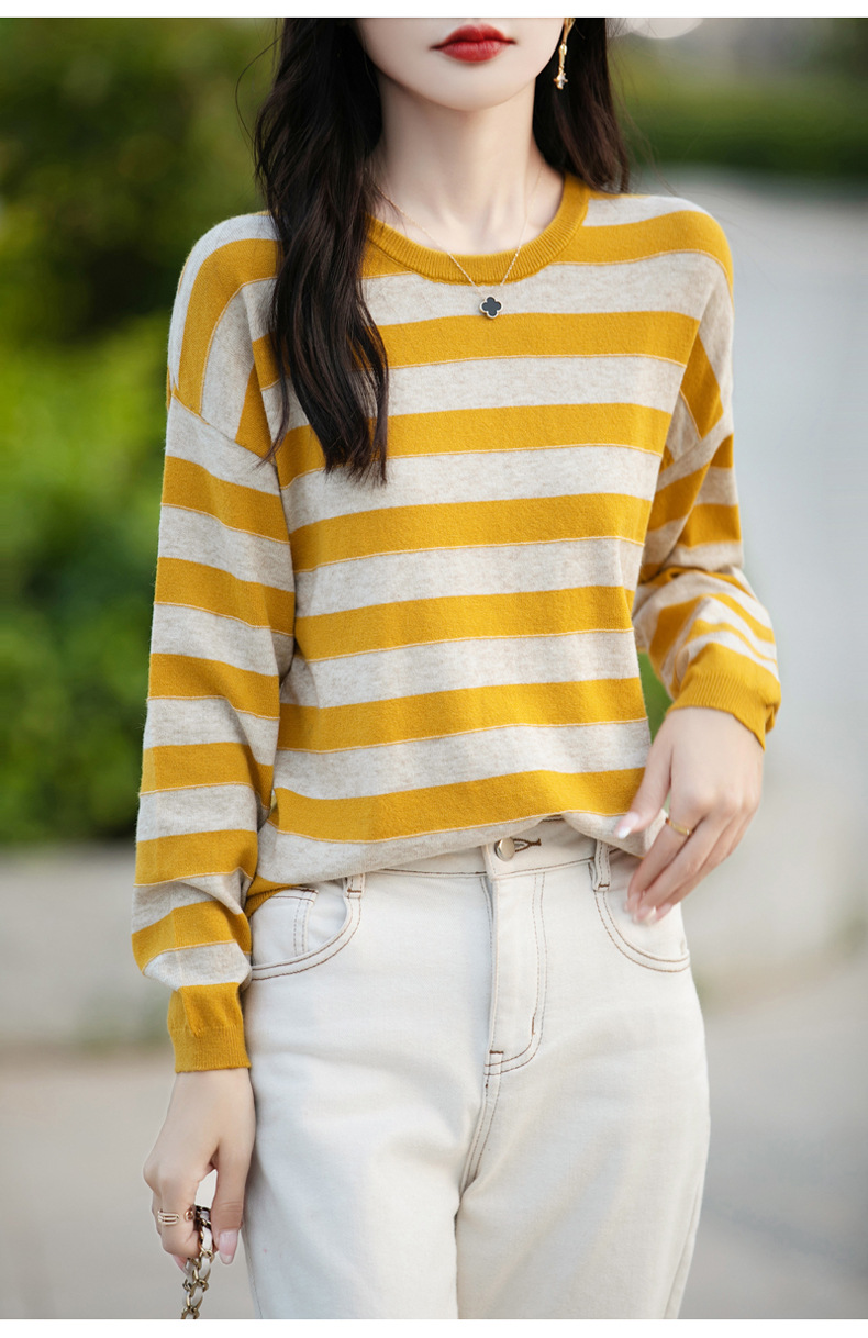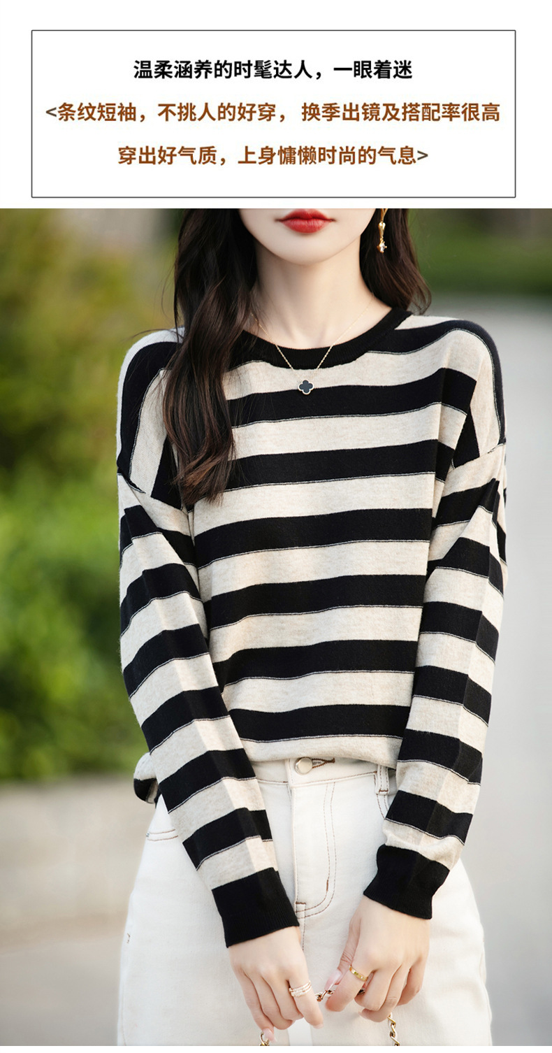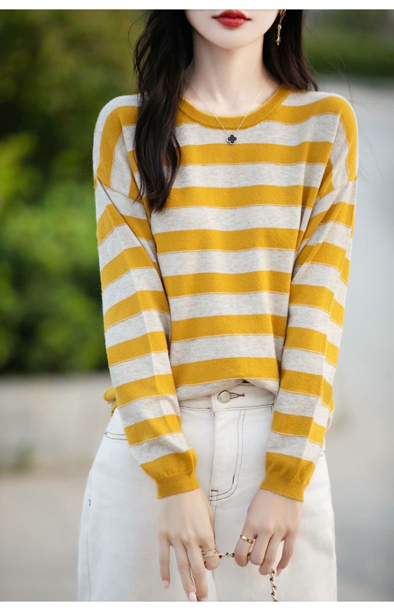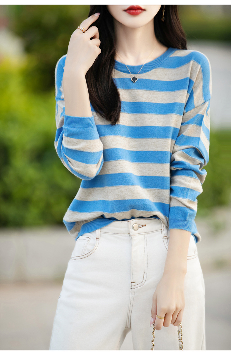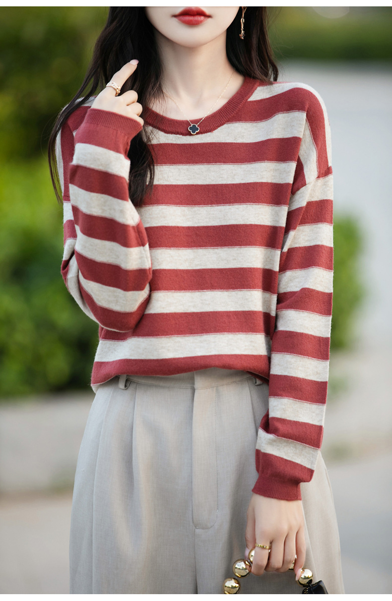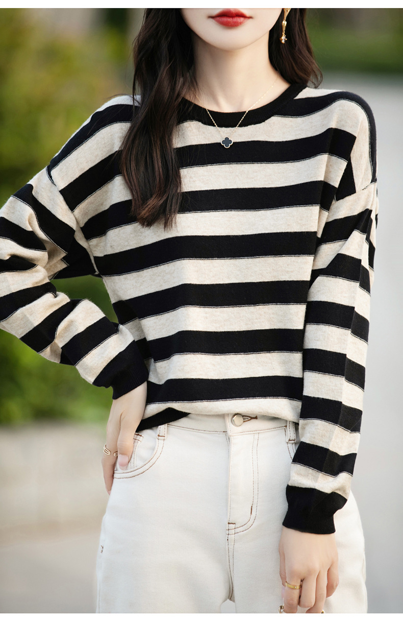 컬러 블록 스트라이프 긴팔 니트 여성 가을 겨울 신상 슬림핏 스웨터 라운드넥 이너웨어 탑 해외 여성복 도매스토어 가기