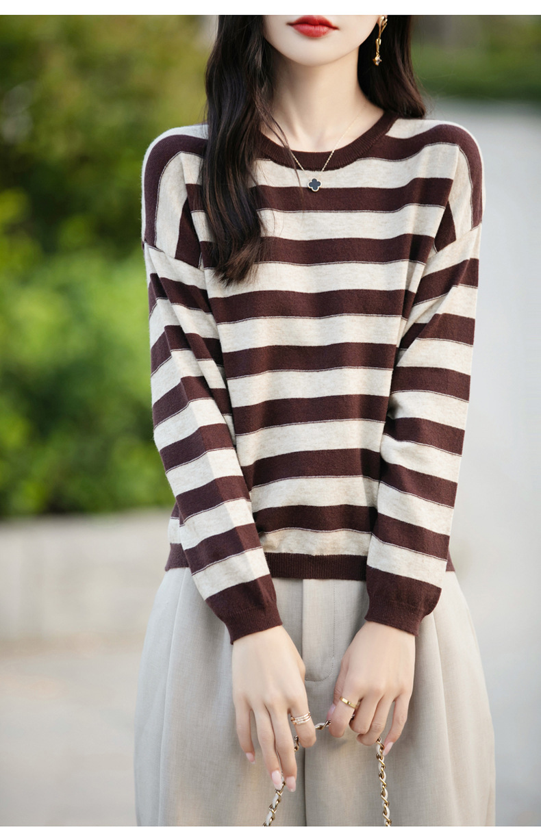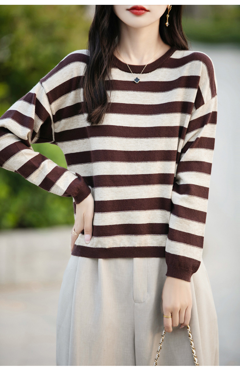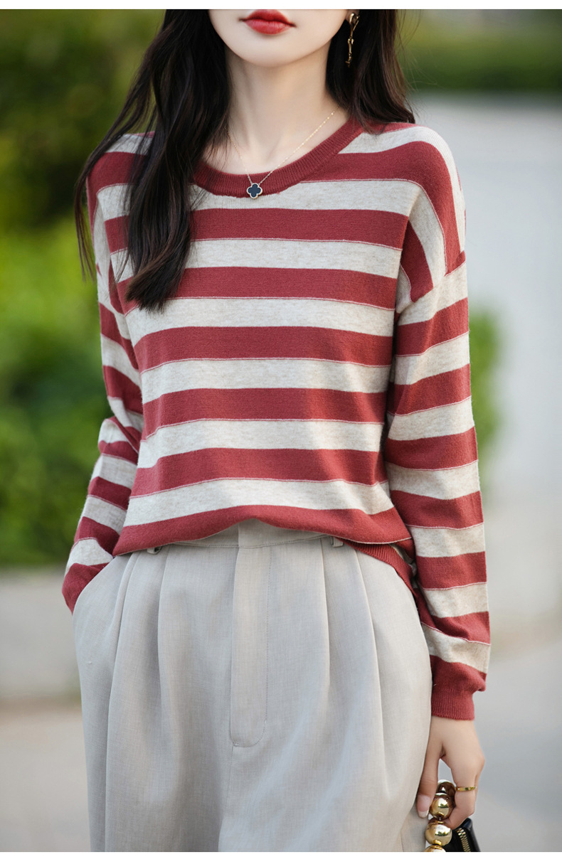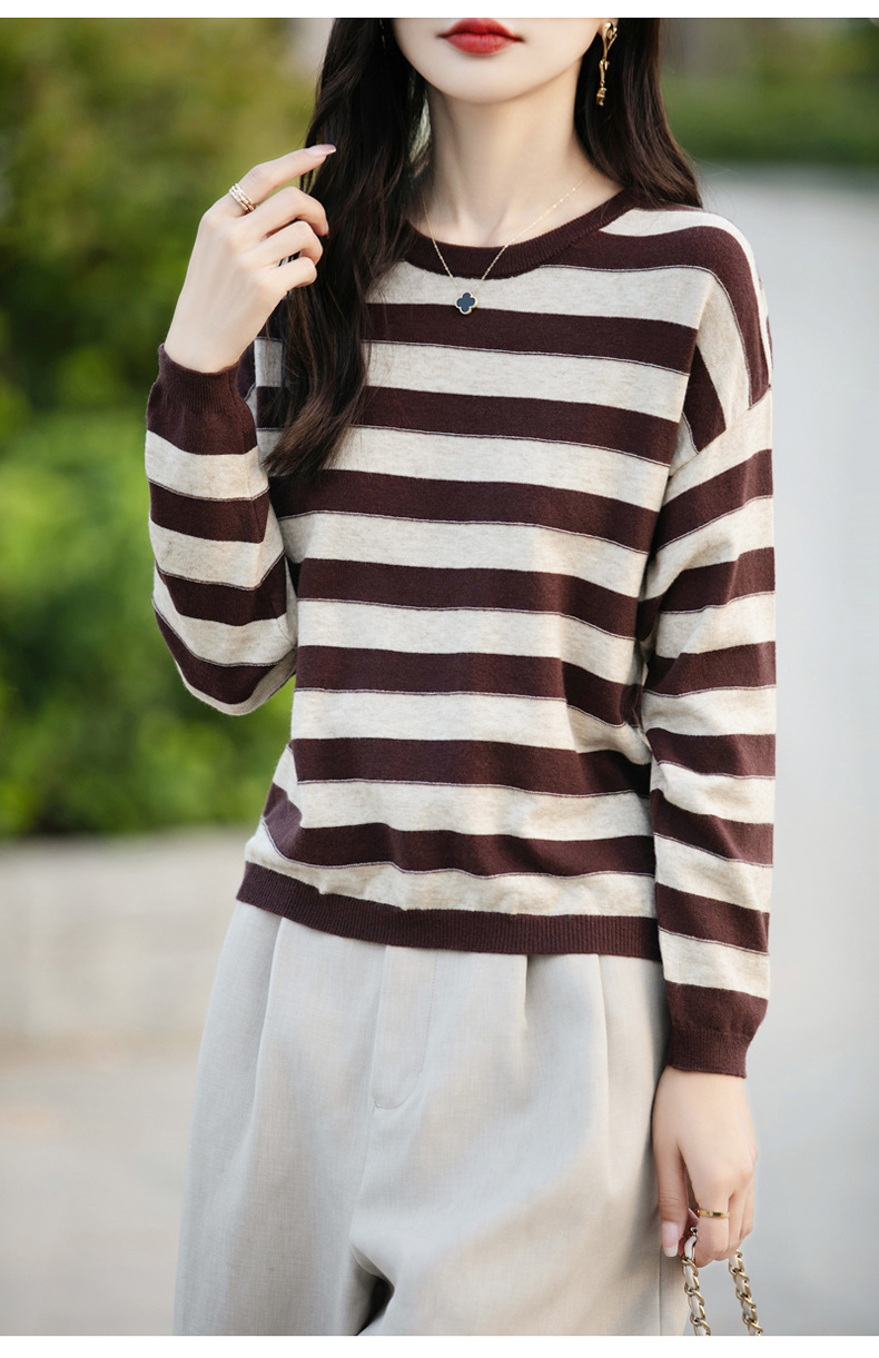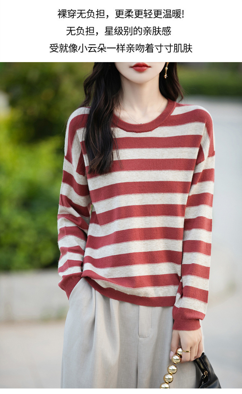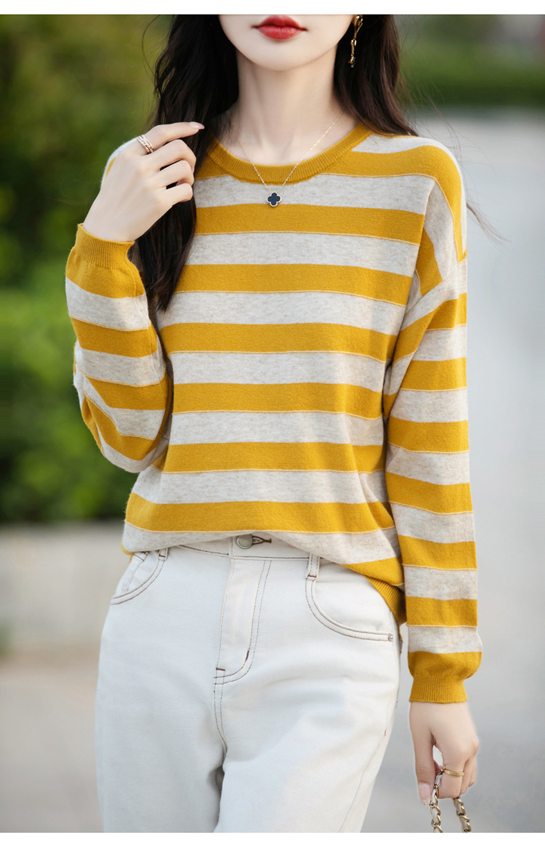 컬러 블록 스트라이프 긴팔 니트 여성 가을 겨울 신상 슬림핏 스웨터 라운드넥 이너웨어 탑 해외 여성복 도매스토어 가기