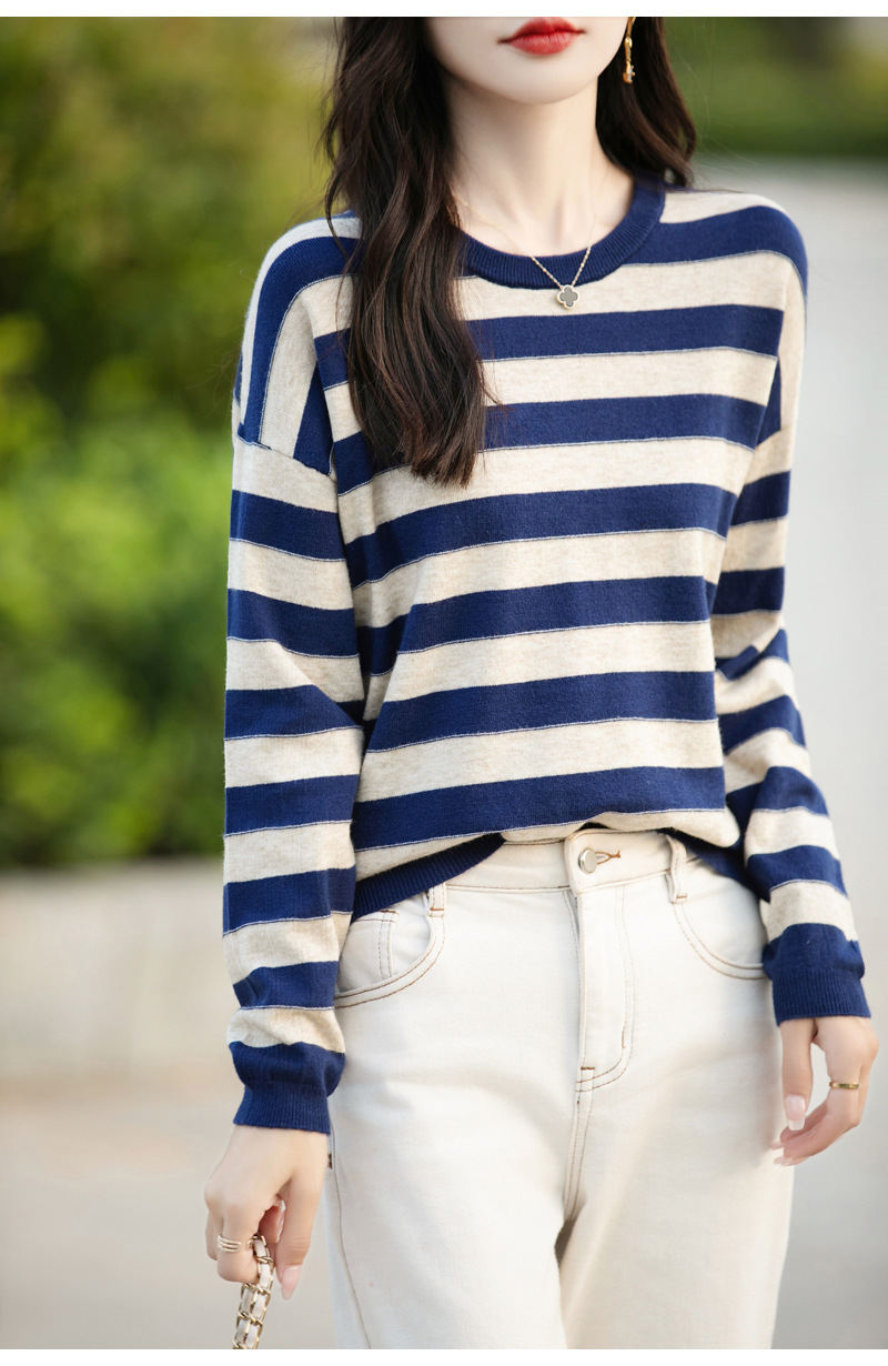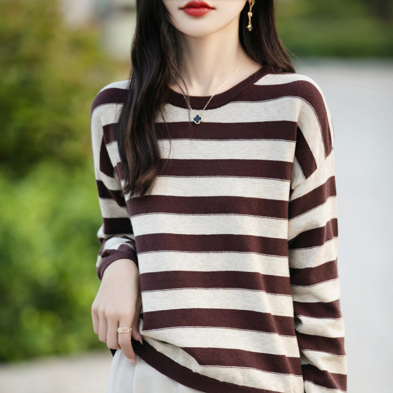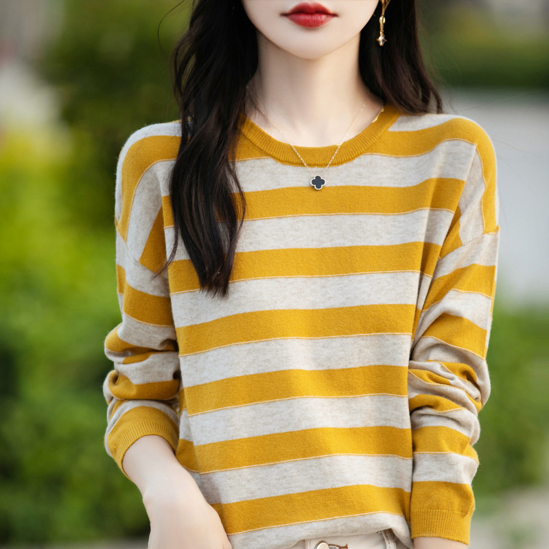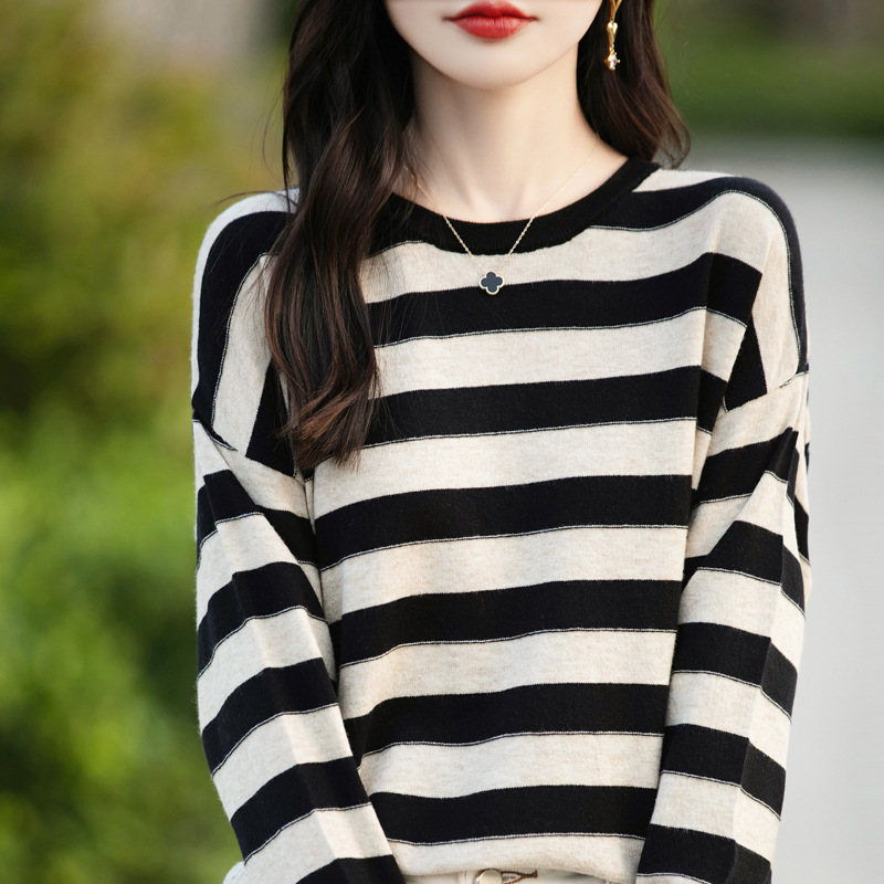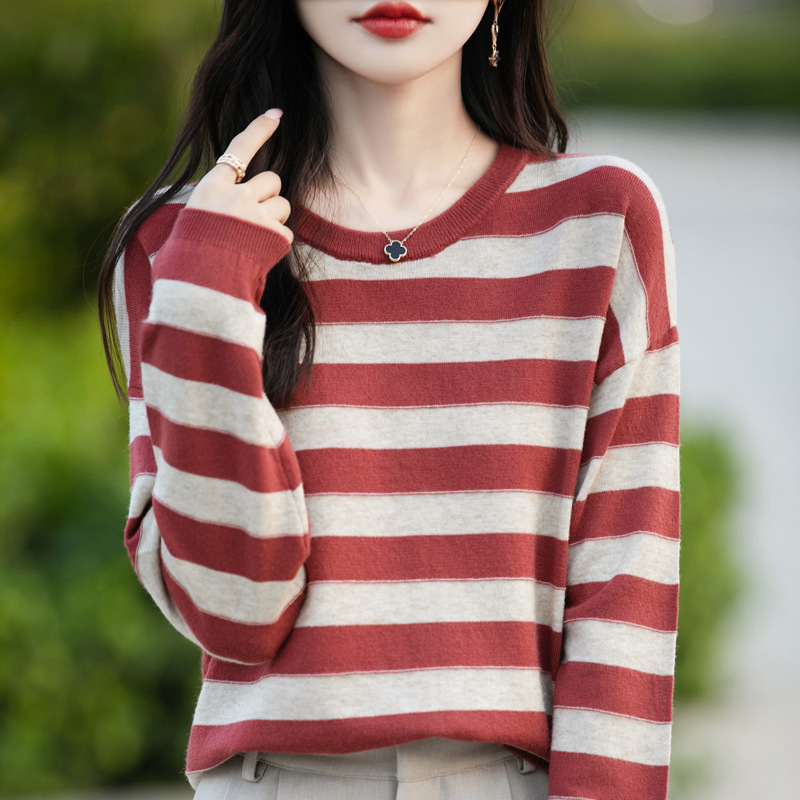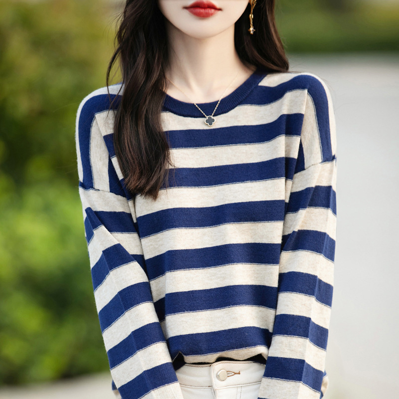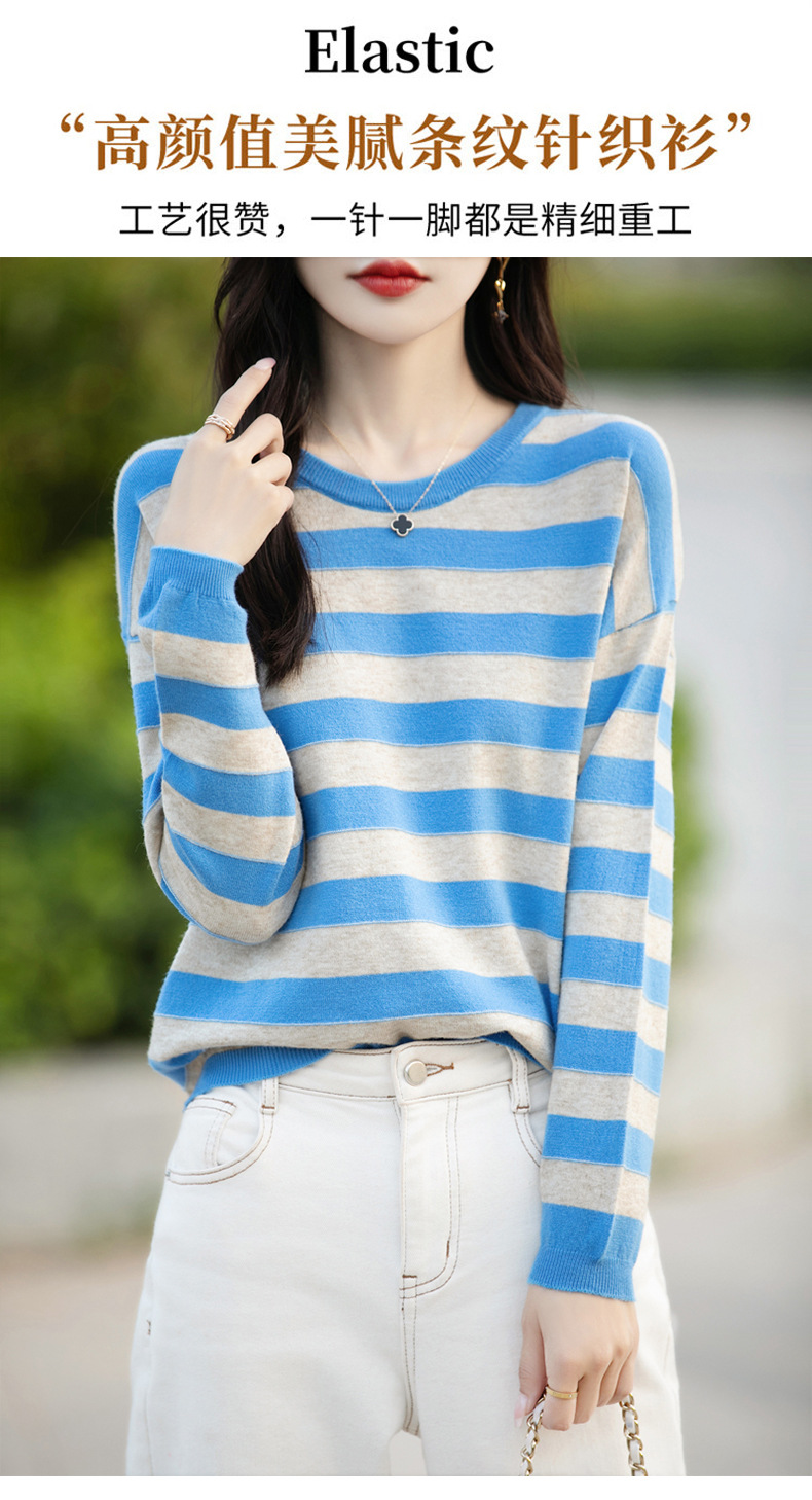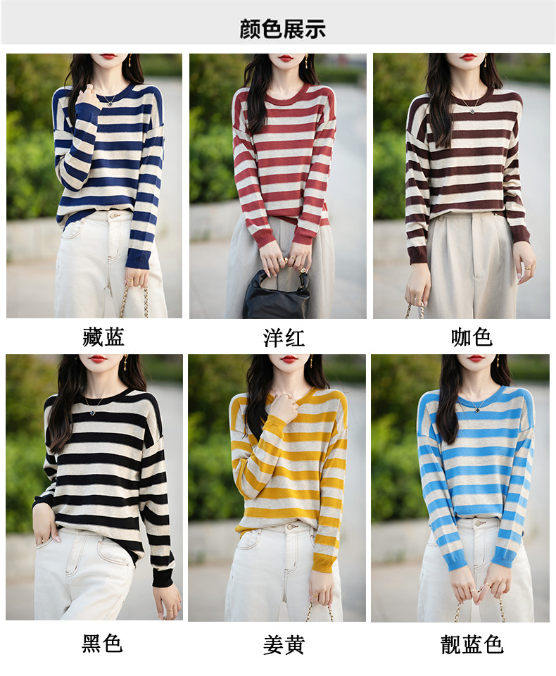 컬러 블록 스트라이프 긴팔 니트 여성 가을 겨울 신상 슬림핏 스웨터 라운드넥 이너웨어 탑 해외 여성복 도매